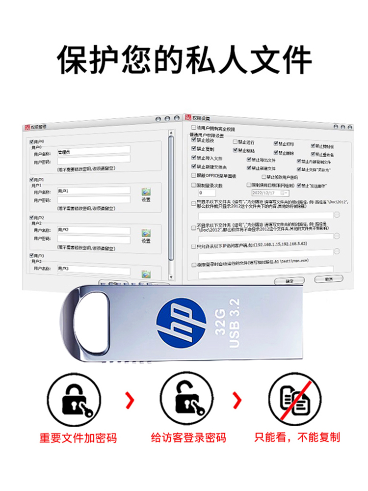 惠普正品HP加密u盘电脑32g企业投标防复制128优盘usb3.2官方密码