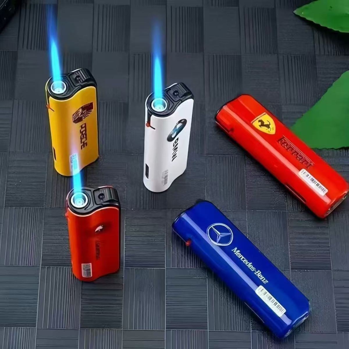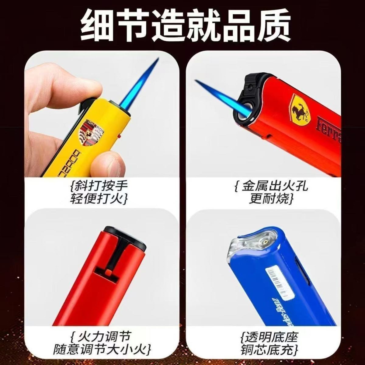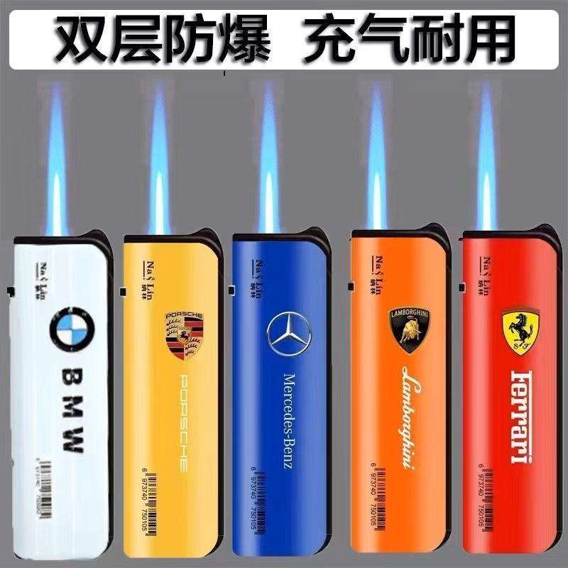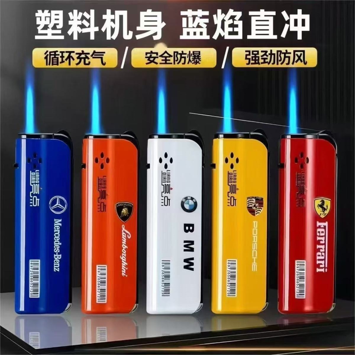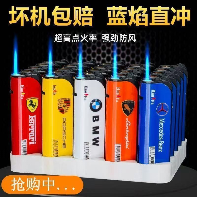 50支蓝焰直冲防风打火机炫酷创意车标耐家用商超防爆可充气打火机