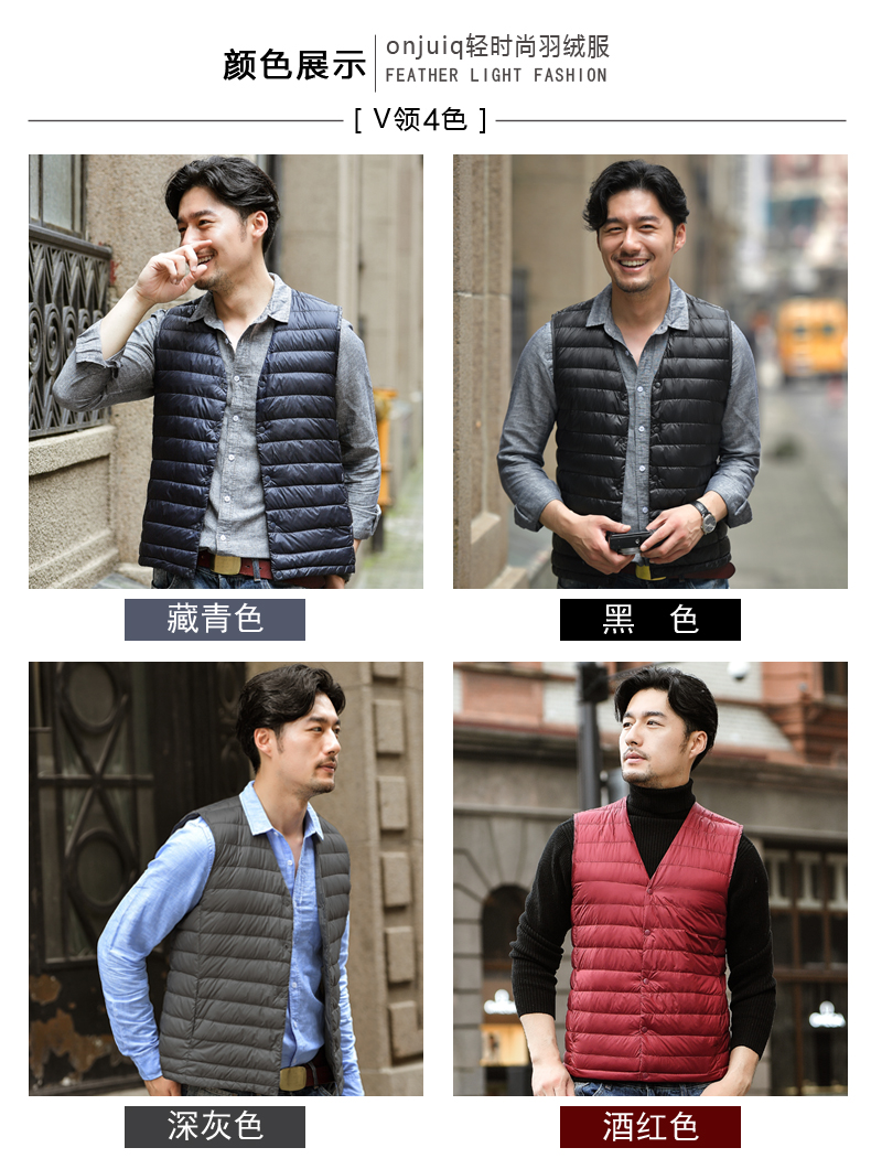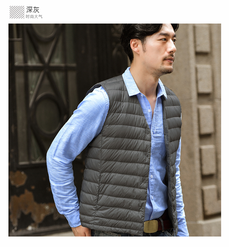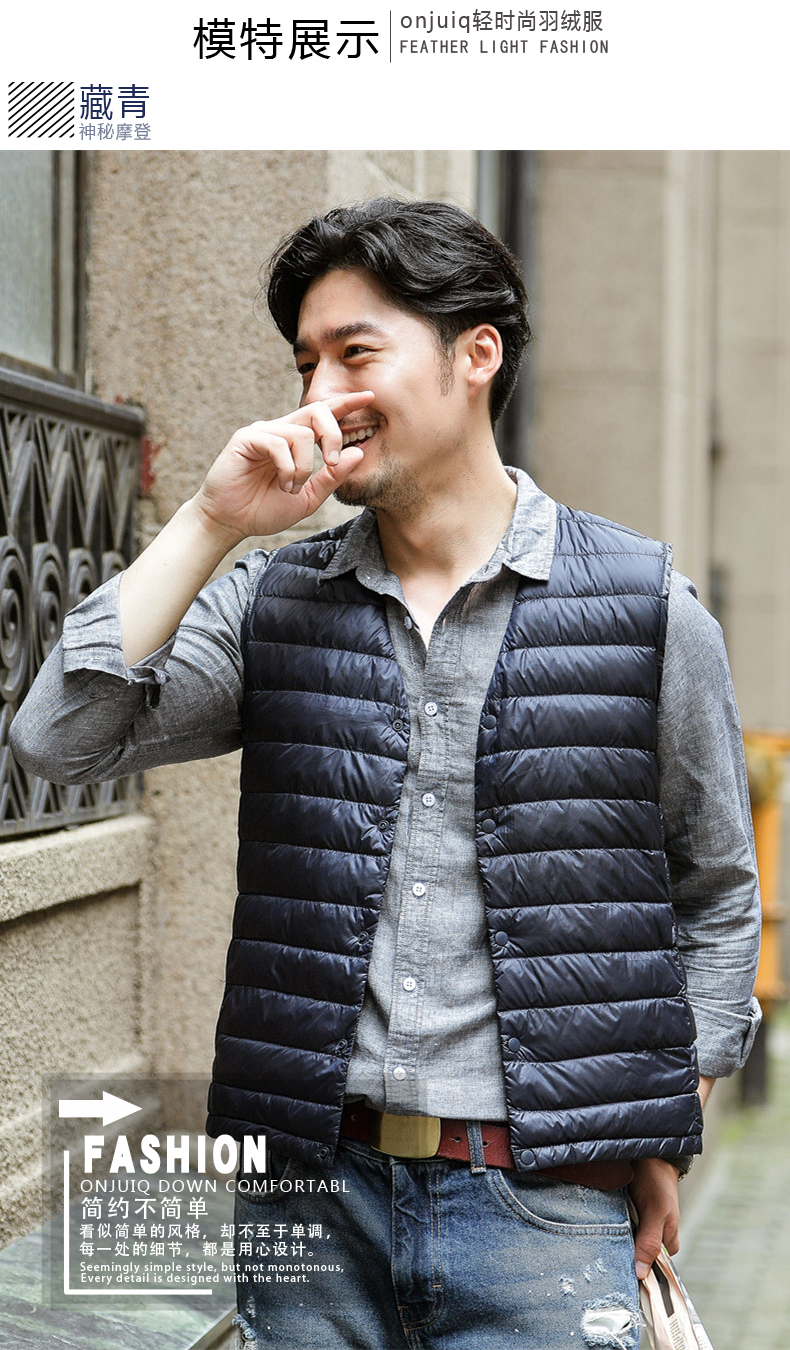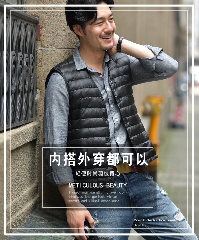 新款无领羽绒内胆马甲男秋冬轻薄羽绒服外套青年大码坎肩背心