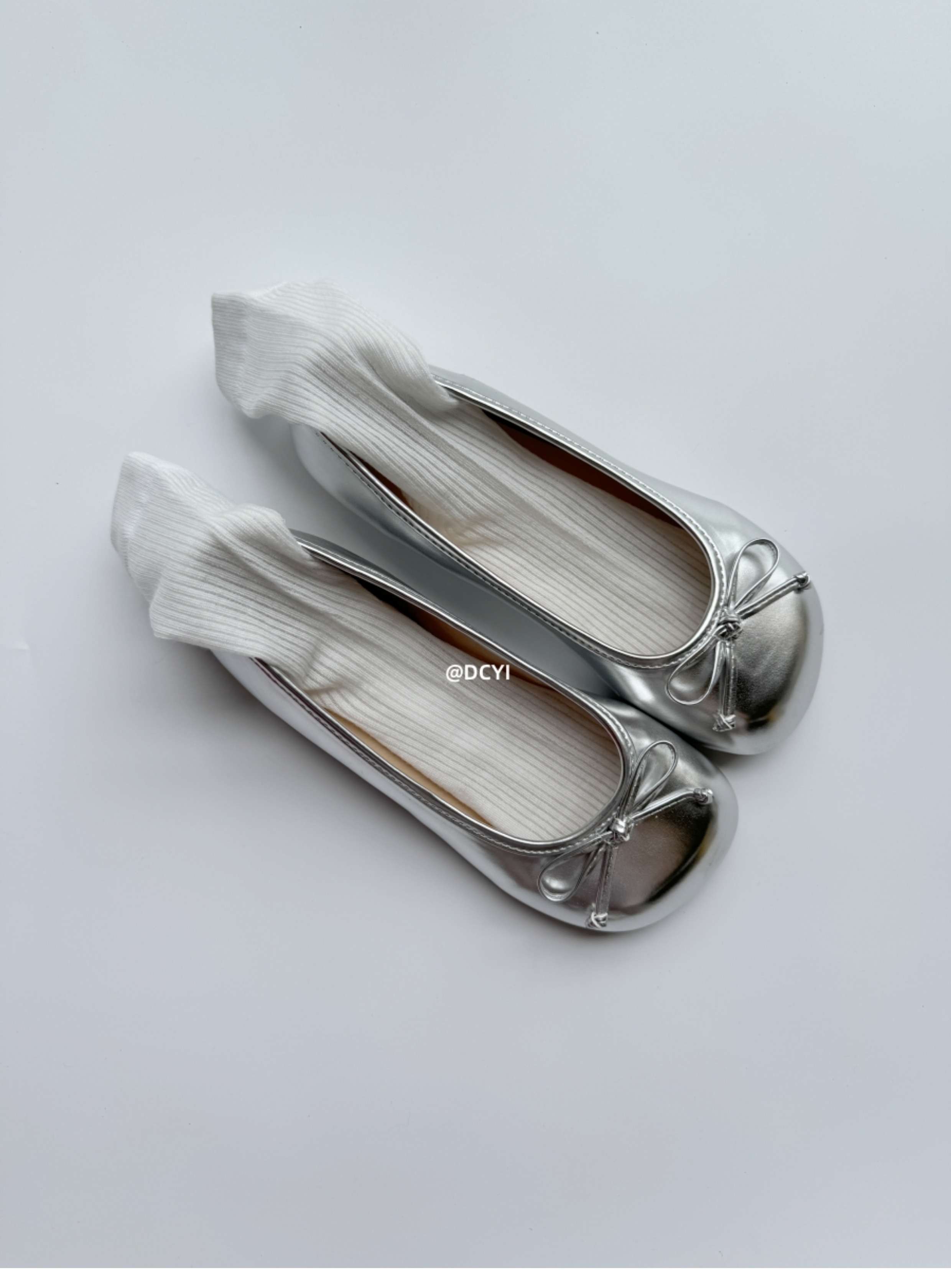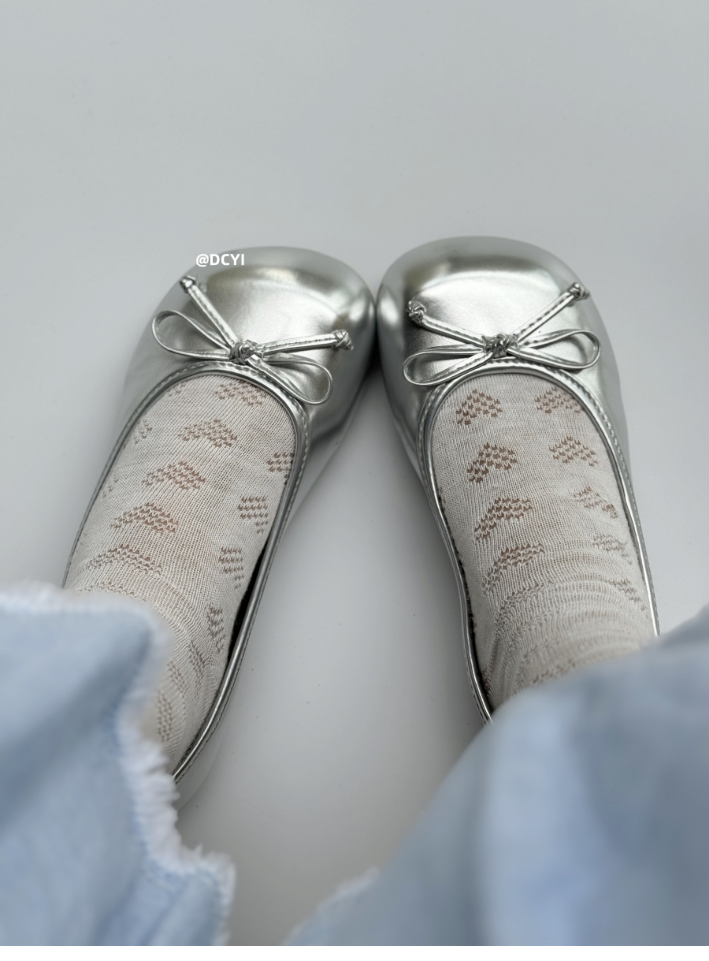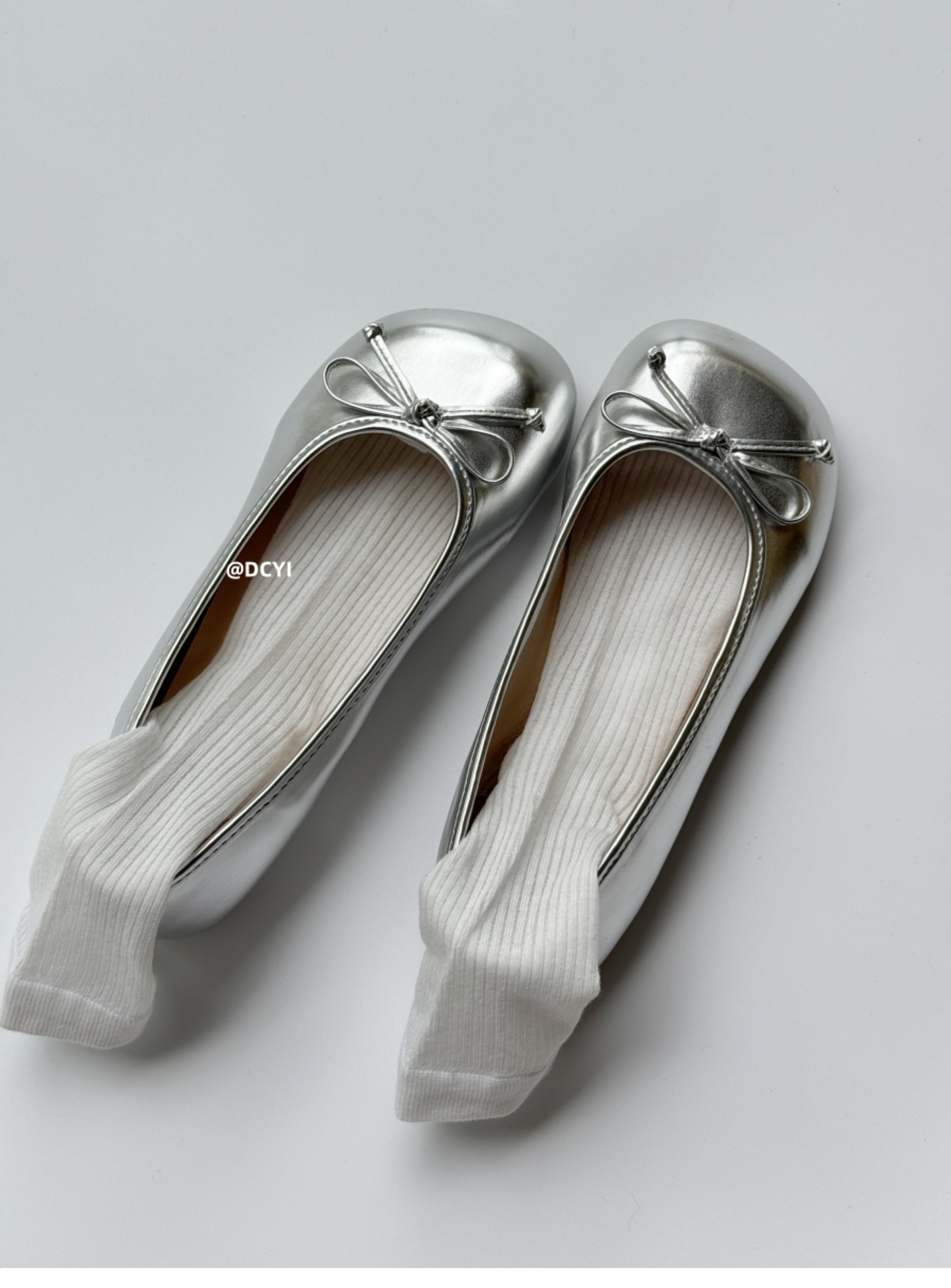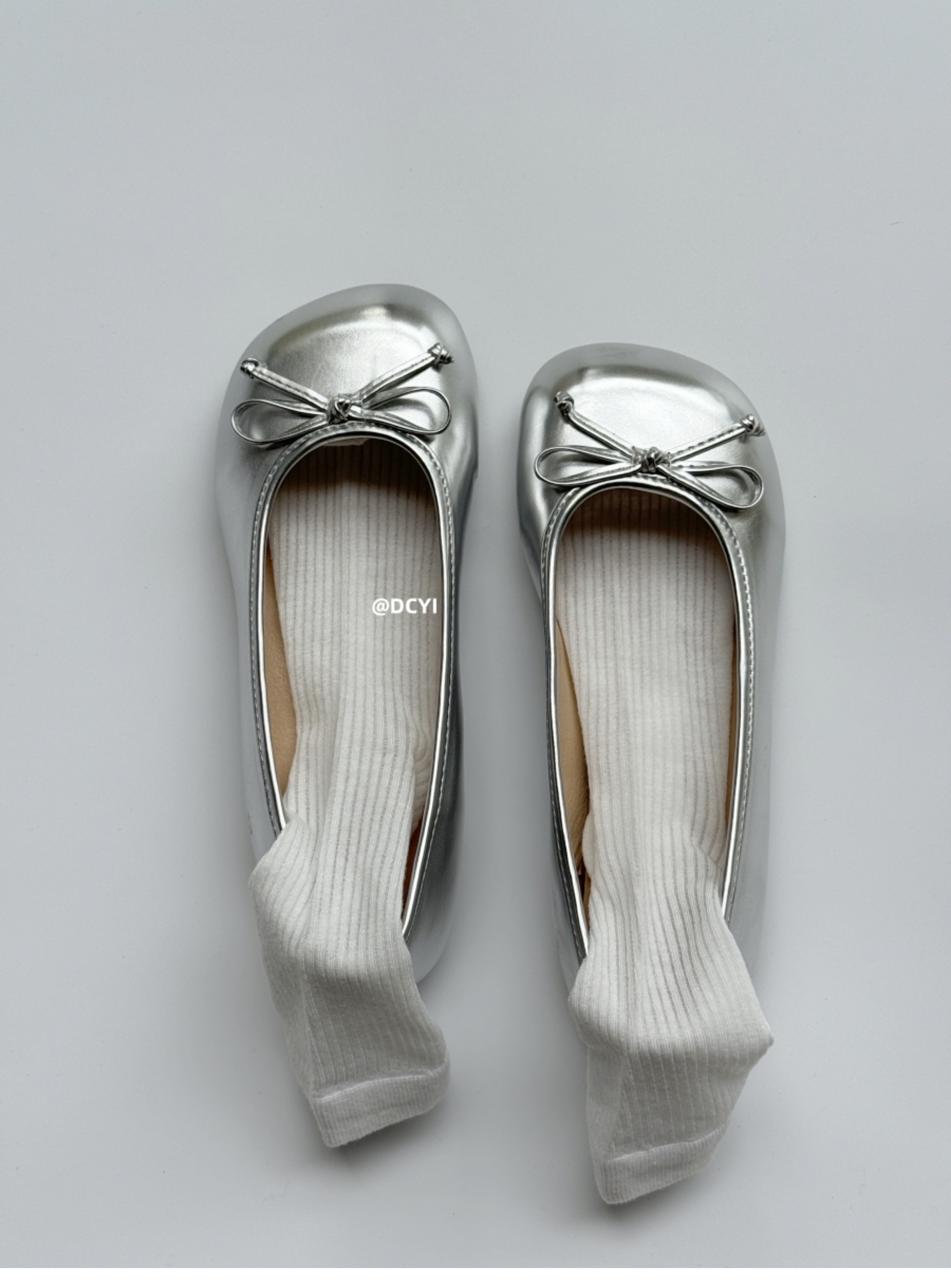 DCYI银色芭蕾风小皮鞋女百搭圆头玛丽珍平底可爱奶奶鞋蝴蝶结单鞋