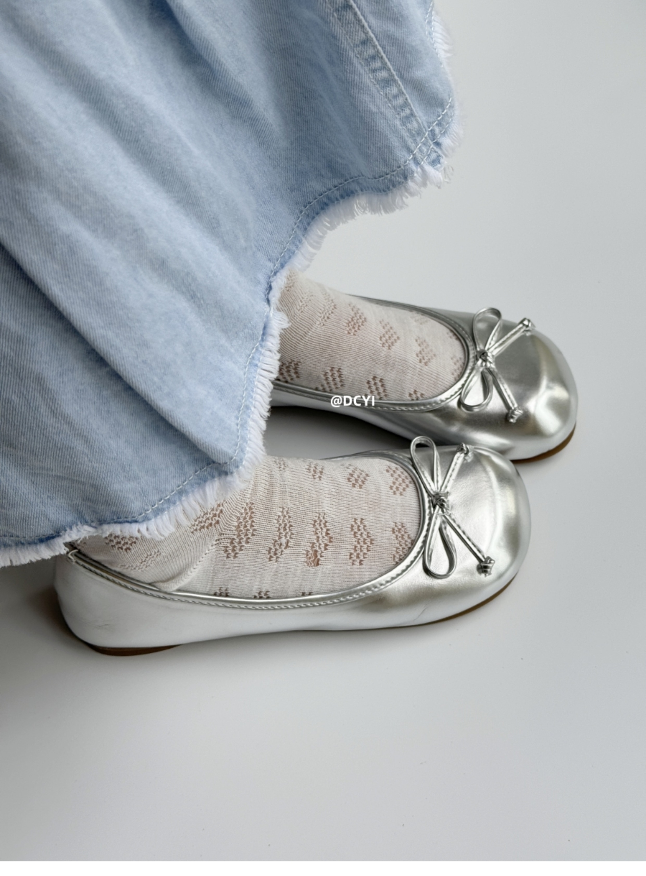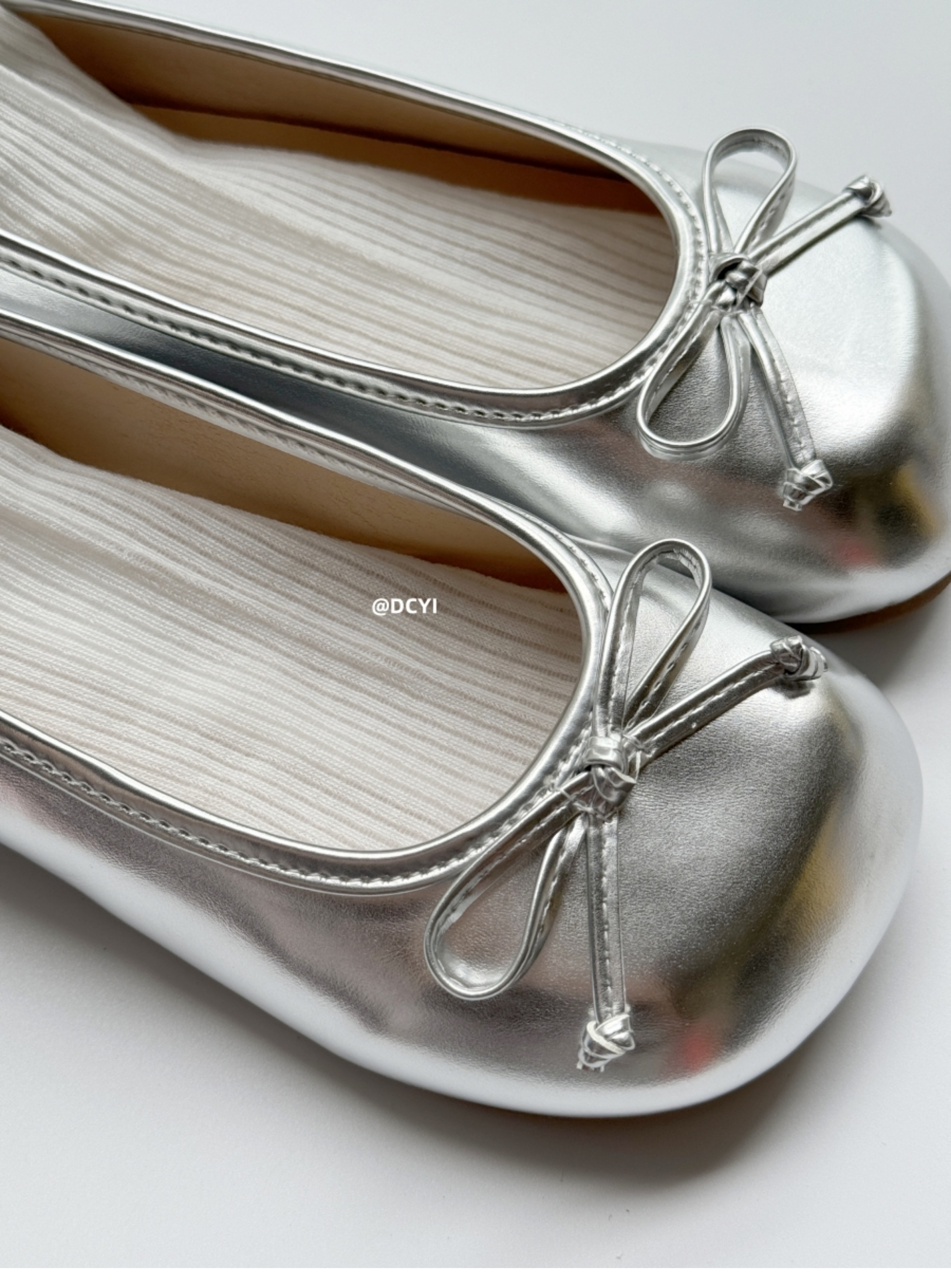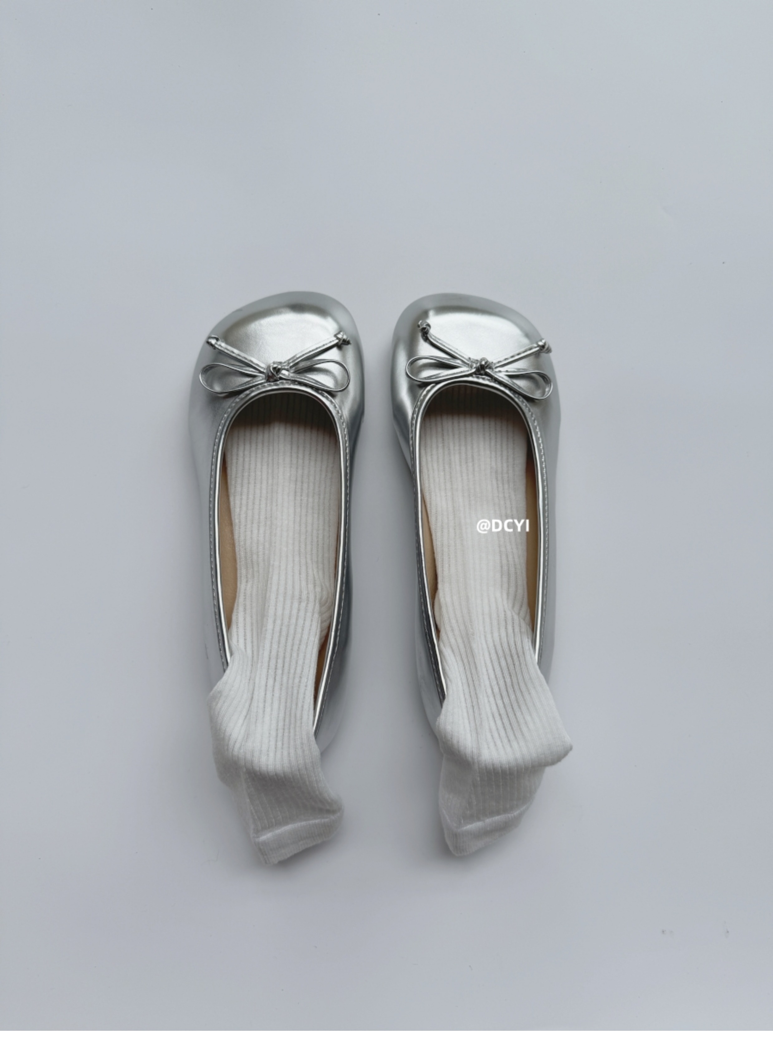 DCYI银色芭蕾风小皮鞋女百搭圆头玛丽珍平底可爱奶奶鞋蝴蝶结单鞋