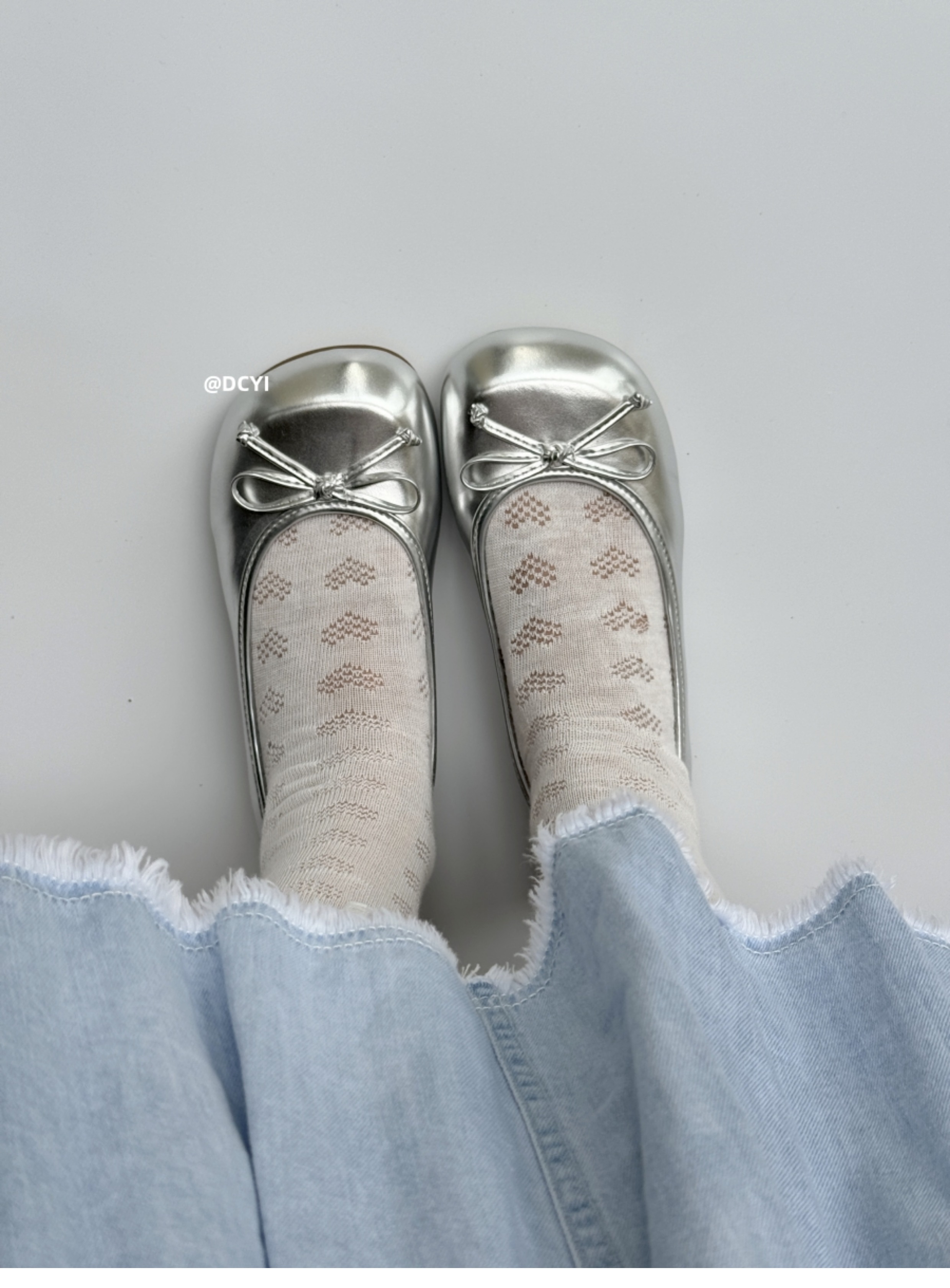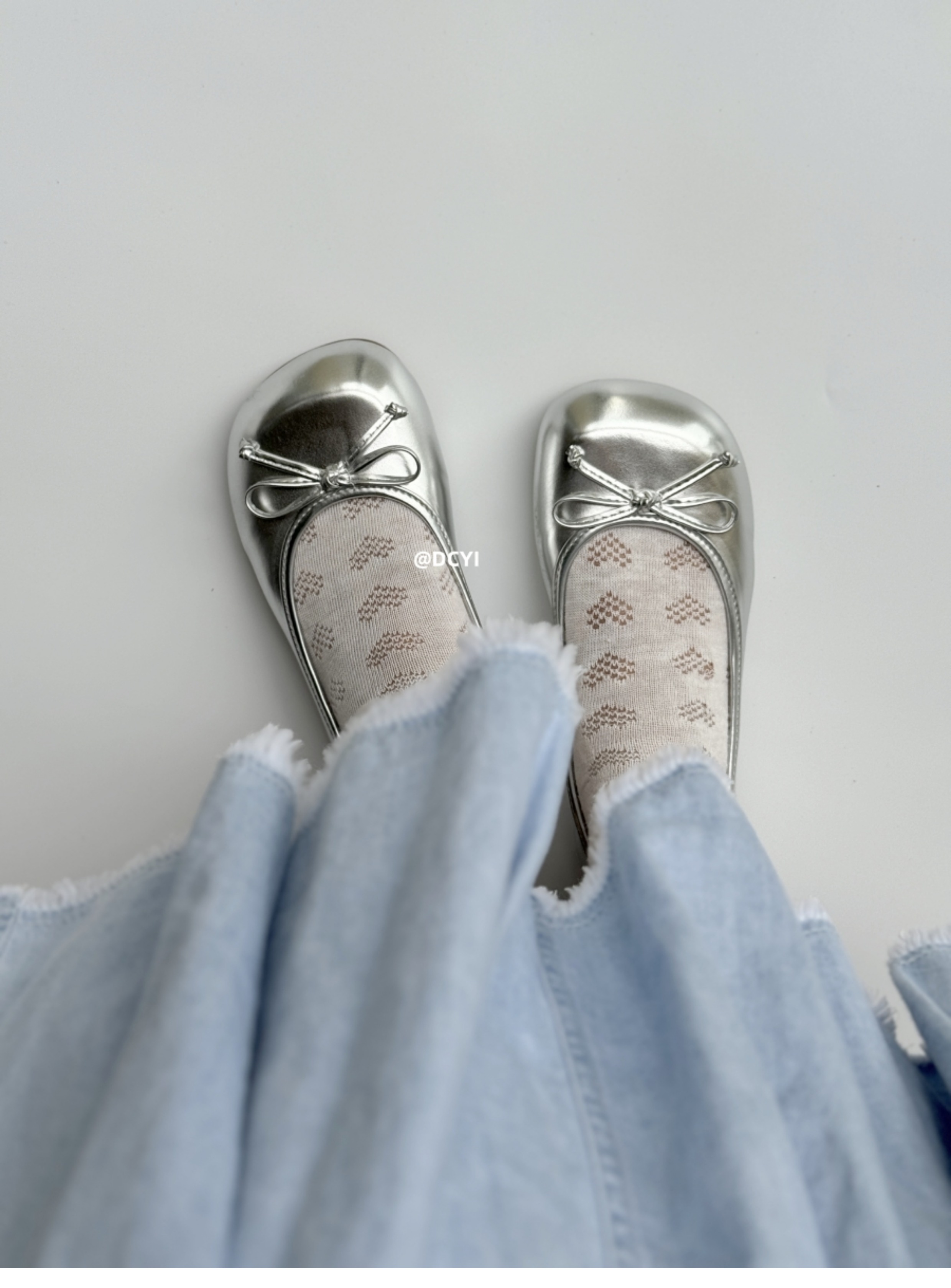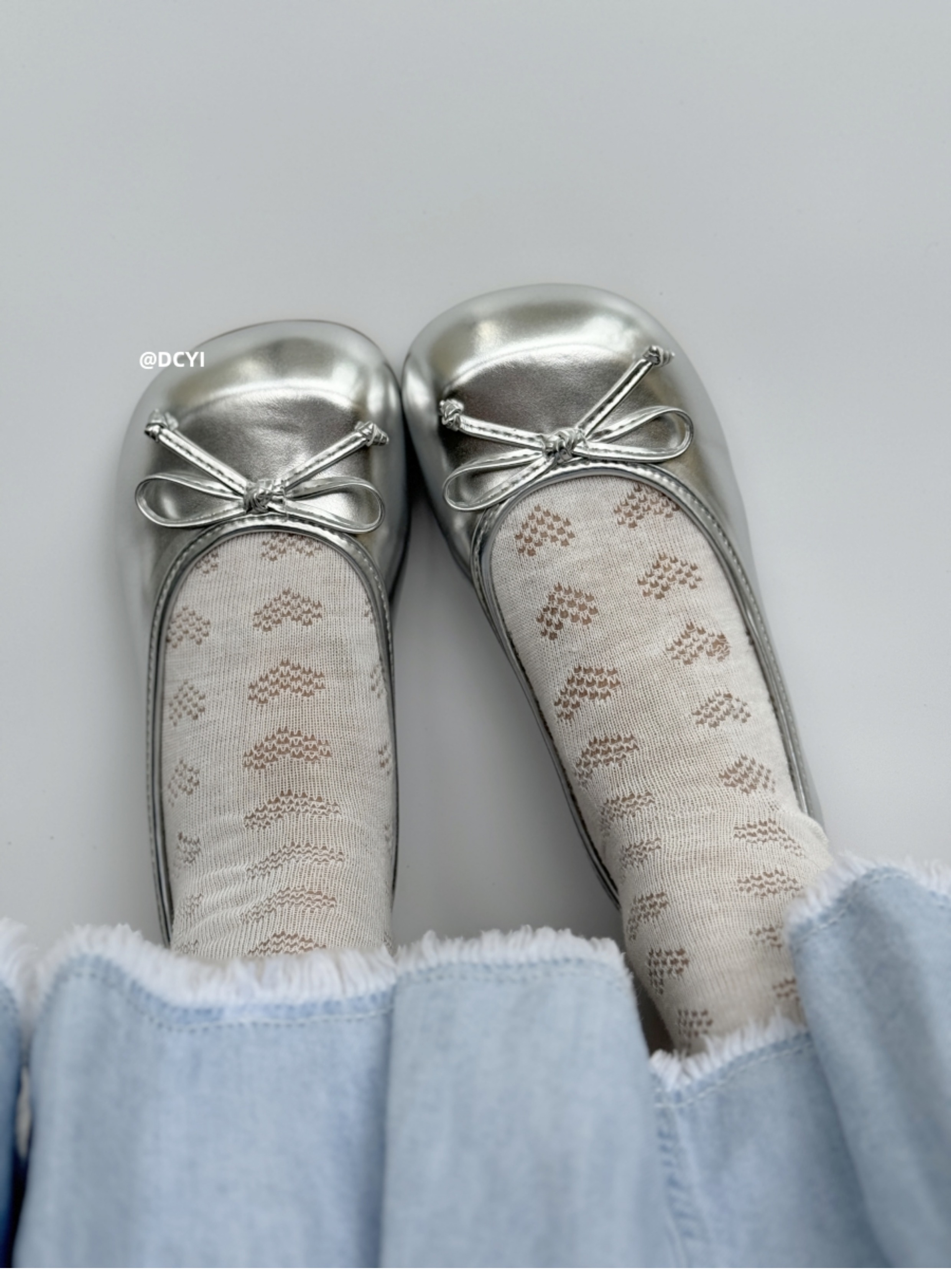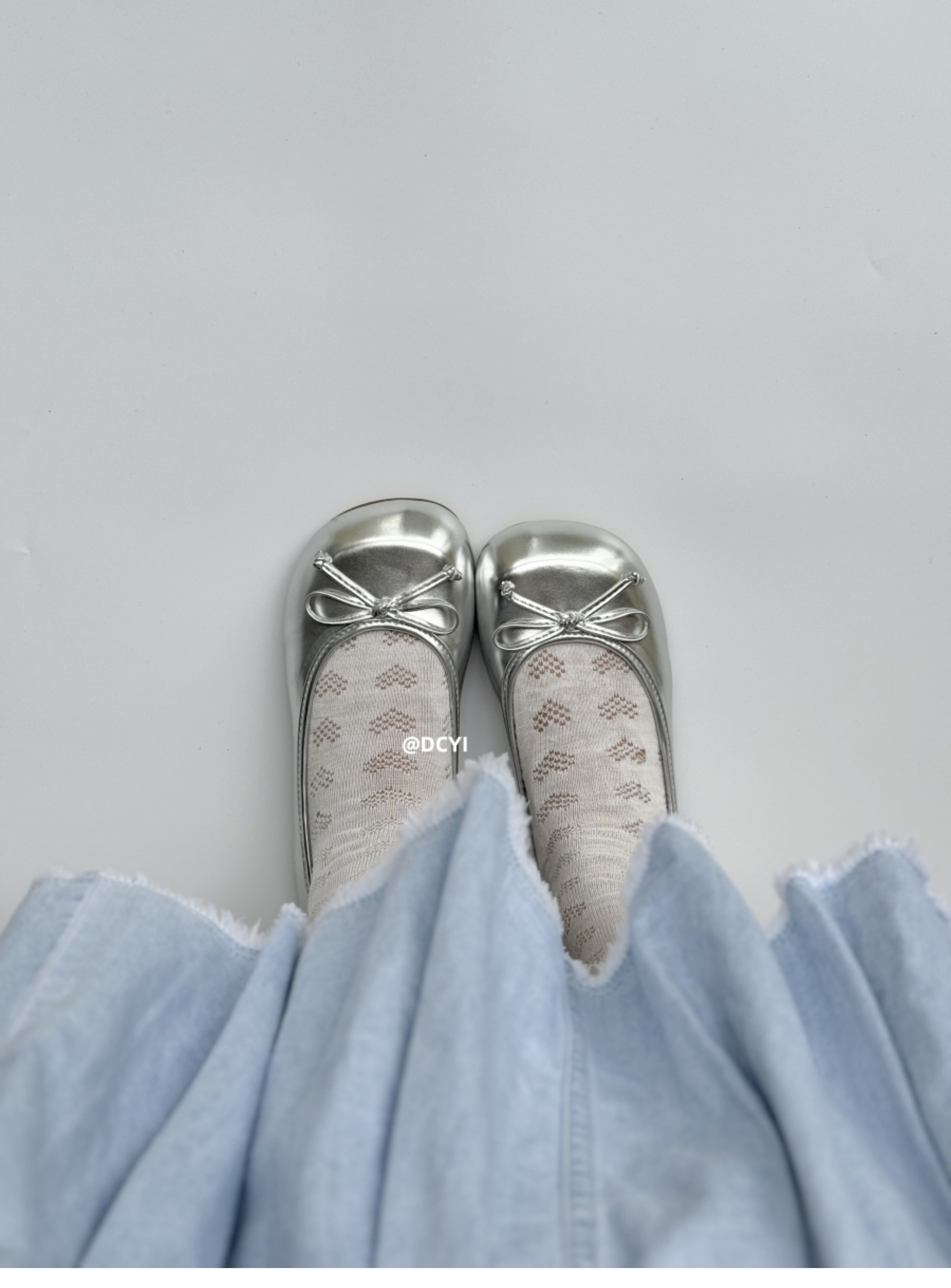 DCYI银色芭蕾风小皮鞋女百搭圆头玛丽珍平底可爱奶奶鞋蝴蝶结单鞋