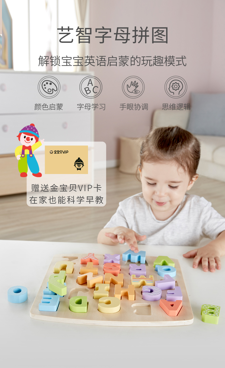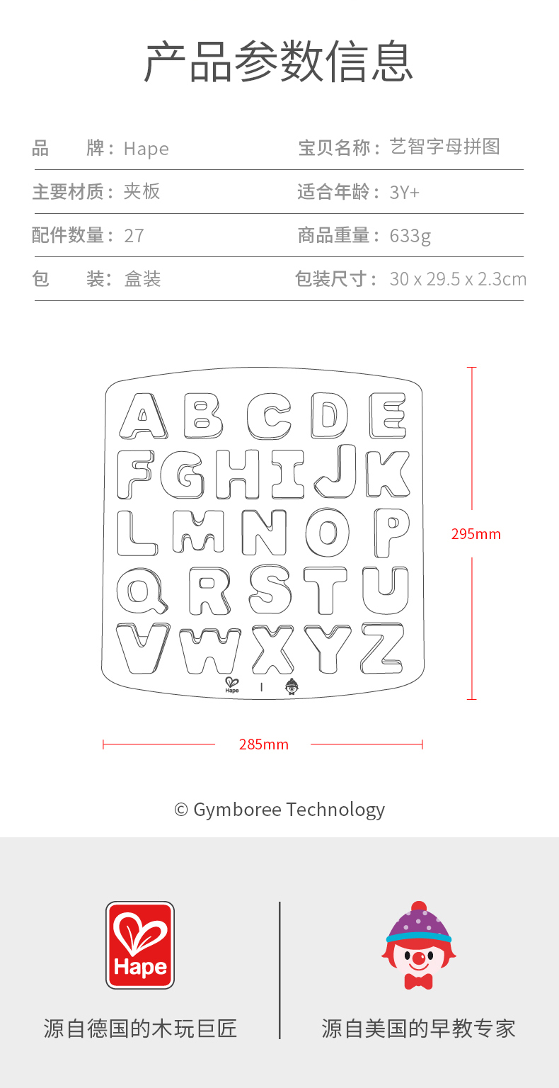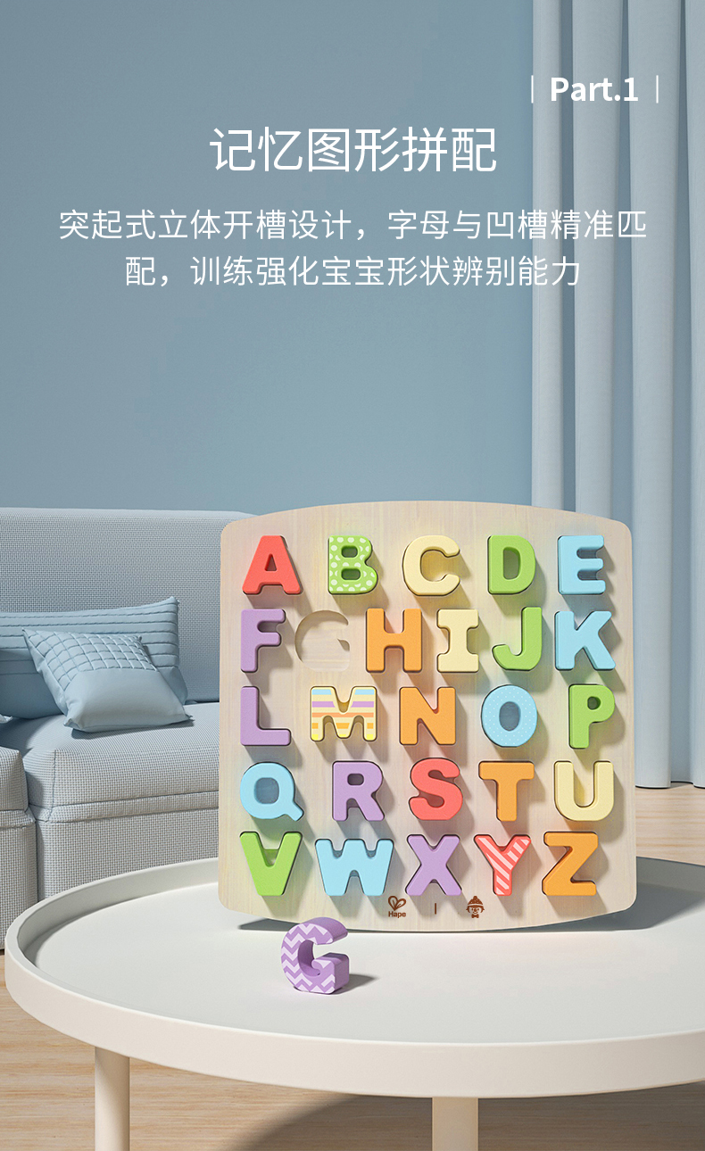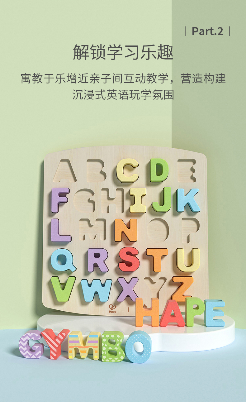 Hape艺智字母拼图 儿童木质拼板男女孩益智玩具3-6岁宝宝木制大写