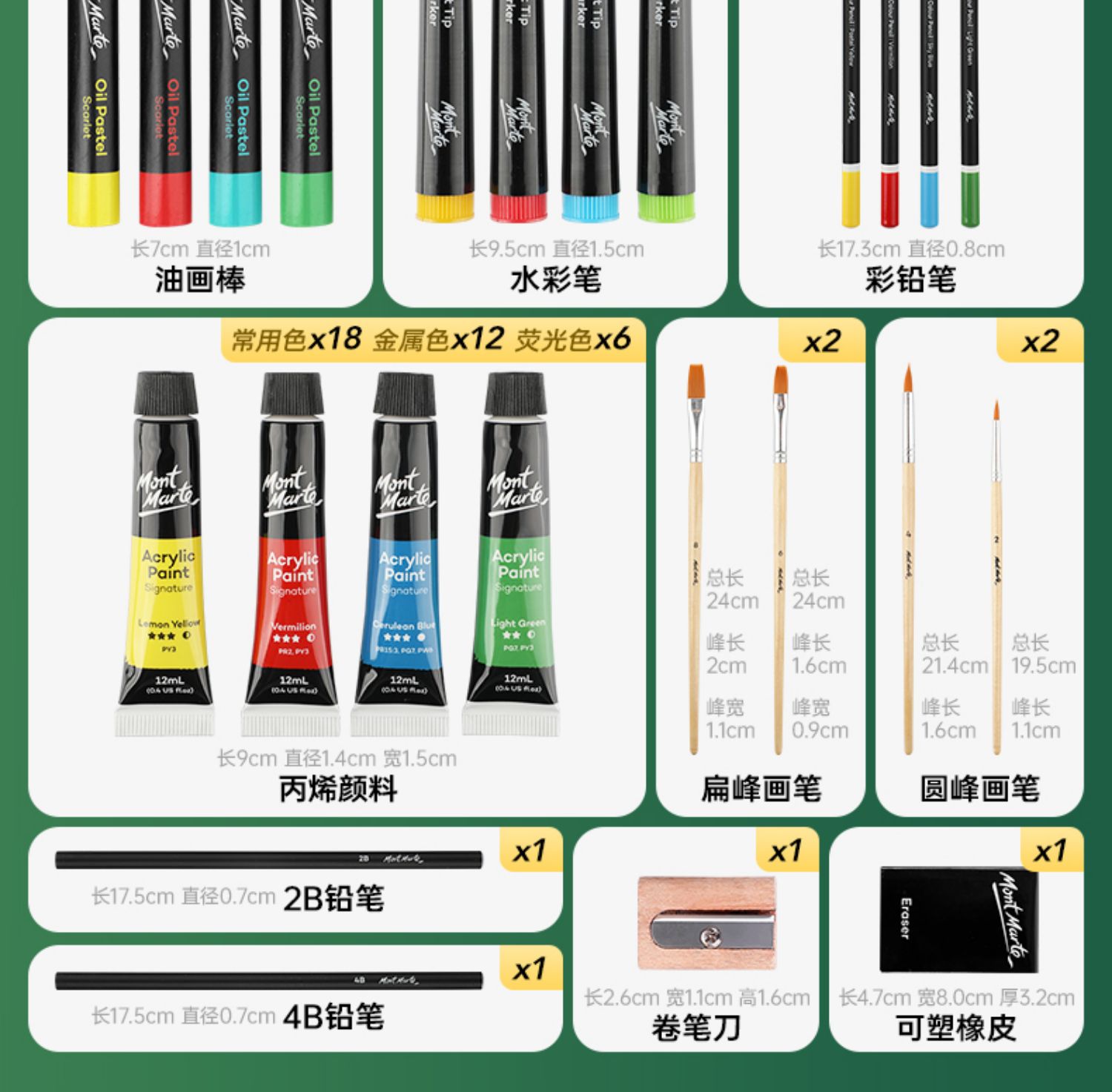 蒙玛特 174绘画套装礼盒水彩笔蜡笔画笔画画文具用品美术工具箱