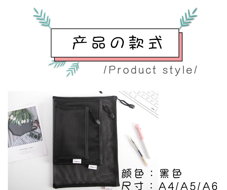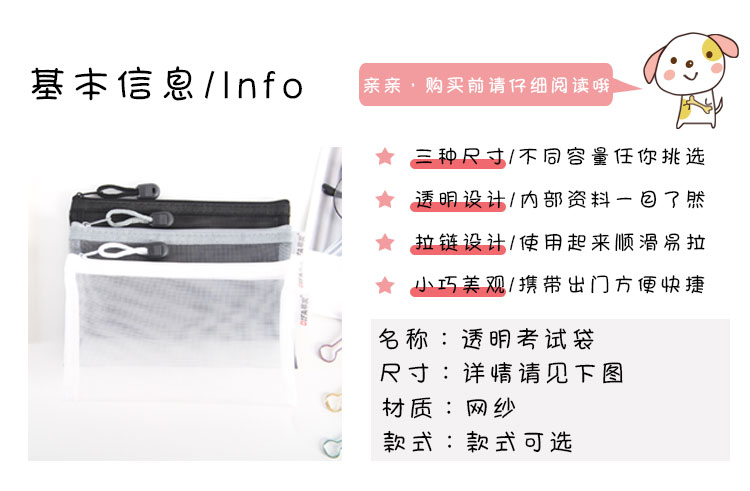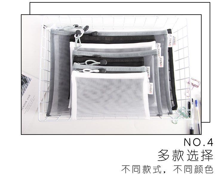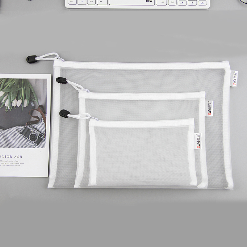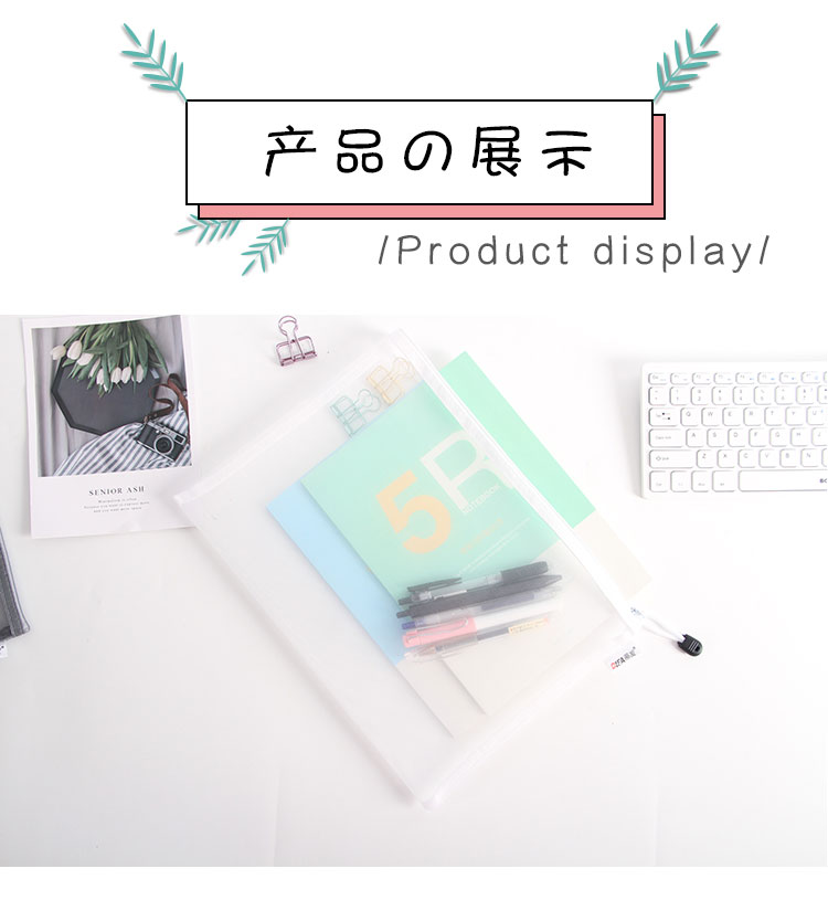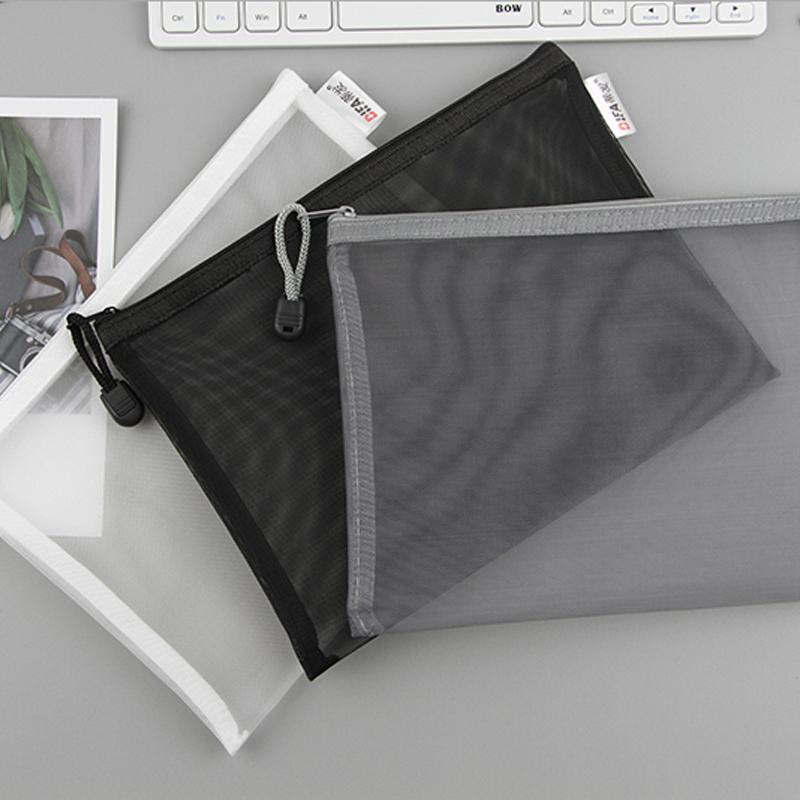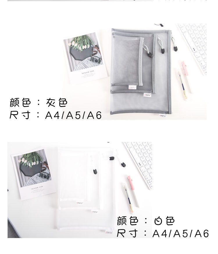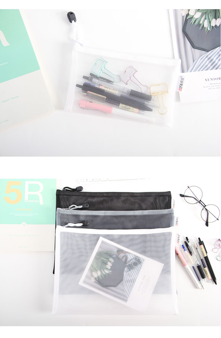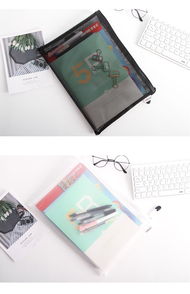 日系A4透明网格A5拉链文件袋资料袋学生考试用笔袋文具手提收纳袋