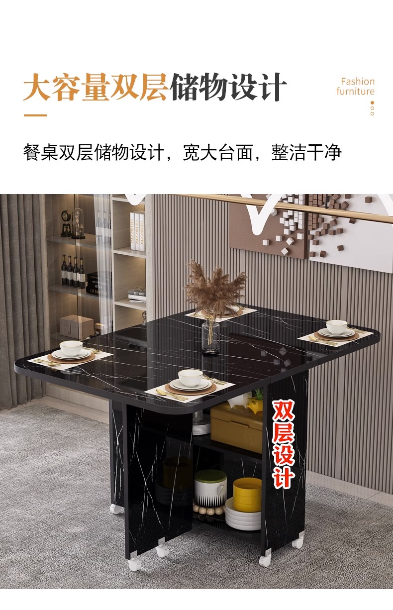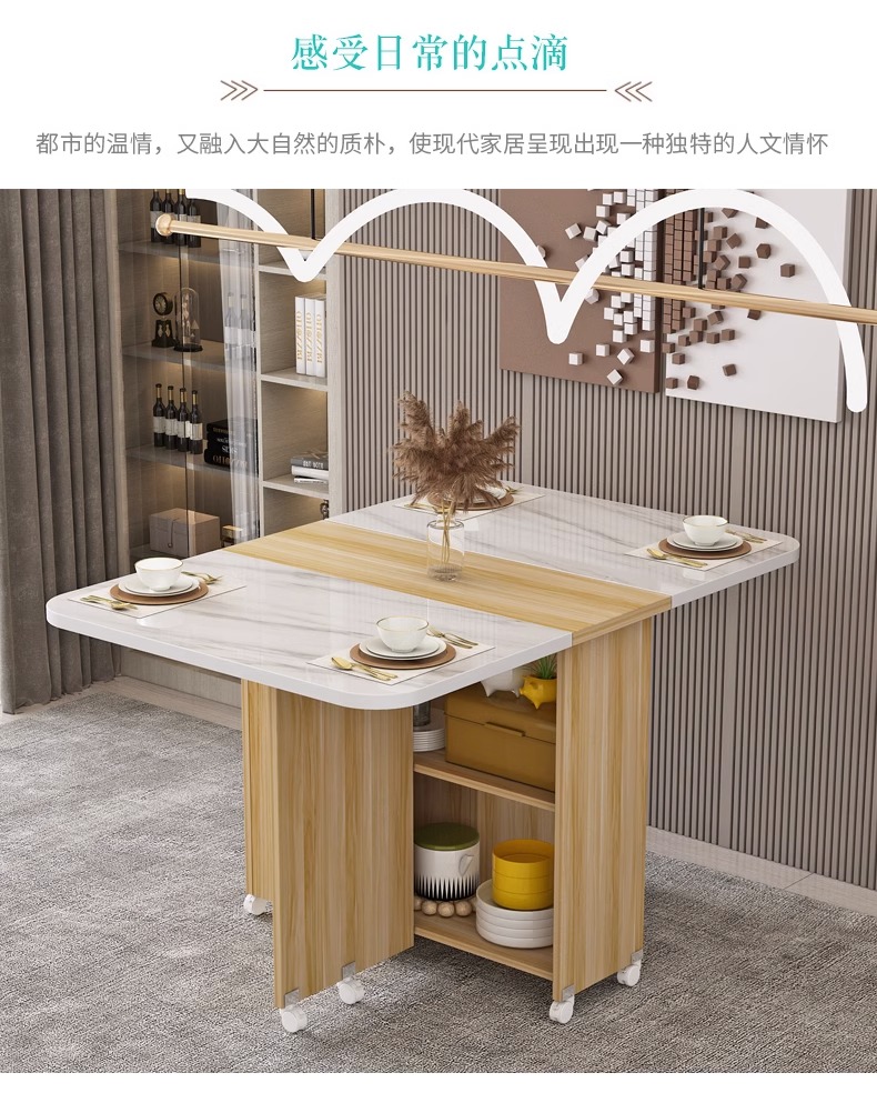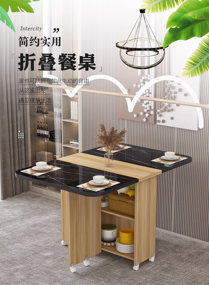 简易折叠餐桌小户型家用伸缩餐桌可移动吃饭桌子出租房用