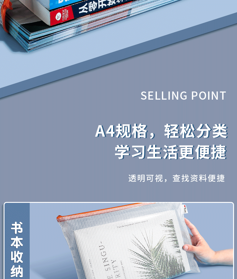 晨光a4拉链袋文件袋拉链式透明防水资料袋文件夹a3文具袋试卷收纳袋办公用品文具网格考试专用大容量手提分类