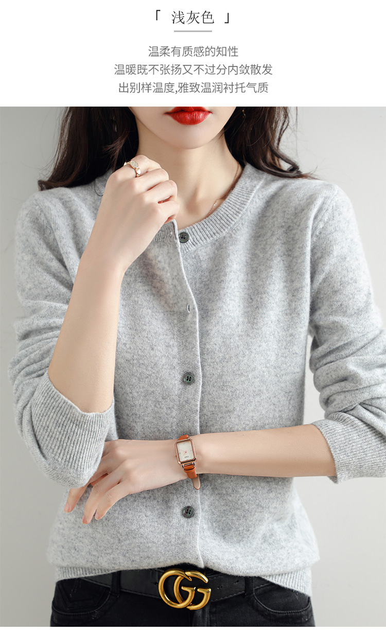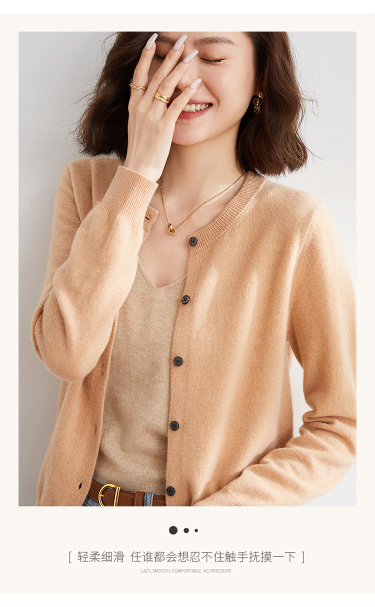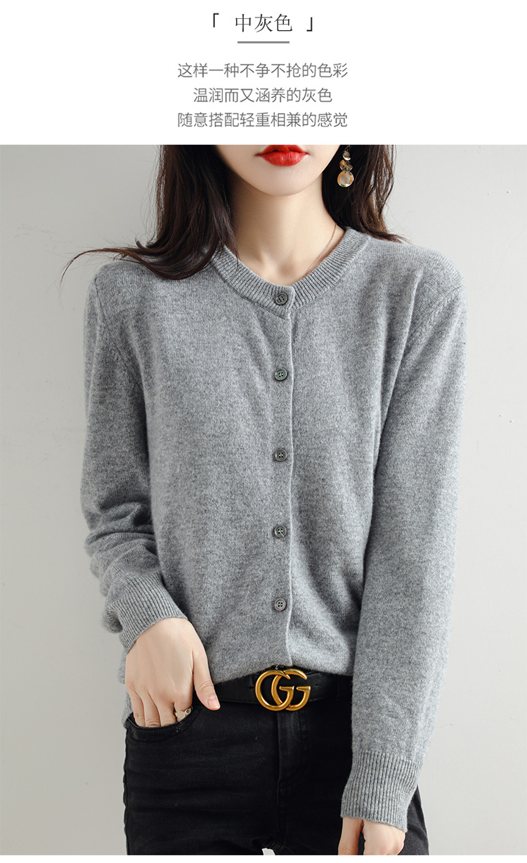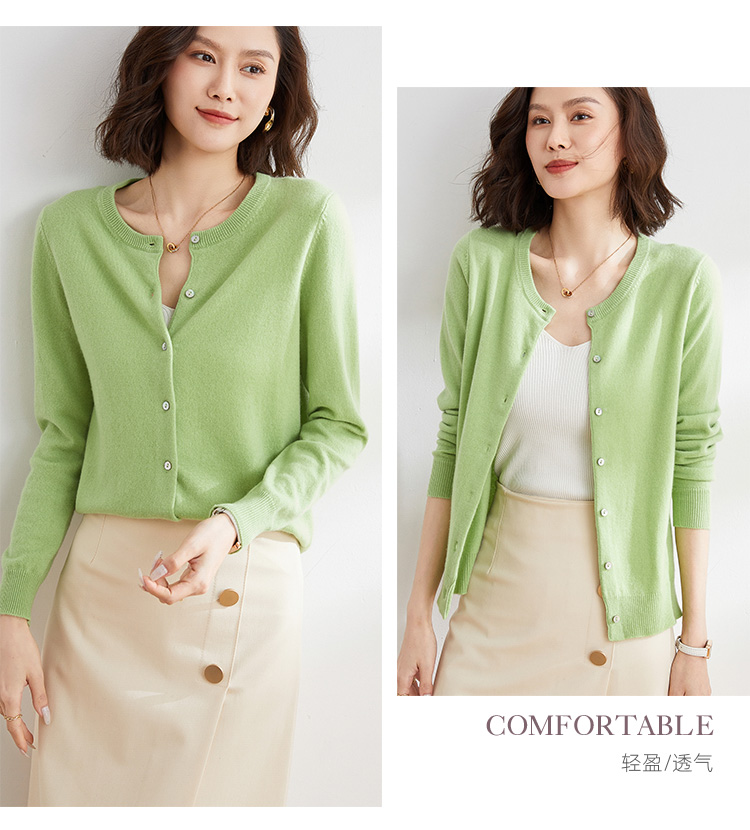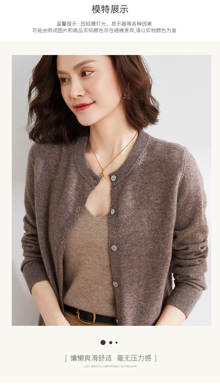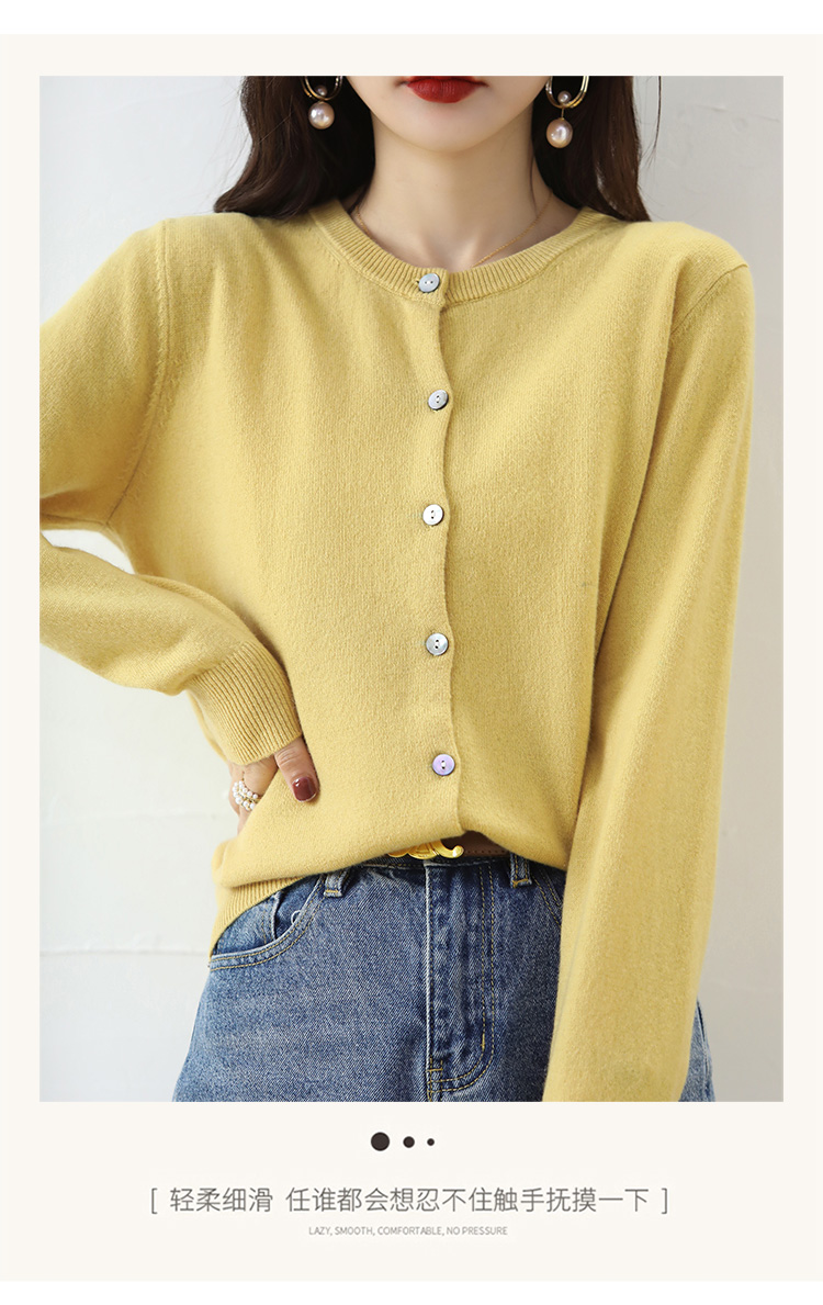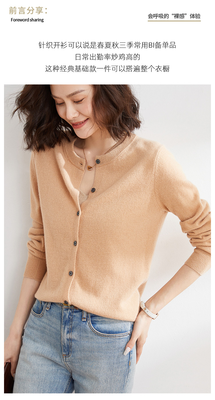 23早春新款女宽松圆领薄款针织衫开衫慵懒风软糯复古秋季毛衣外套