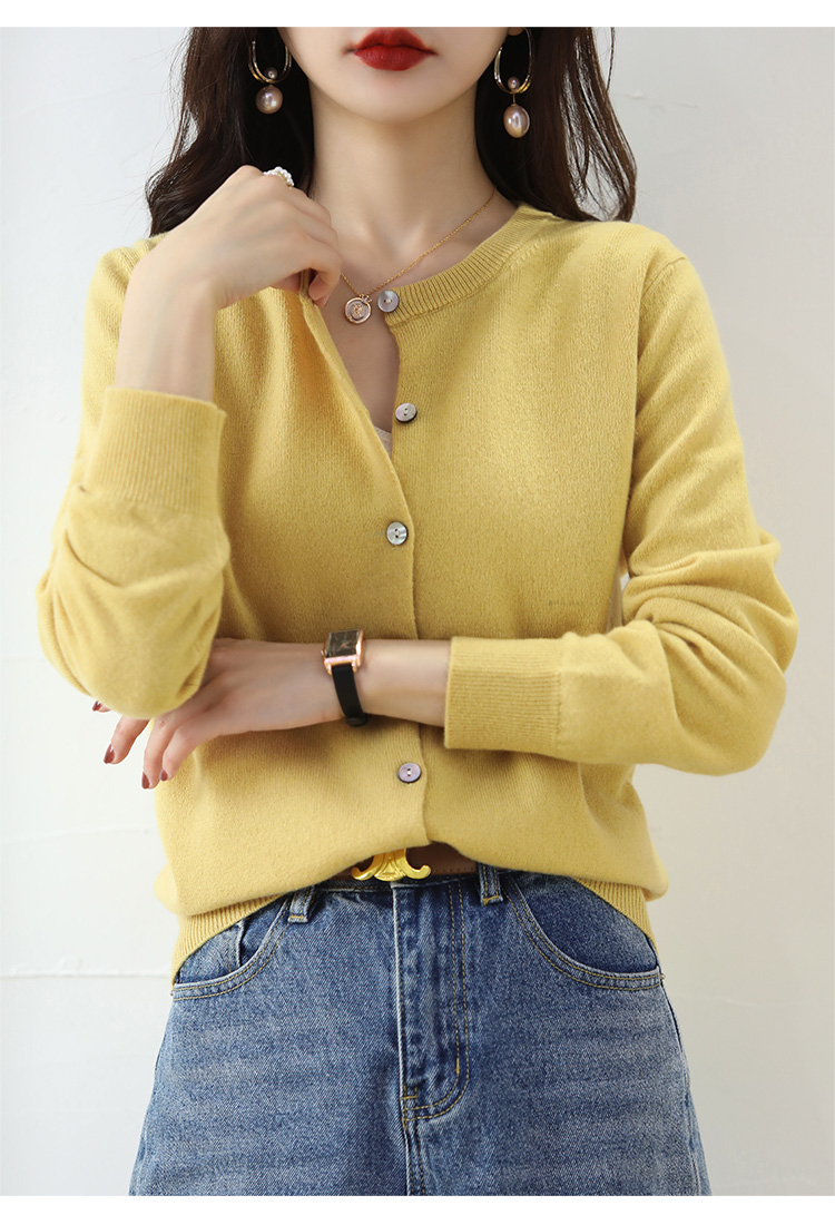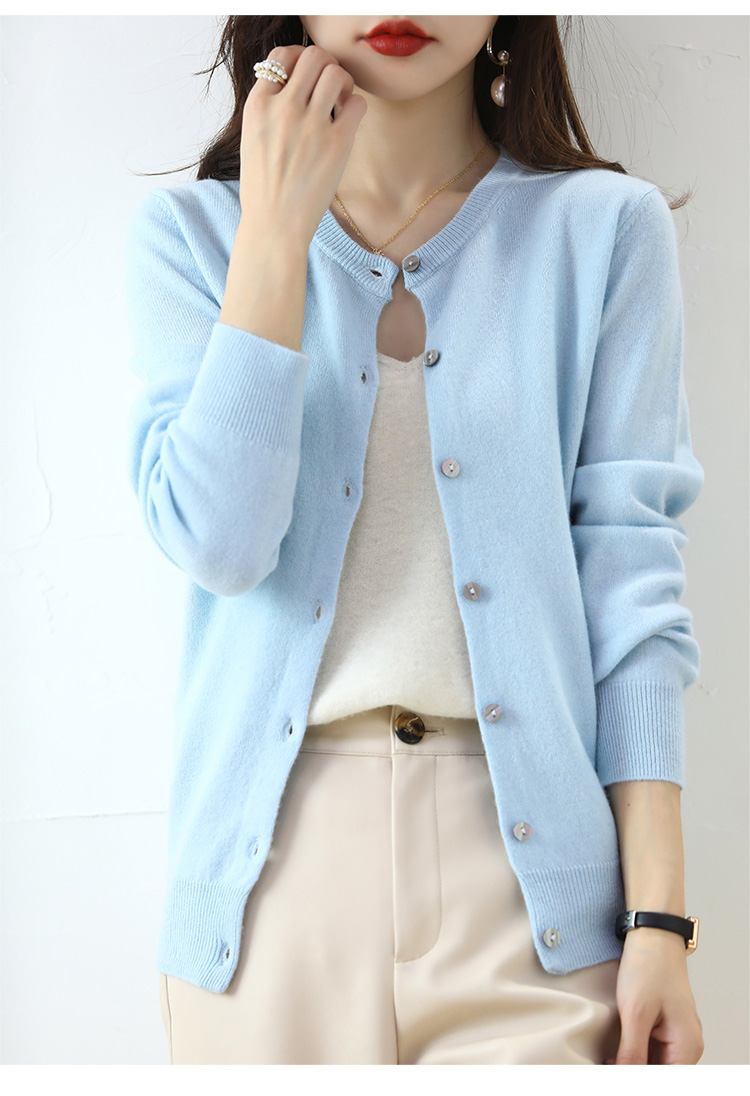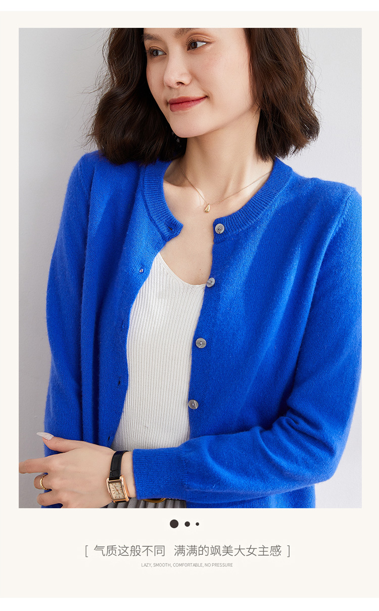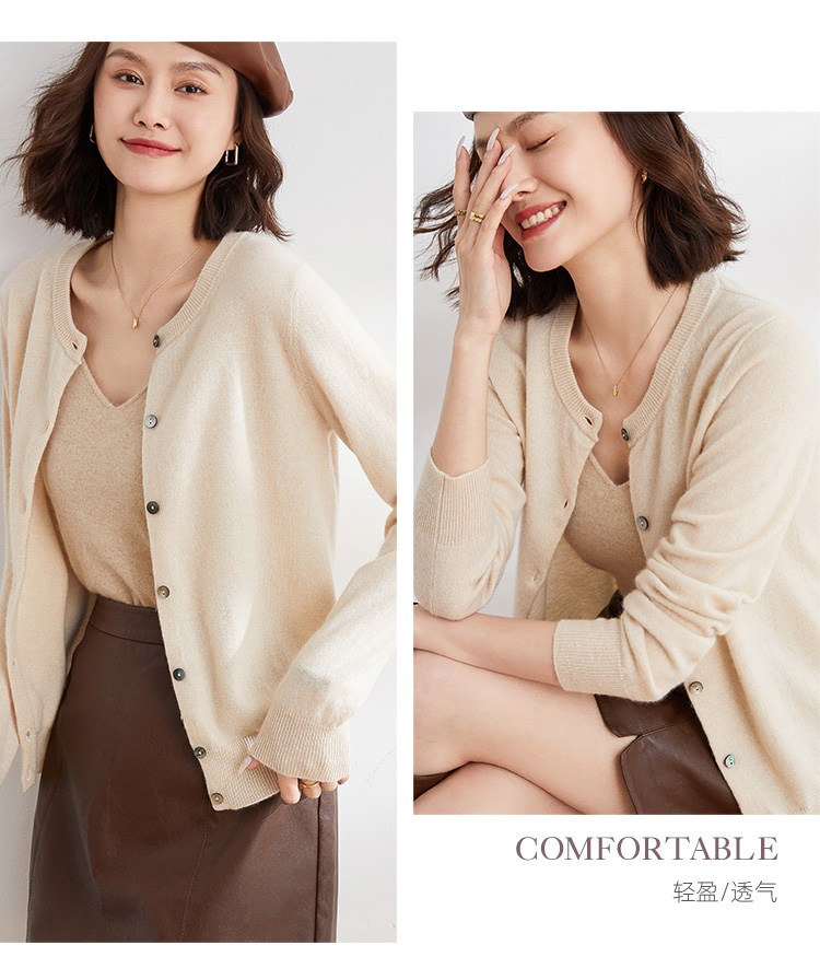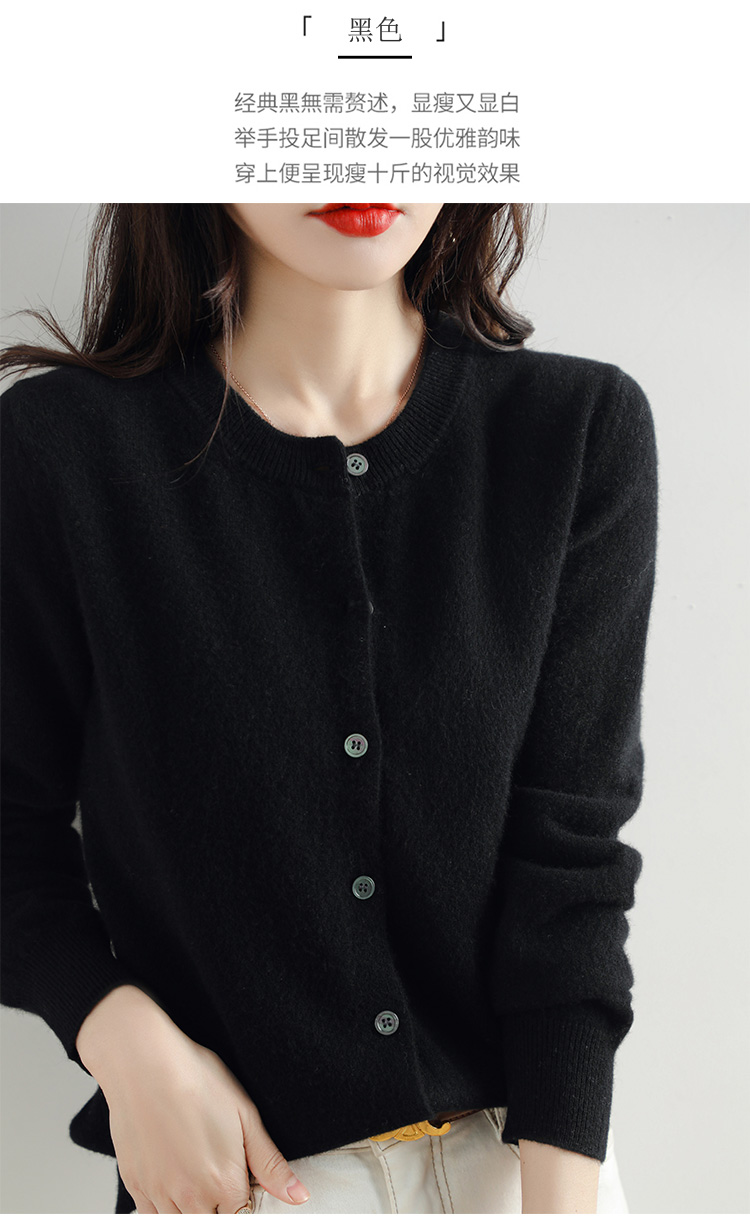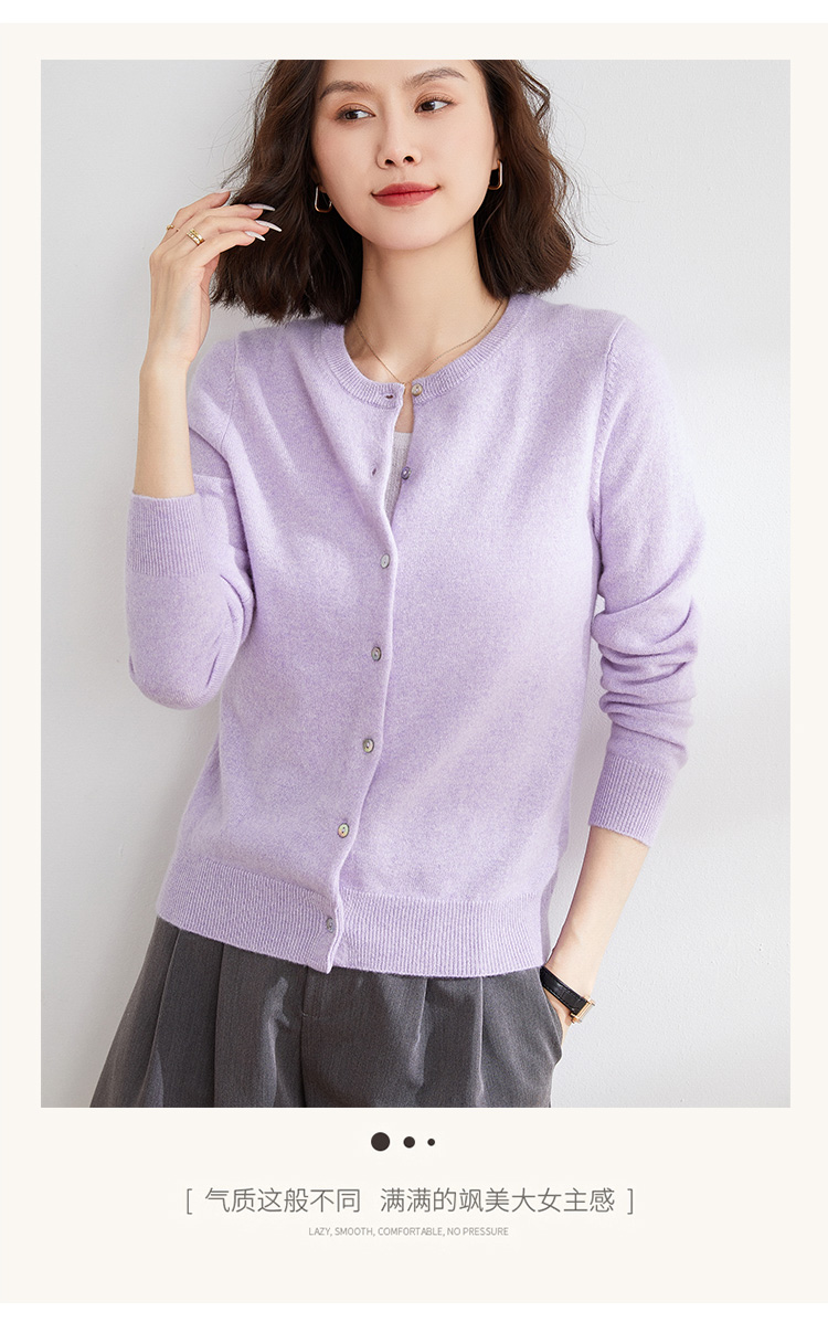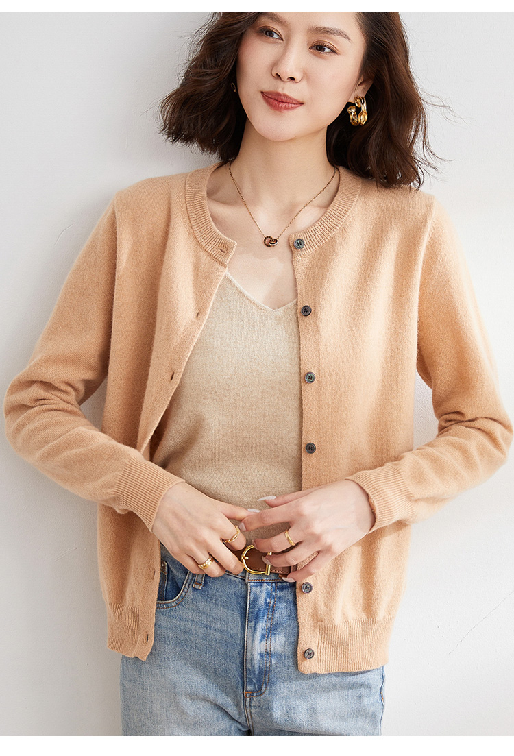 23早春新款女宽松圆领薄款针织衫开衫慵懒风软糯复古秋季毛衣外套