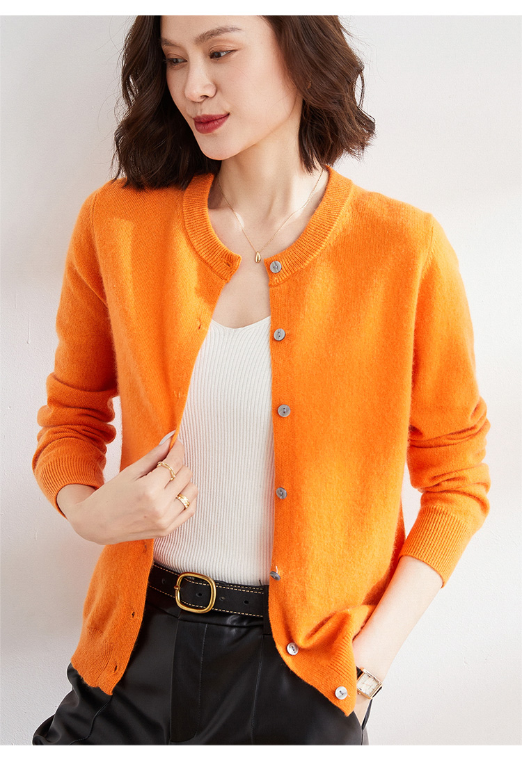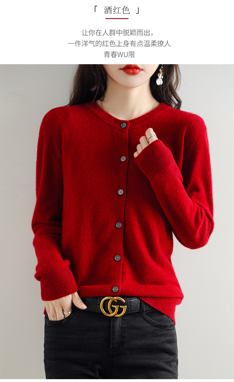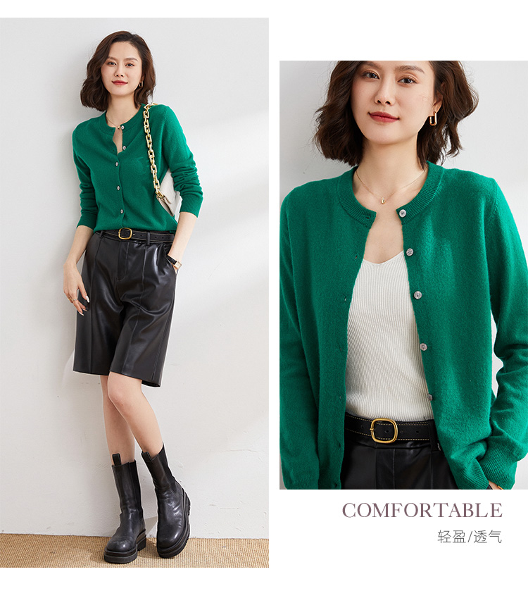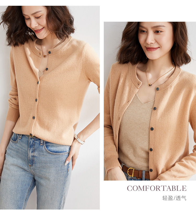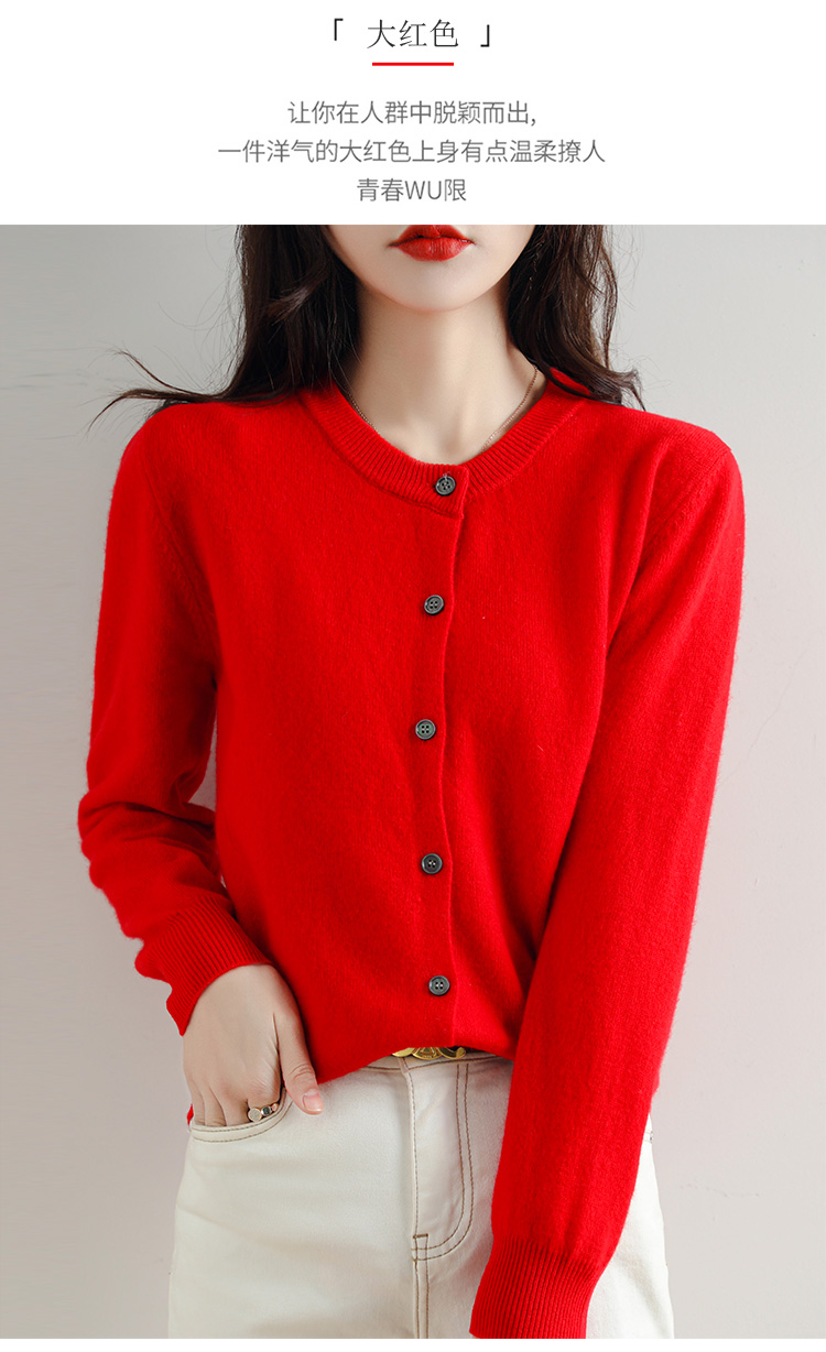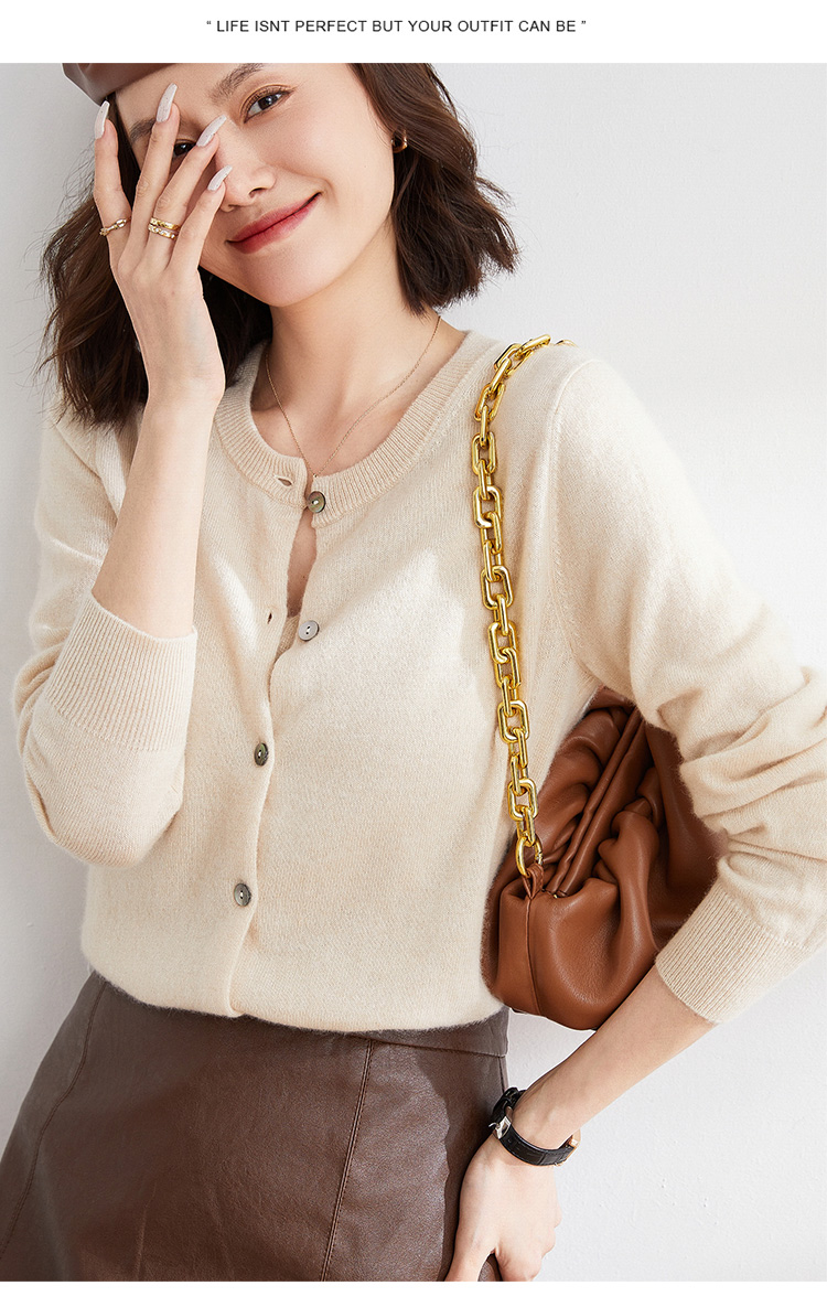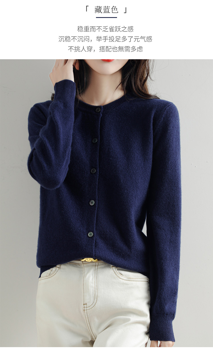 23早春新款女宽松圆领薄款针织衫开衫慵懒风软糯复古秋季毛衣外套