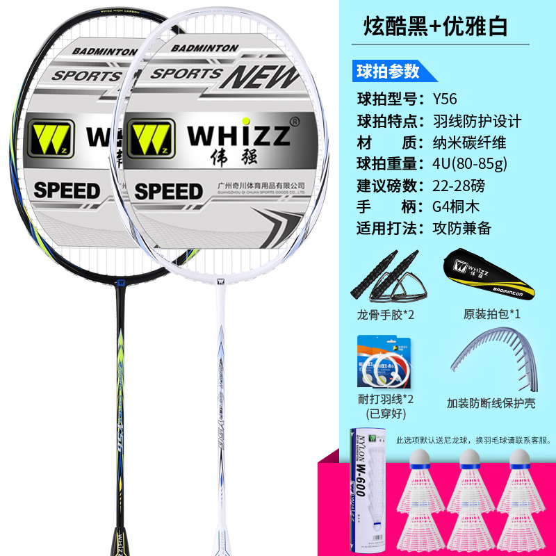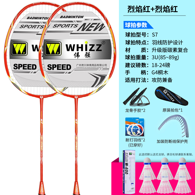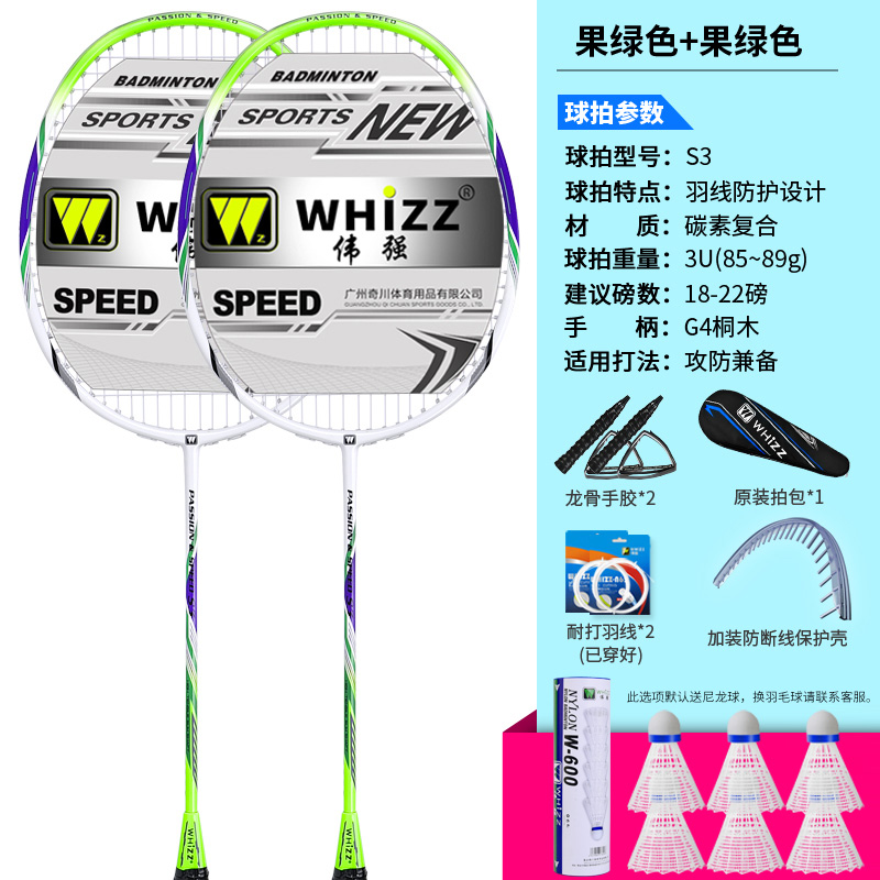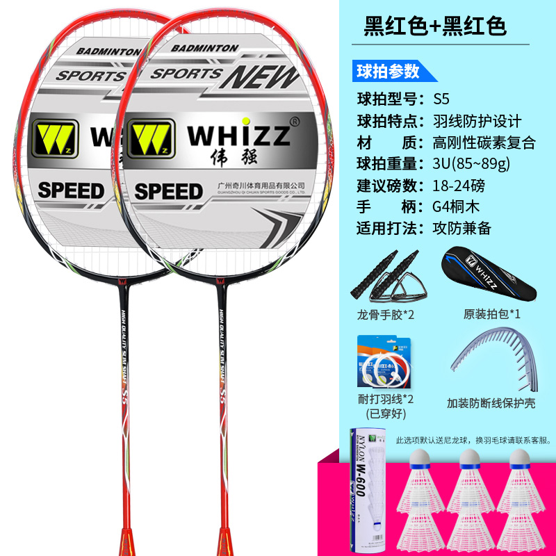 伟碳素正品强防磨羽毛球拍断双拍线全耐用型羽毛球套装学生双拍防