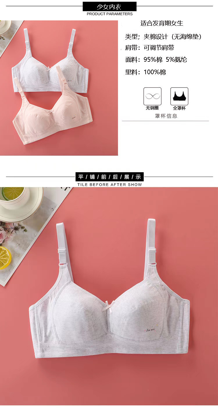 少女初中生纯棉内衣12-18岁高中学生薄款发育期无钢圈文胸防凸点