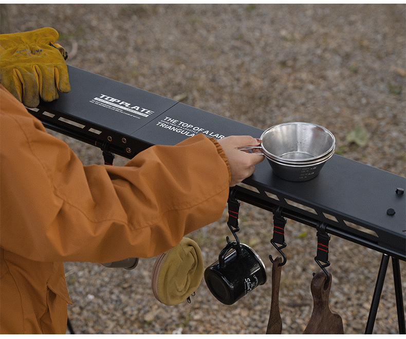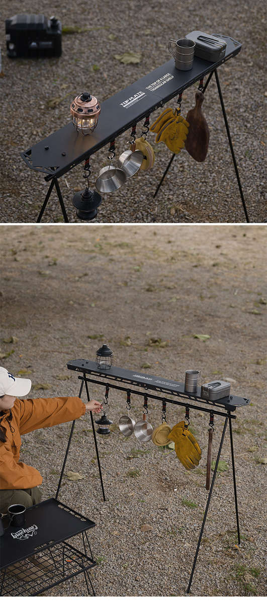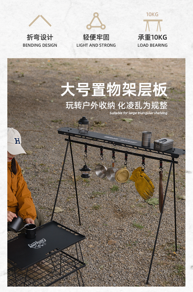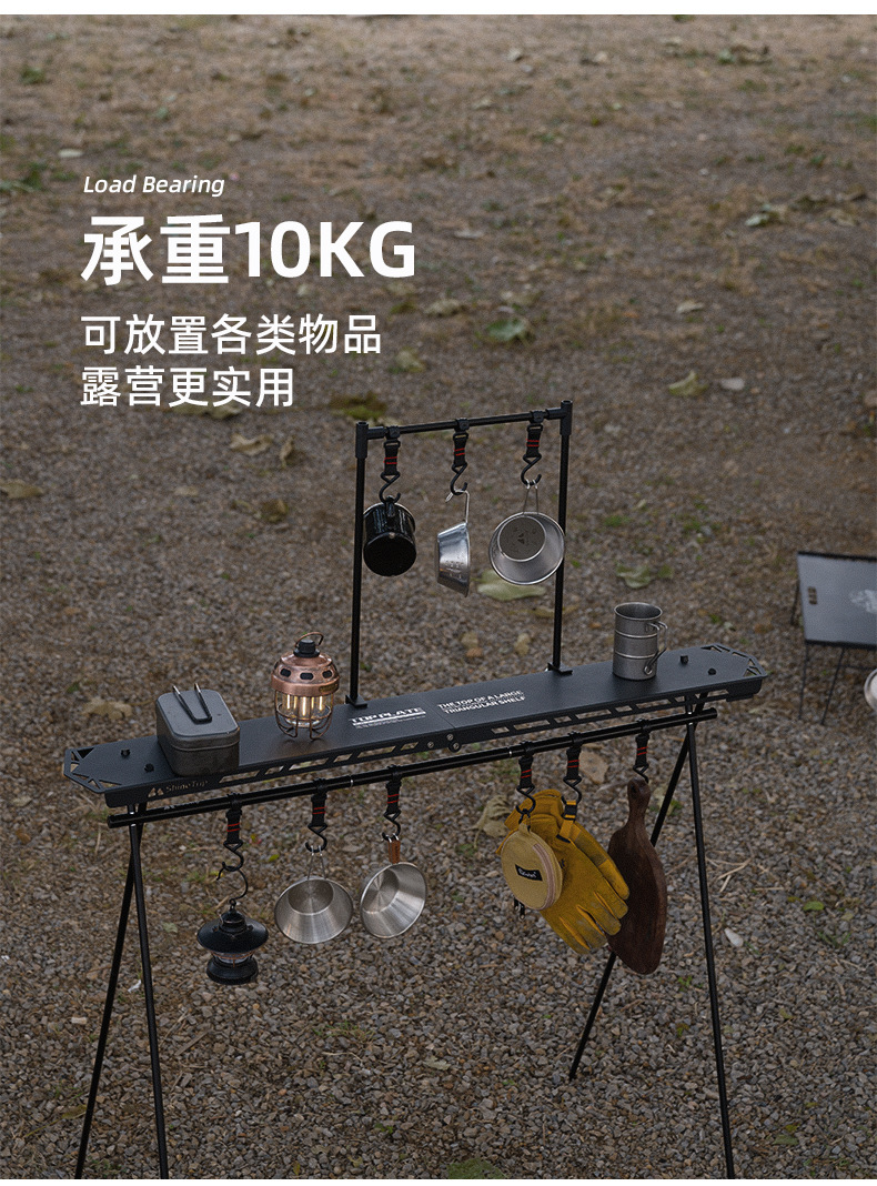 山趣露营三角架户外折叠大号置物架餐具收纳架铝合金天板桌板灯挂