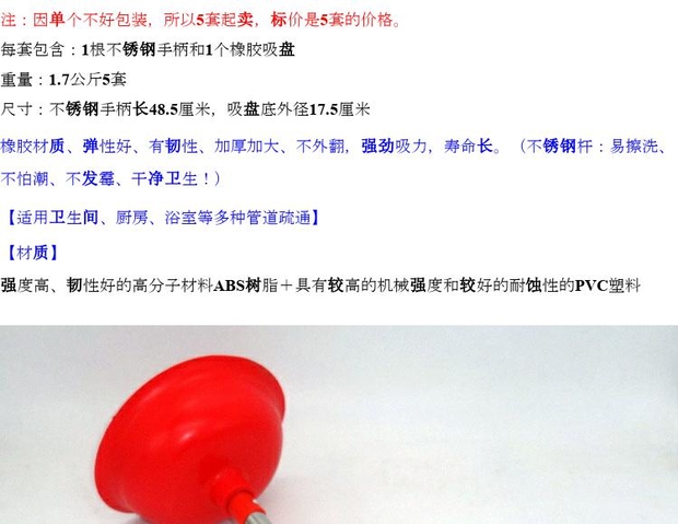 5个不锈钢柄皮吸 强力马桶吸 管道疏通器 皮搋子皮老虎通下水道器