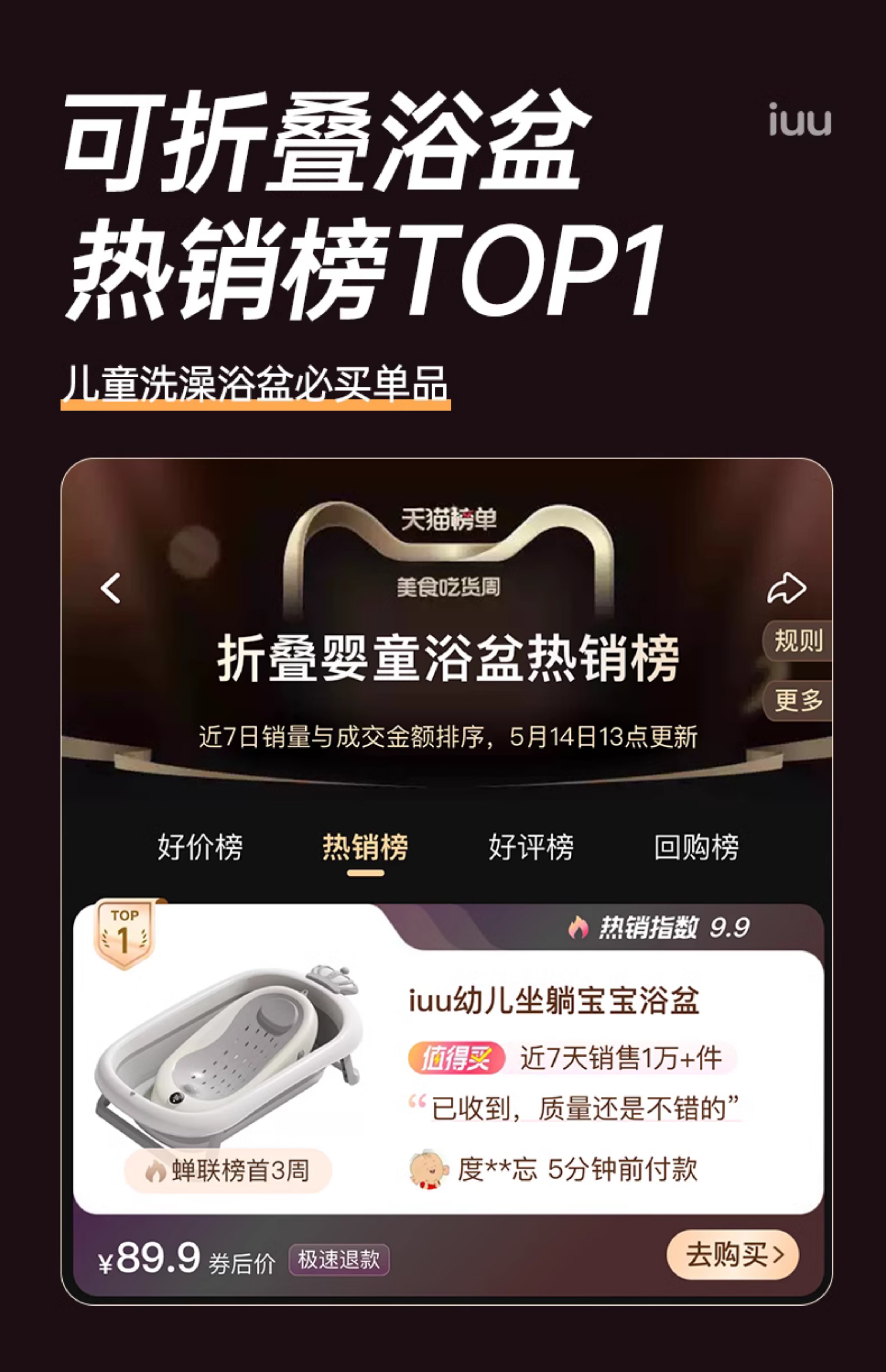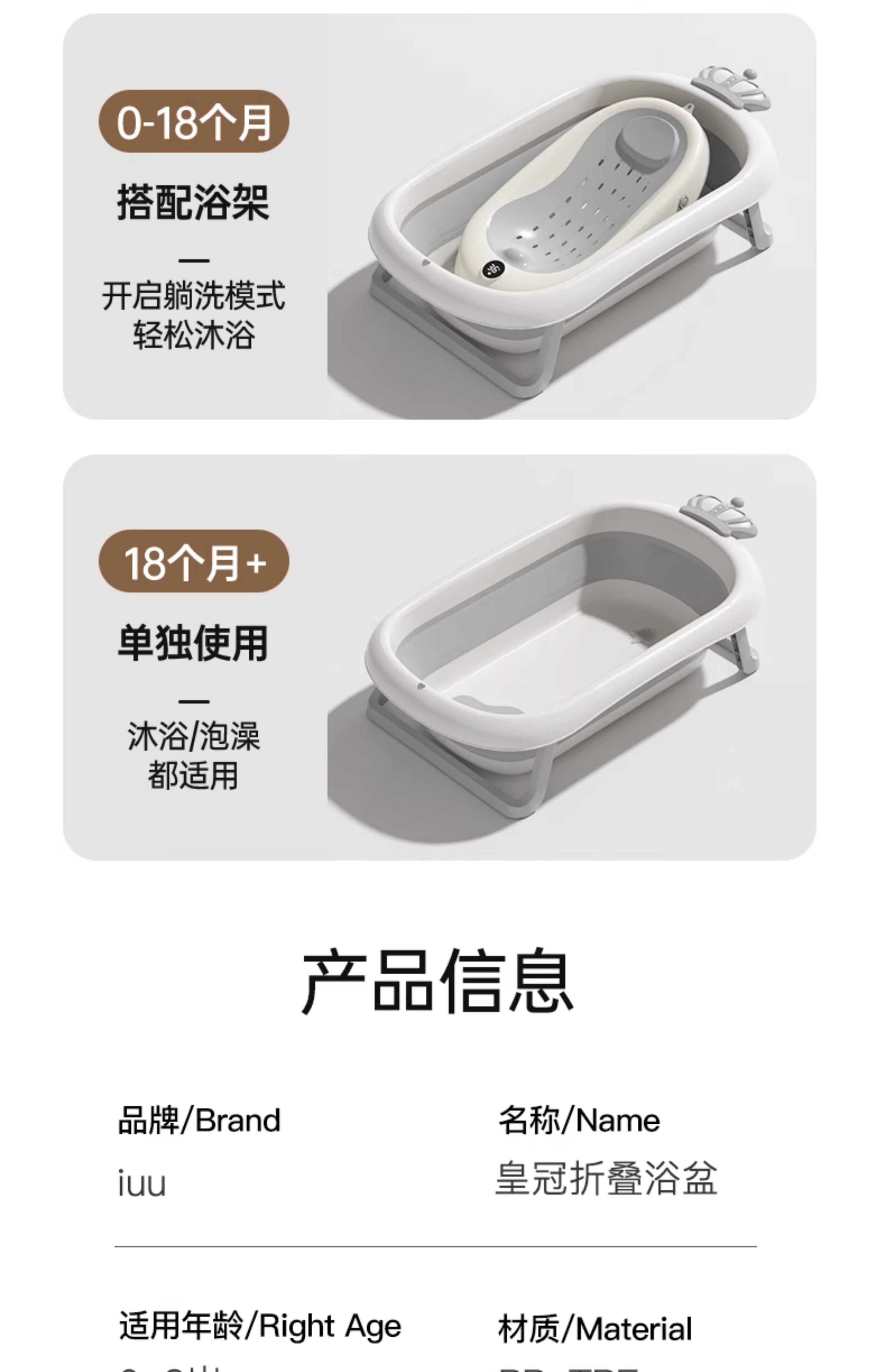 IUU婴儿洗澡盆宝宝浴盆幼儿坐躺折叠大号浴桶家用新生儿童用品