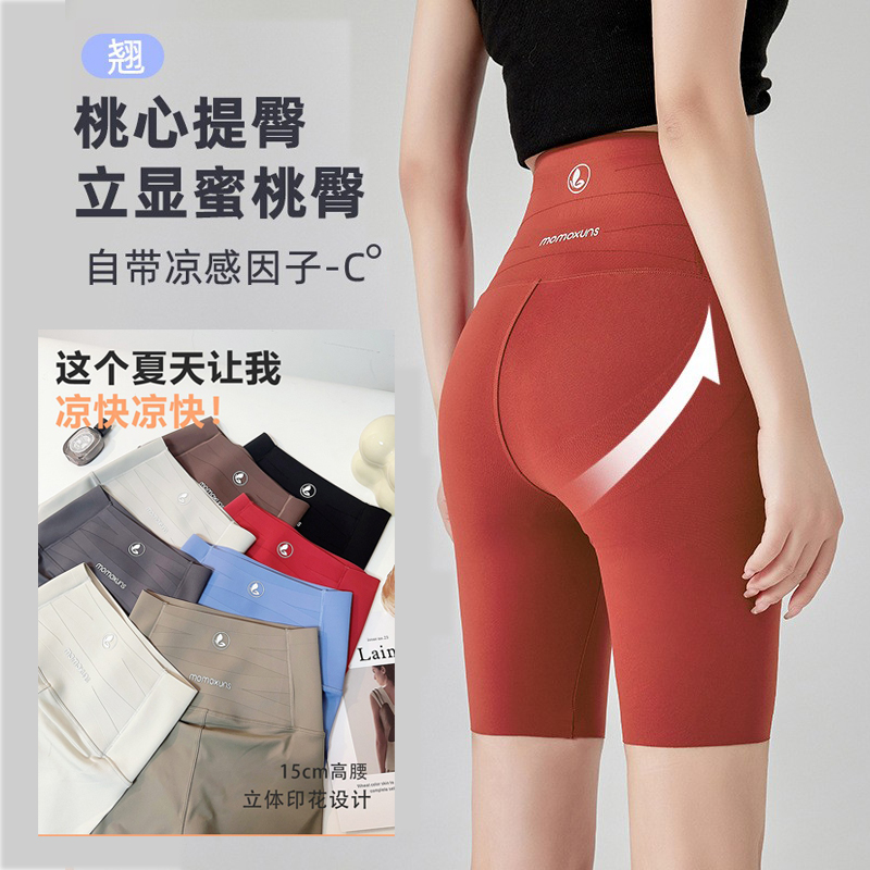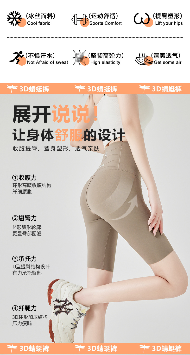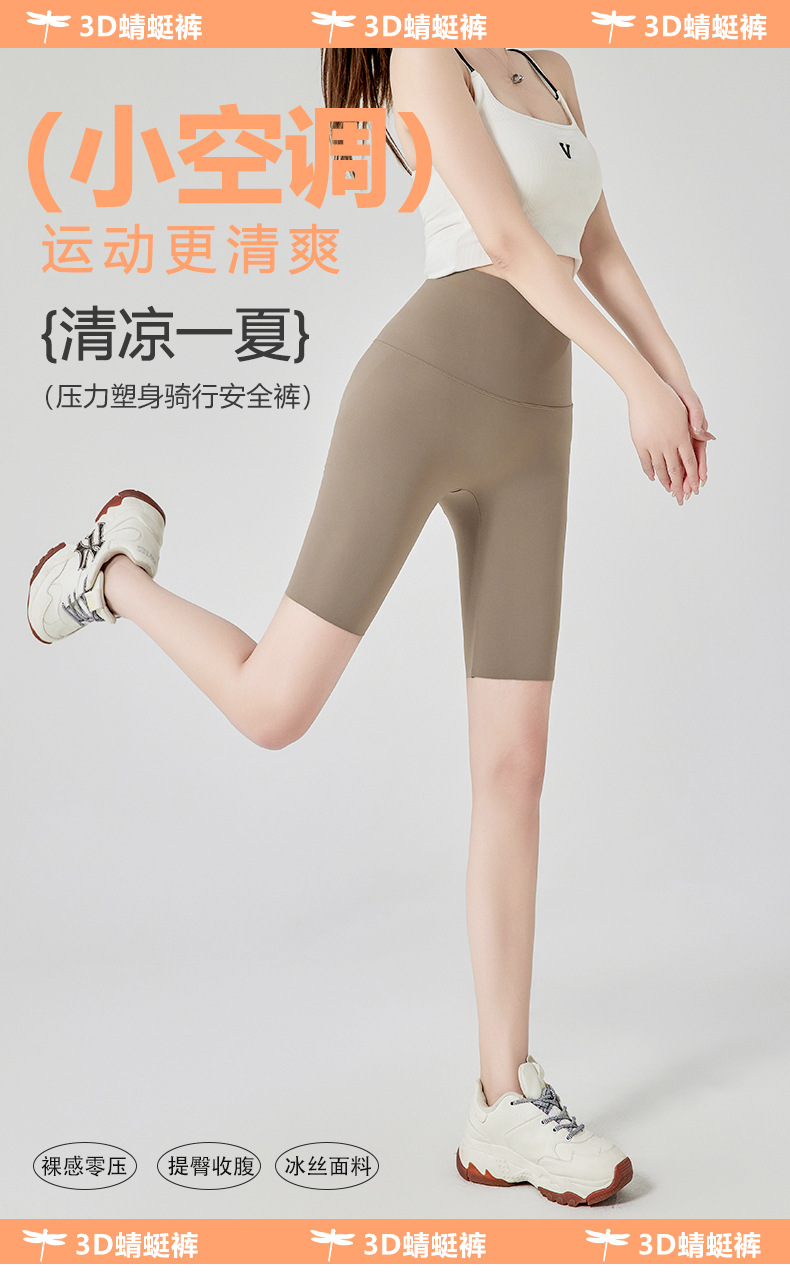 健身瑜伽短裤蜜桃臀动感单车骑行裤女款速干高弹训练裤3D蜻蜓裤