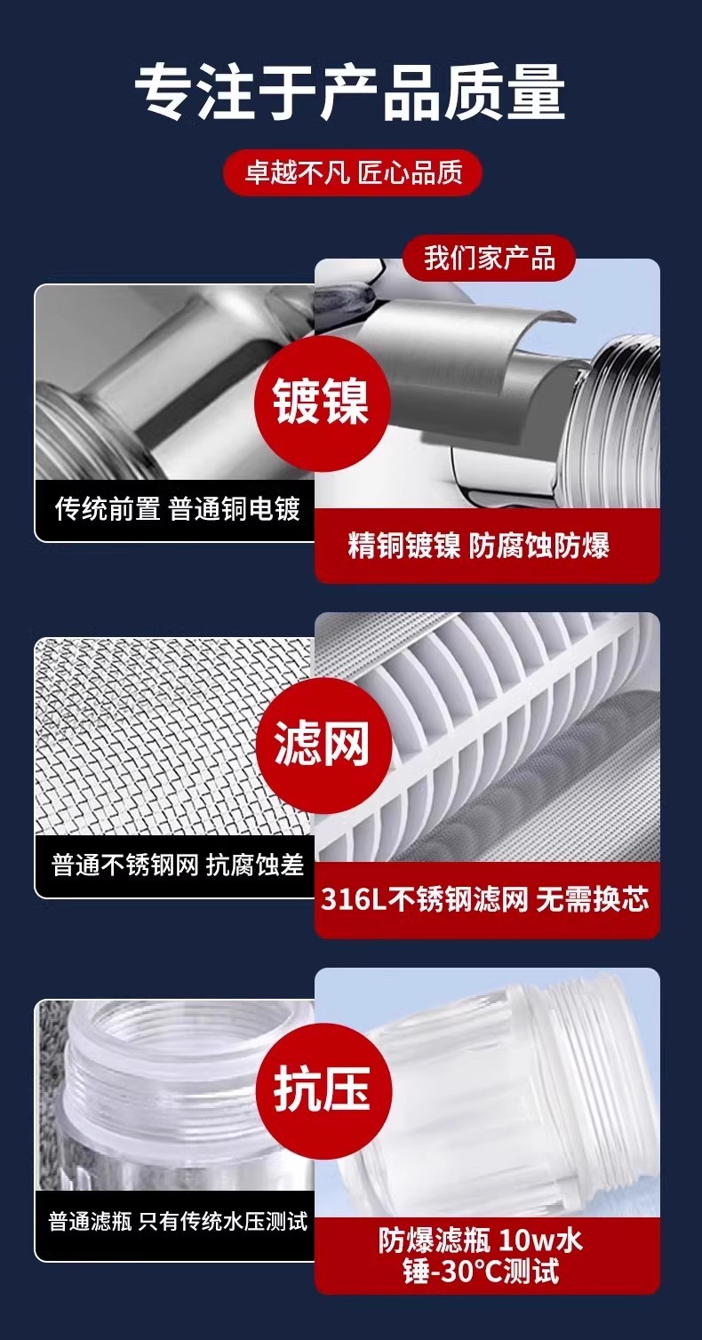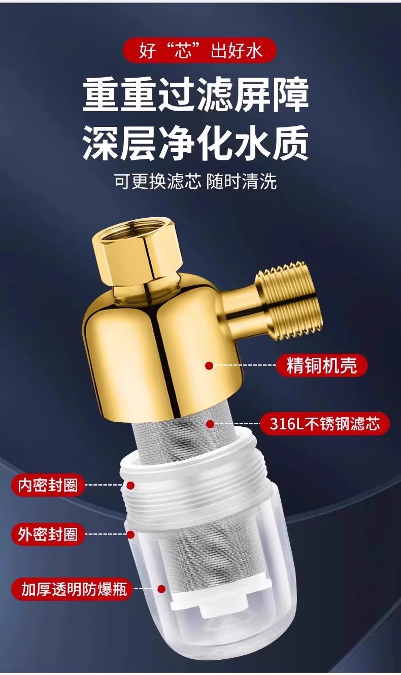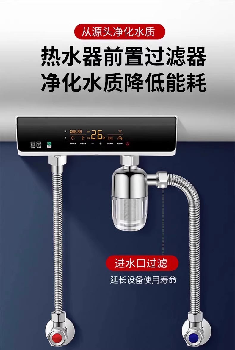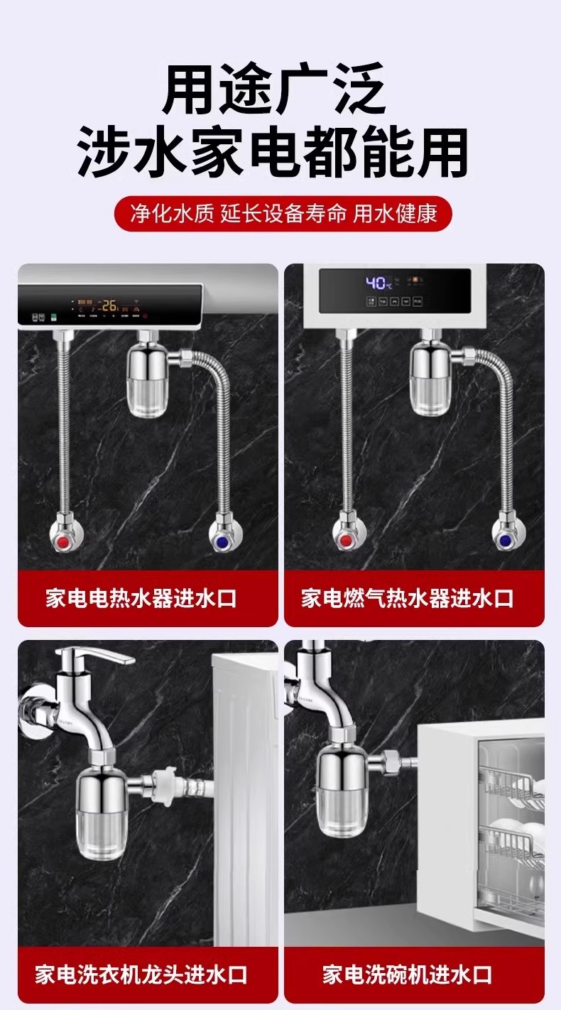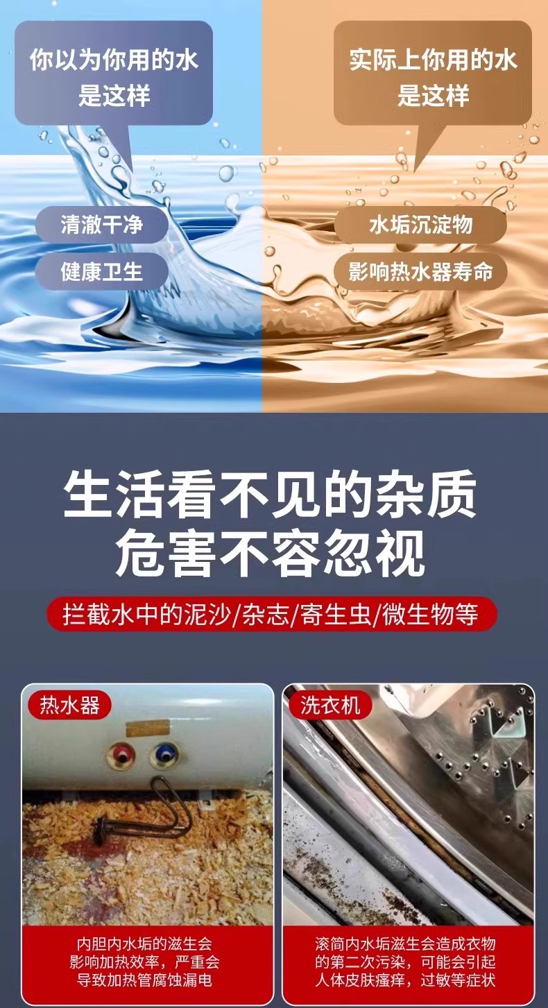 电热水器前置过滤器家用自来水免换滤芯进水口通用专用阻垢净水器