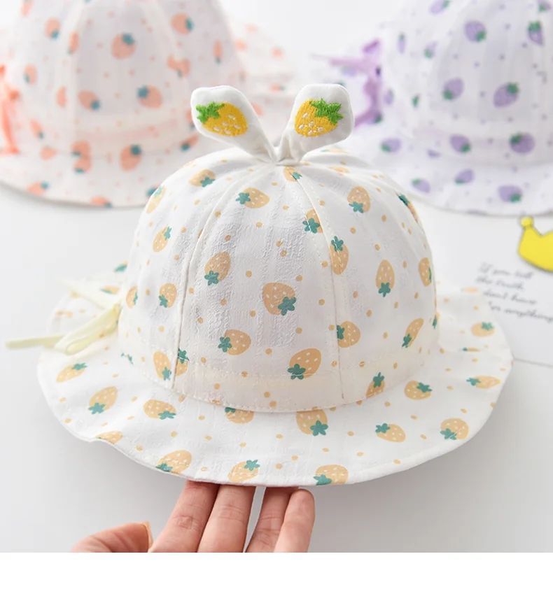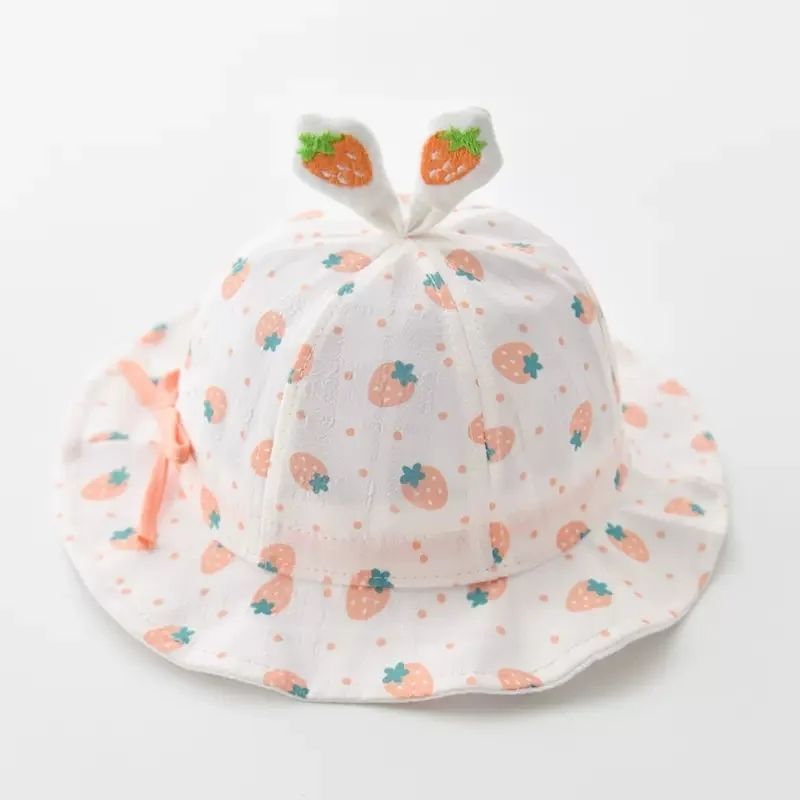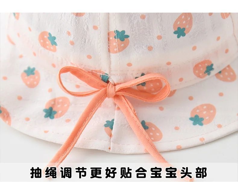 宝宝帽子春秋薄款婴儿渔夫帽抽绳可调节夏季可爱女宝宝防晒太阳帽