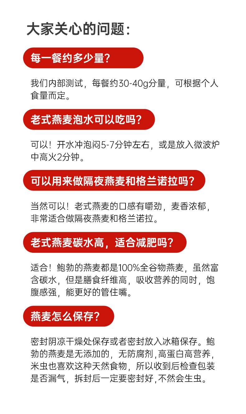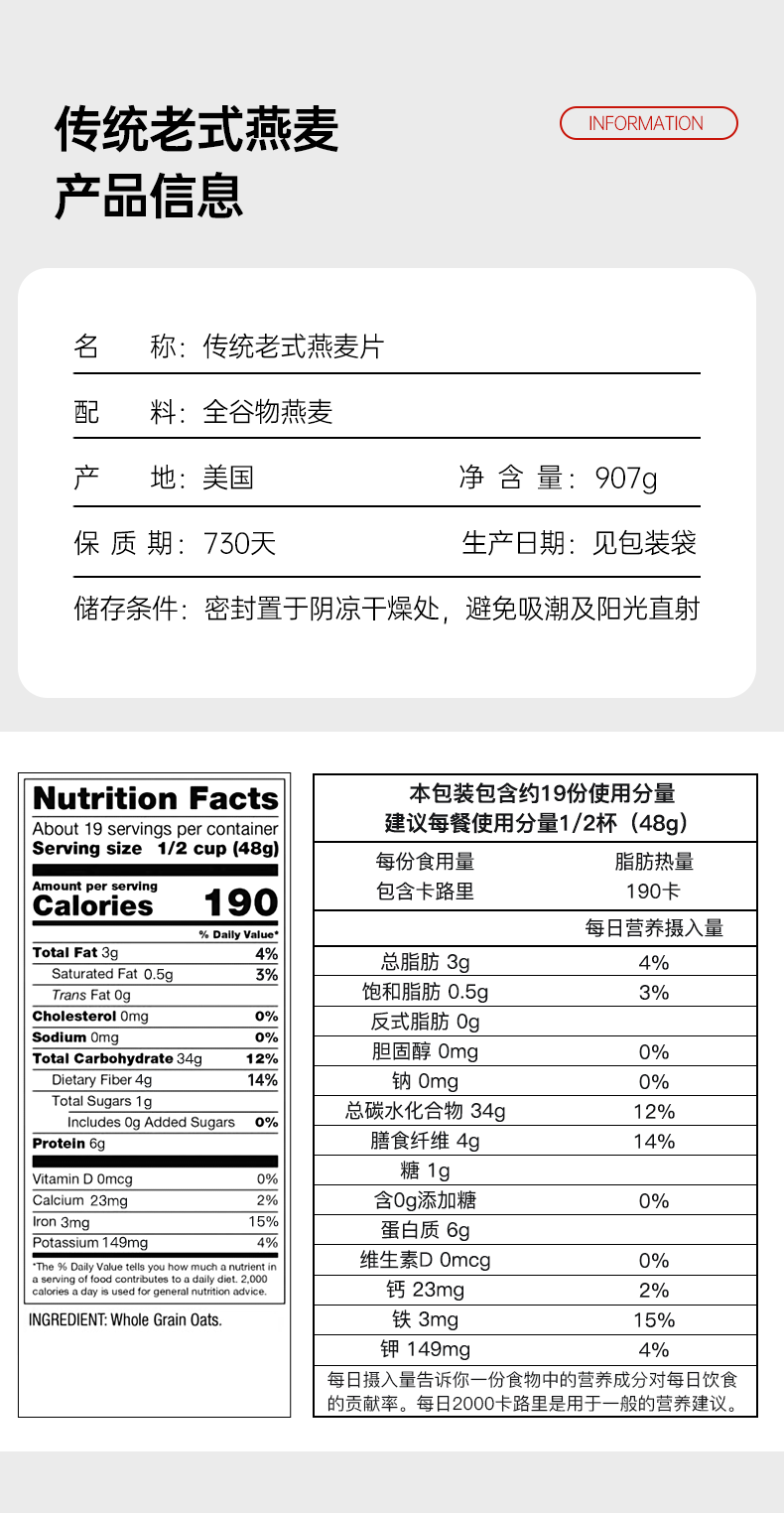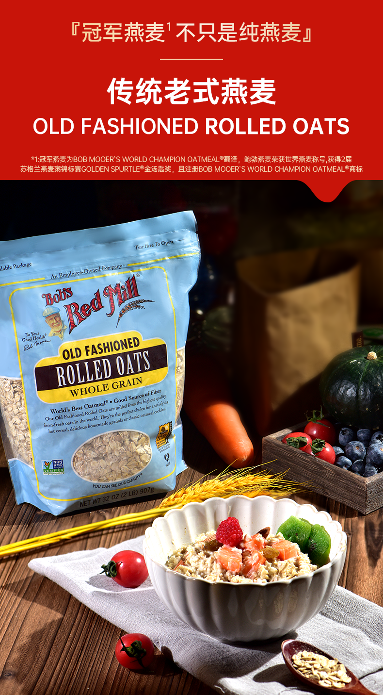 Bob's Red Mill/鲍勃红磨坊传统老式燕麦片营养健身代餐冲饮