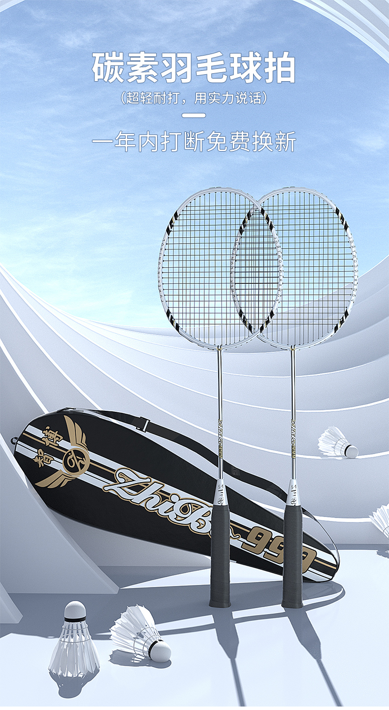 川崎羽毛球拍正品旗舰店全碳素纤维专业初学者进攻型超轻耐用双拍