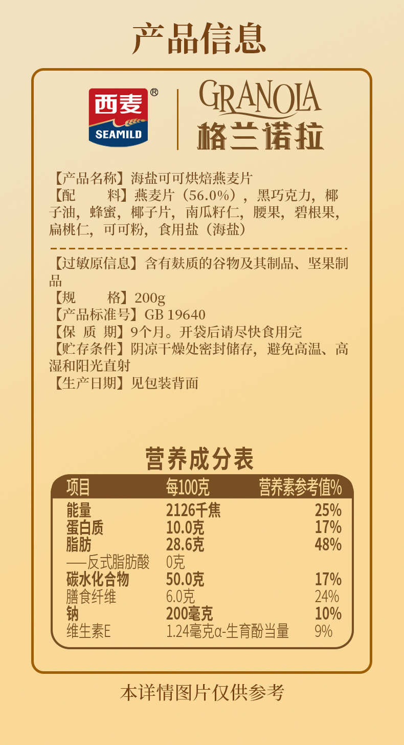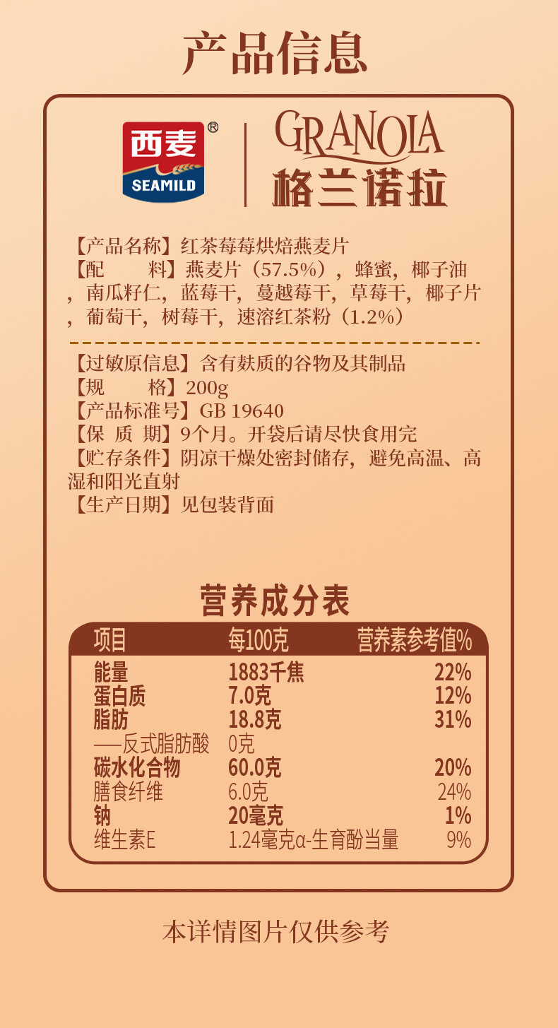 西麦格兰诺拉海盐可可红茶莓莓烘焙燕麦片200g酸奶碗配料即食零食