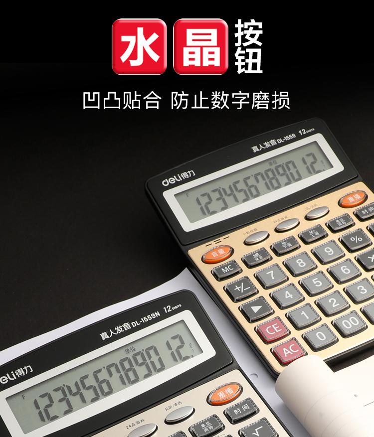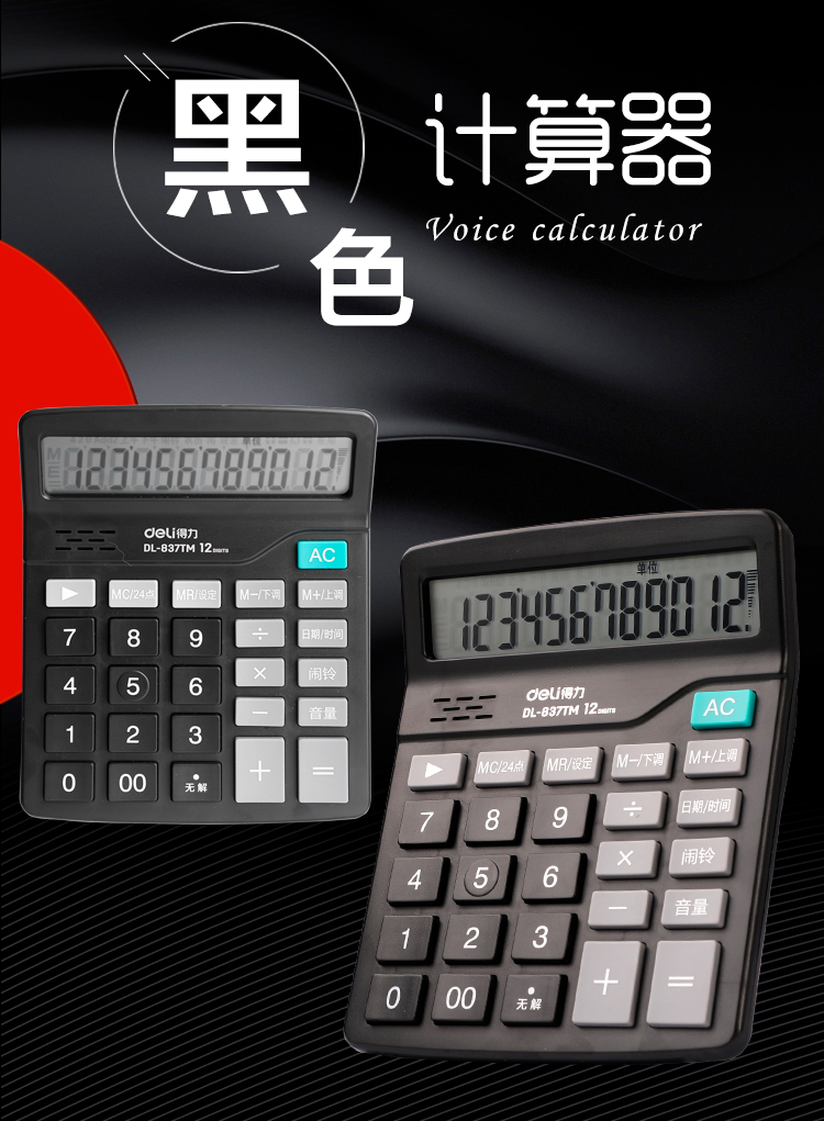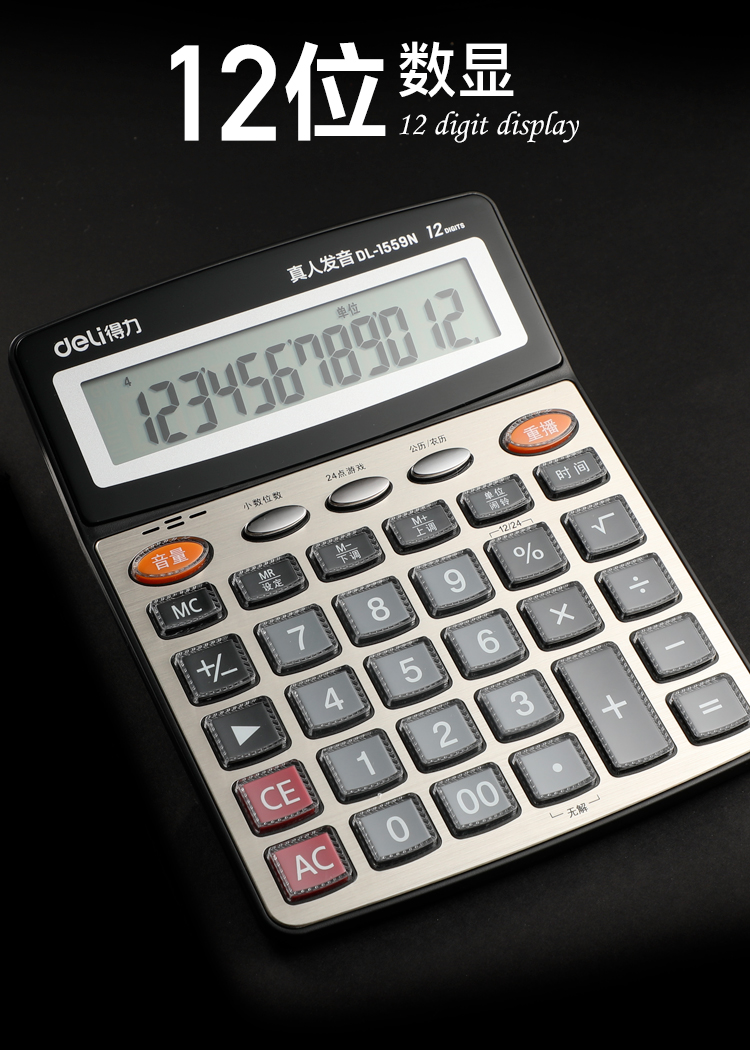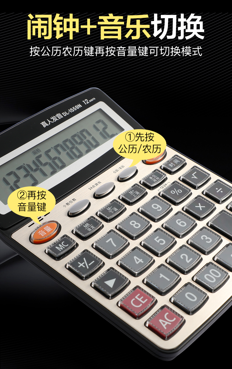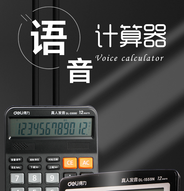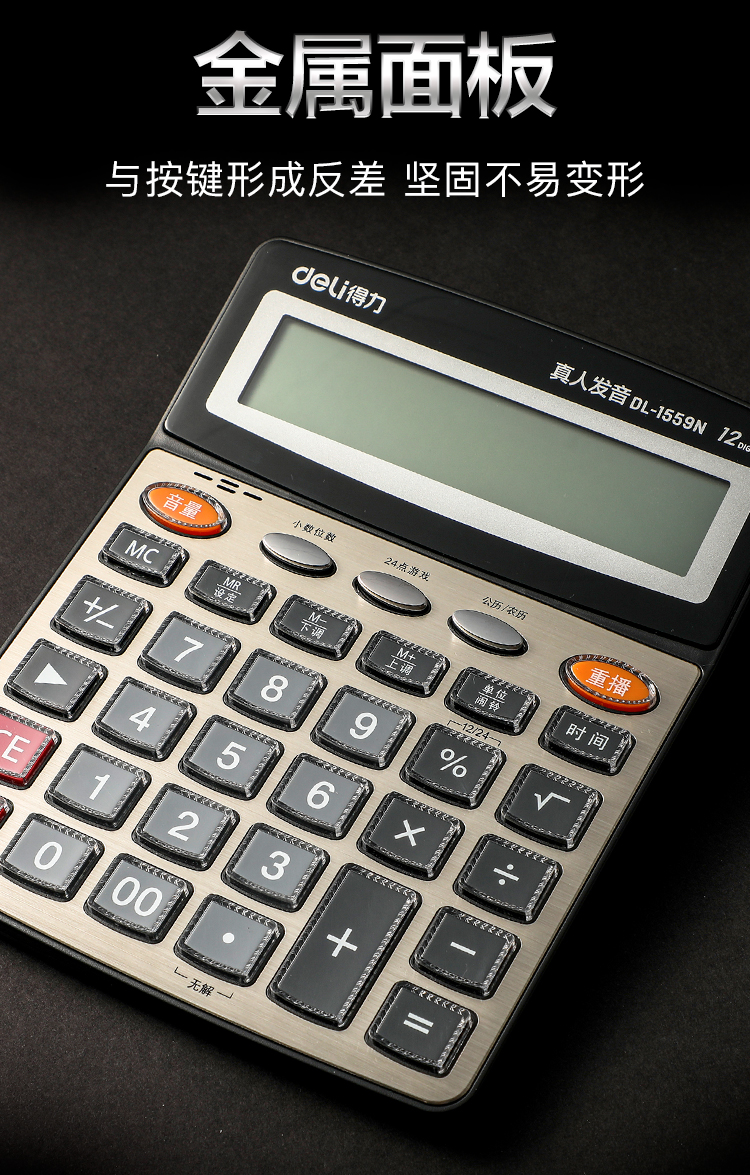得力语音计算器会计专用计算机器办公用大号带语音电子多功能财务真人发音卖菜店铺用大屏大按键商务计算机