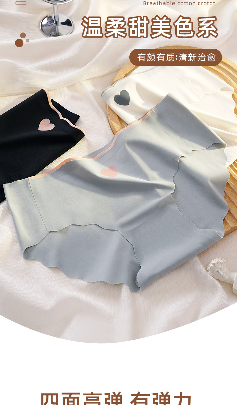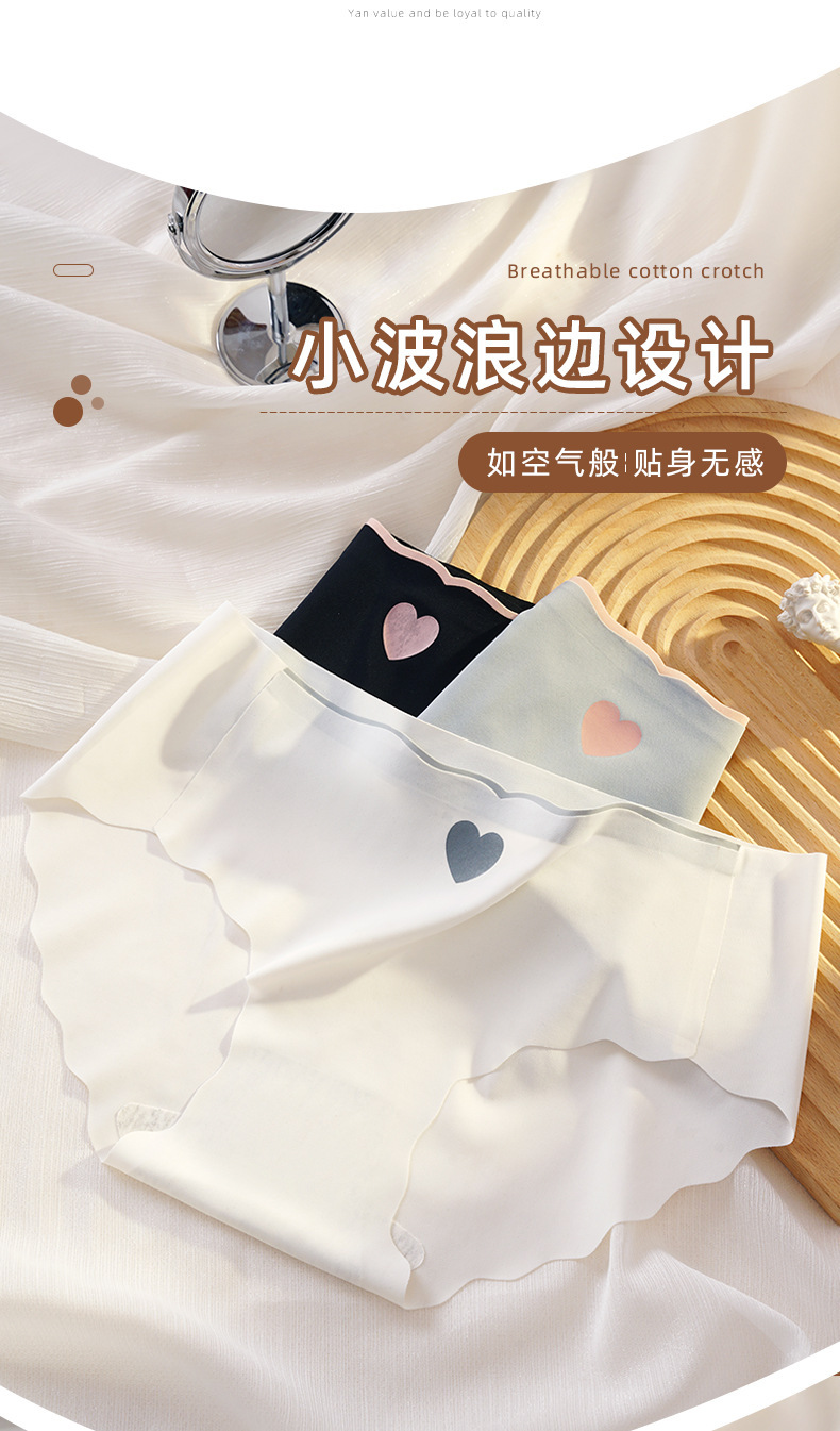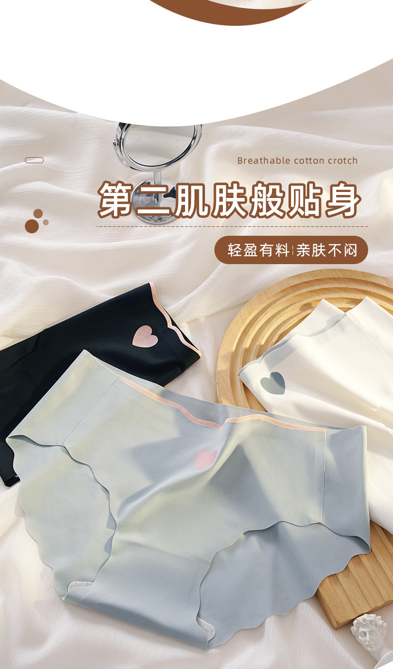 日系少女冰丝爱心内裤女薄款中腰大码透气纯棉裆无痕性感内裤