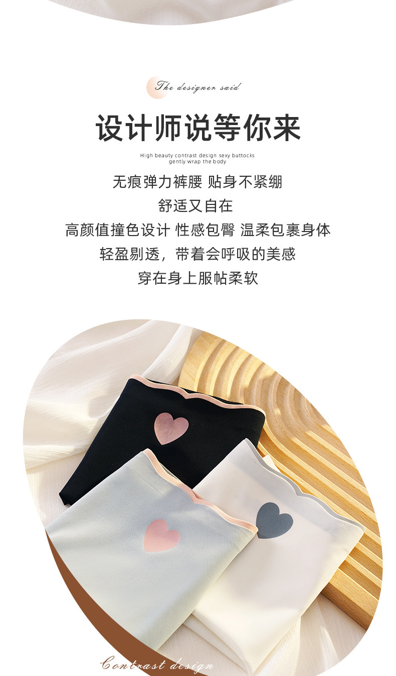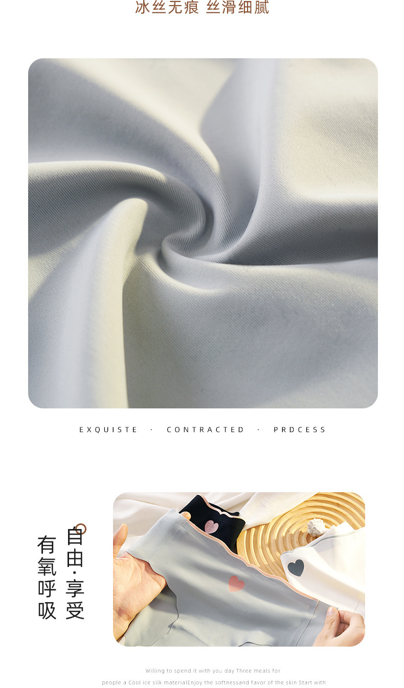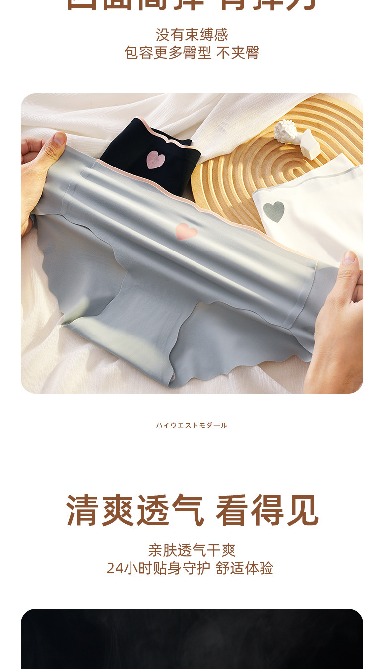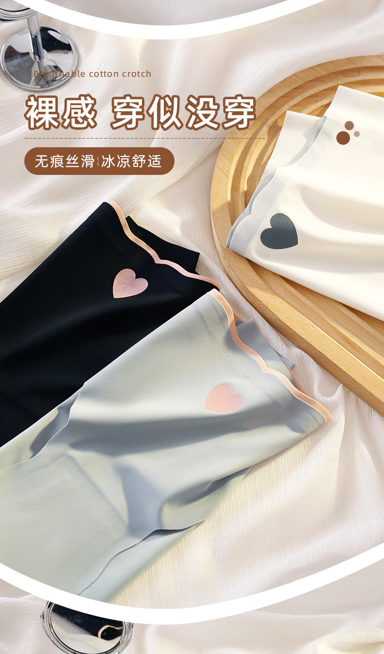 日系少女冰丝爱心内裤女薄款中腰大码透气纯棉裆无痕性感内裤