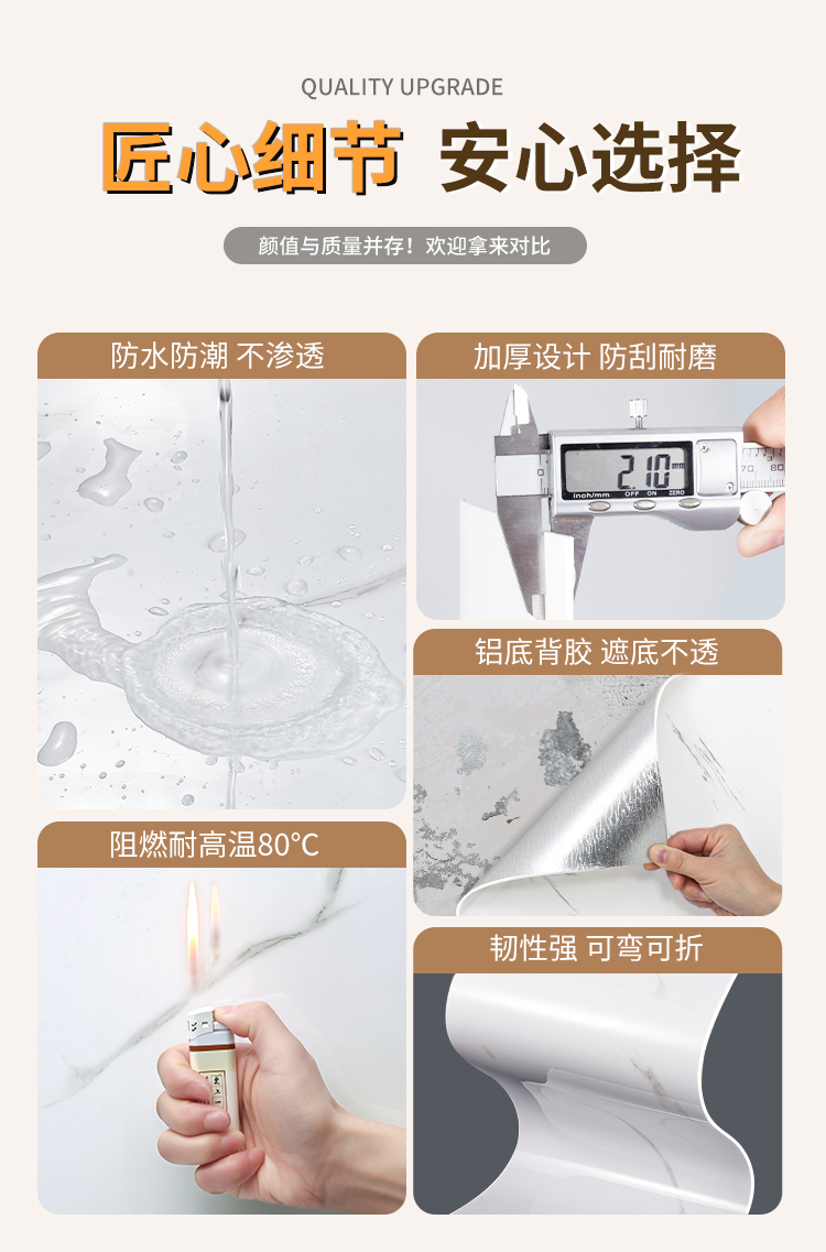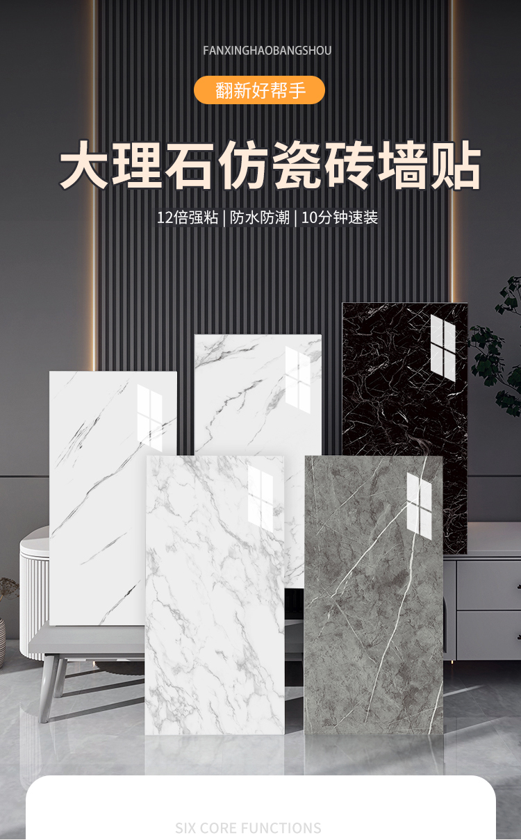 仿瓷砖铝塑板墙贴自粘防水防潮卫生间墙面装饰遮丑墙板大理石贴纸