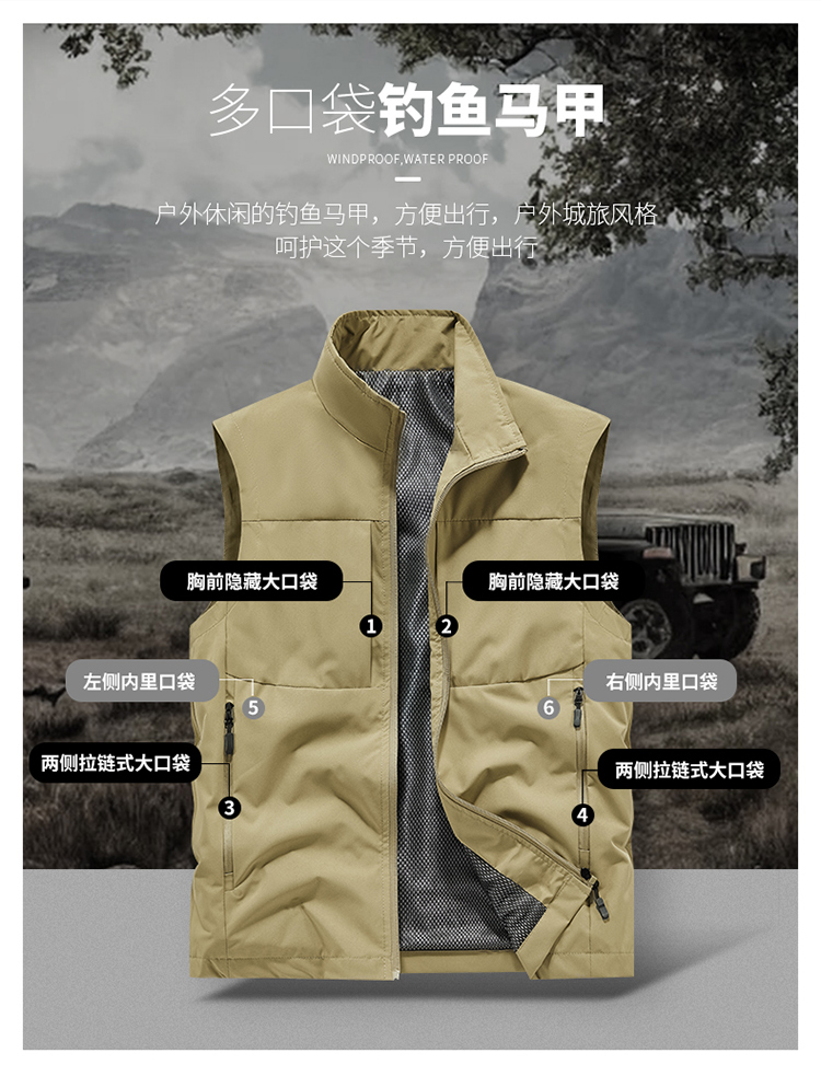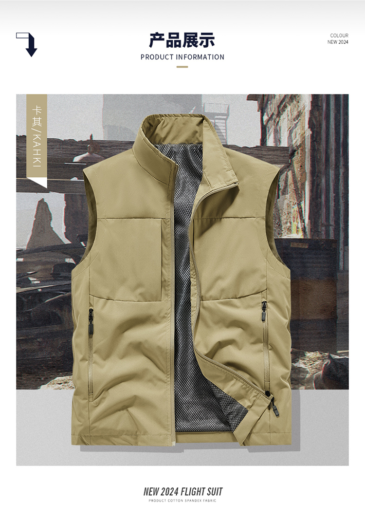马甲男春秋户外工装摄影宽松背心钓鱼多口袋速干坎肩马夹男装外套