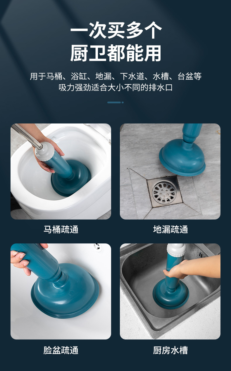 通马桶疏通器皮搋子厕所堵塞神器塞管道强力吸捅下水道的工具抽子