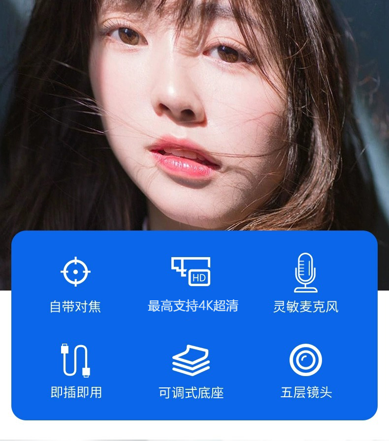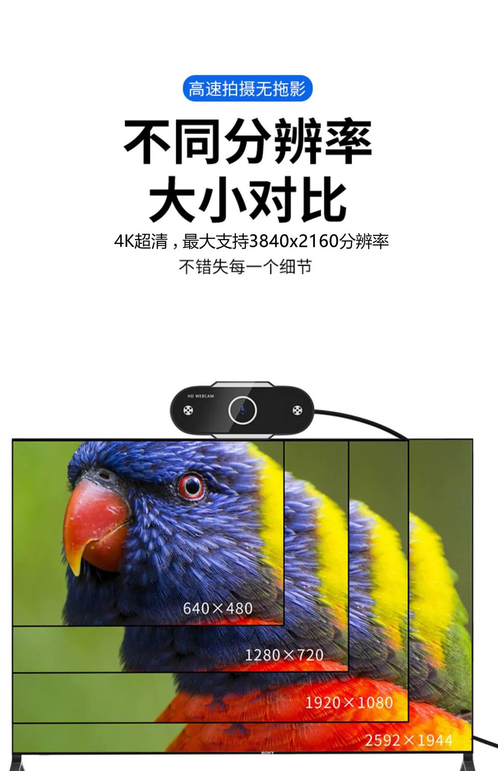直播超高清摄像头USB外置台式4K带麦克风外接电脑考研专用笔记本