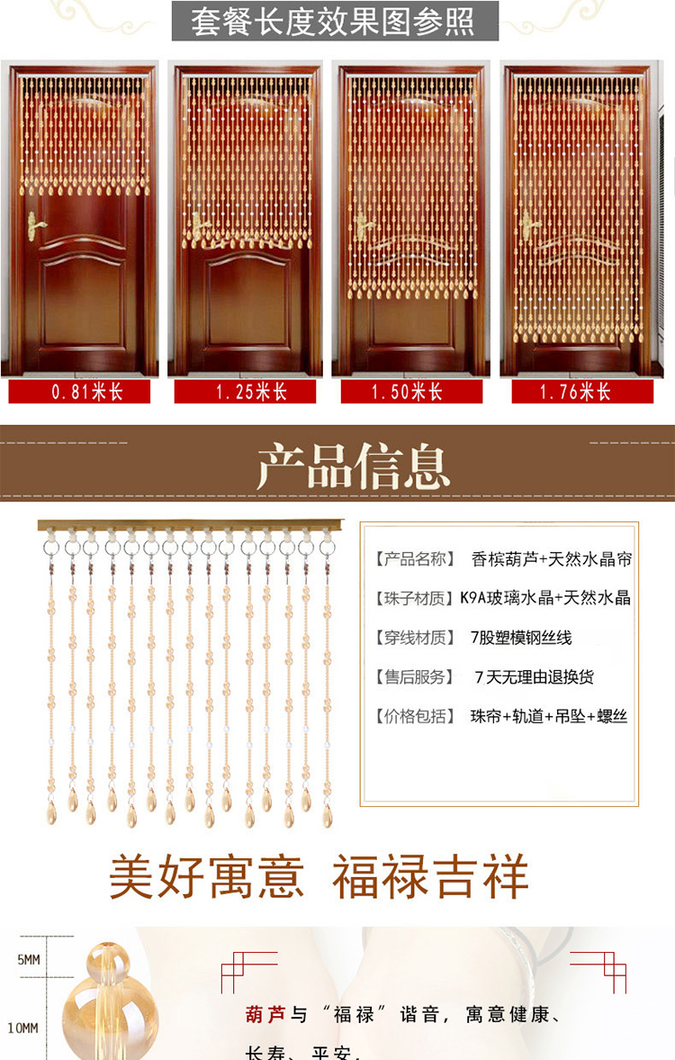 珠帘水晶隔断吊帘客厅玄关风水门帘子装饰屏风网红葫芦挂帘免打孔