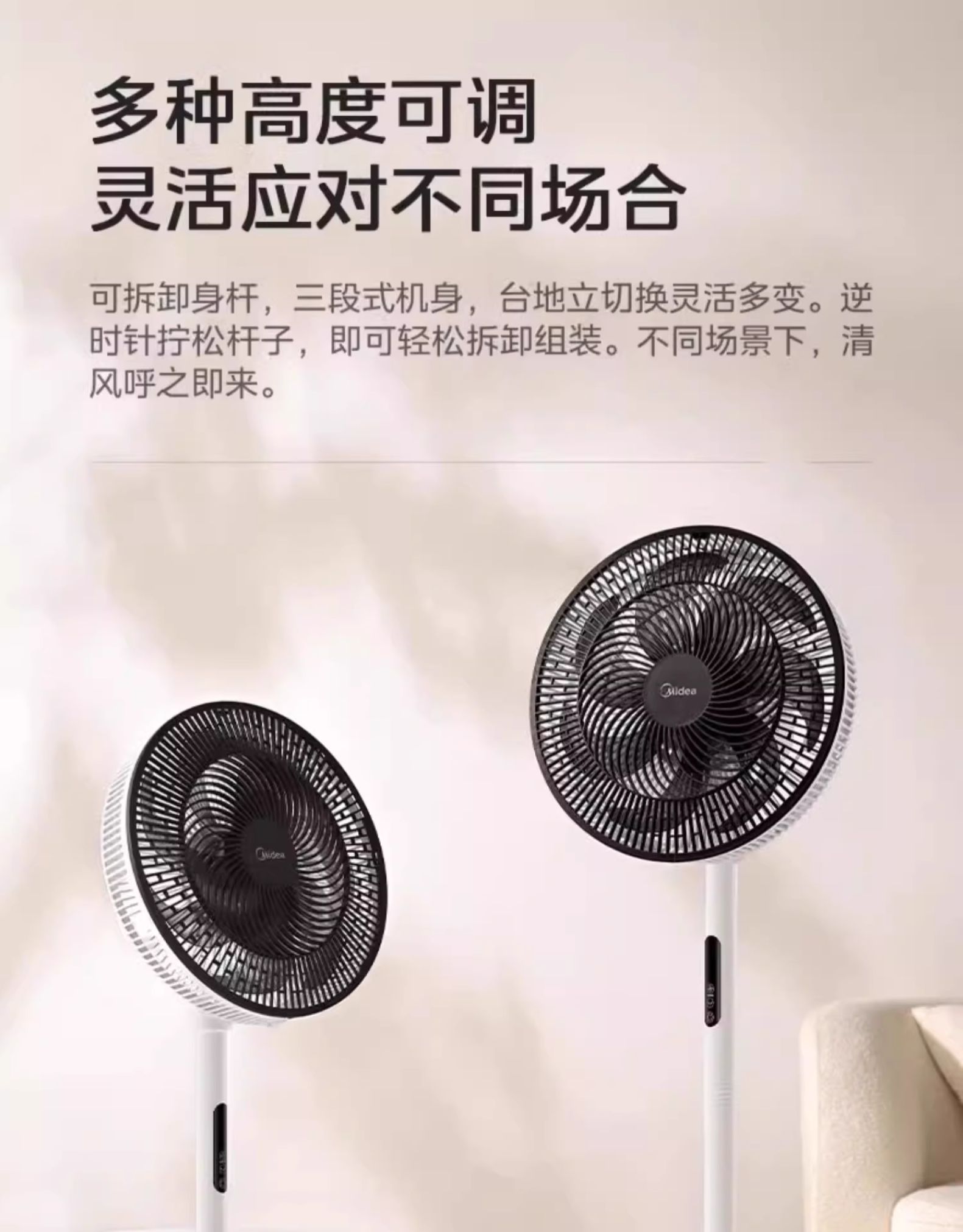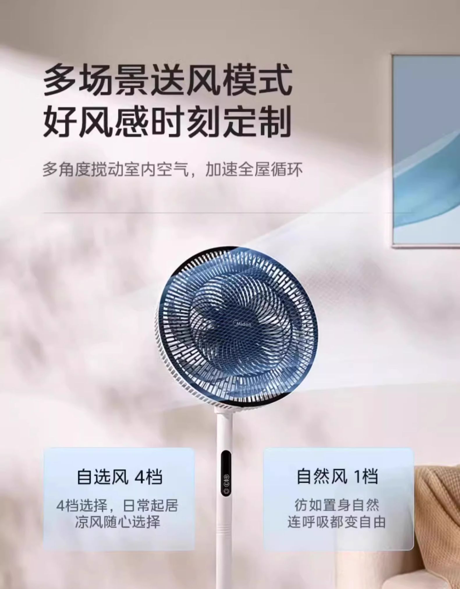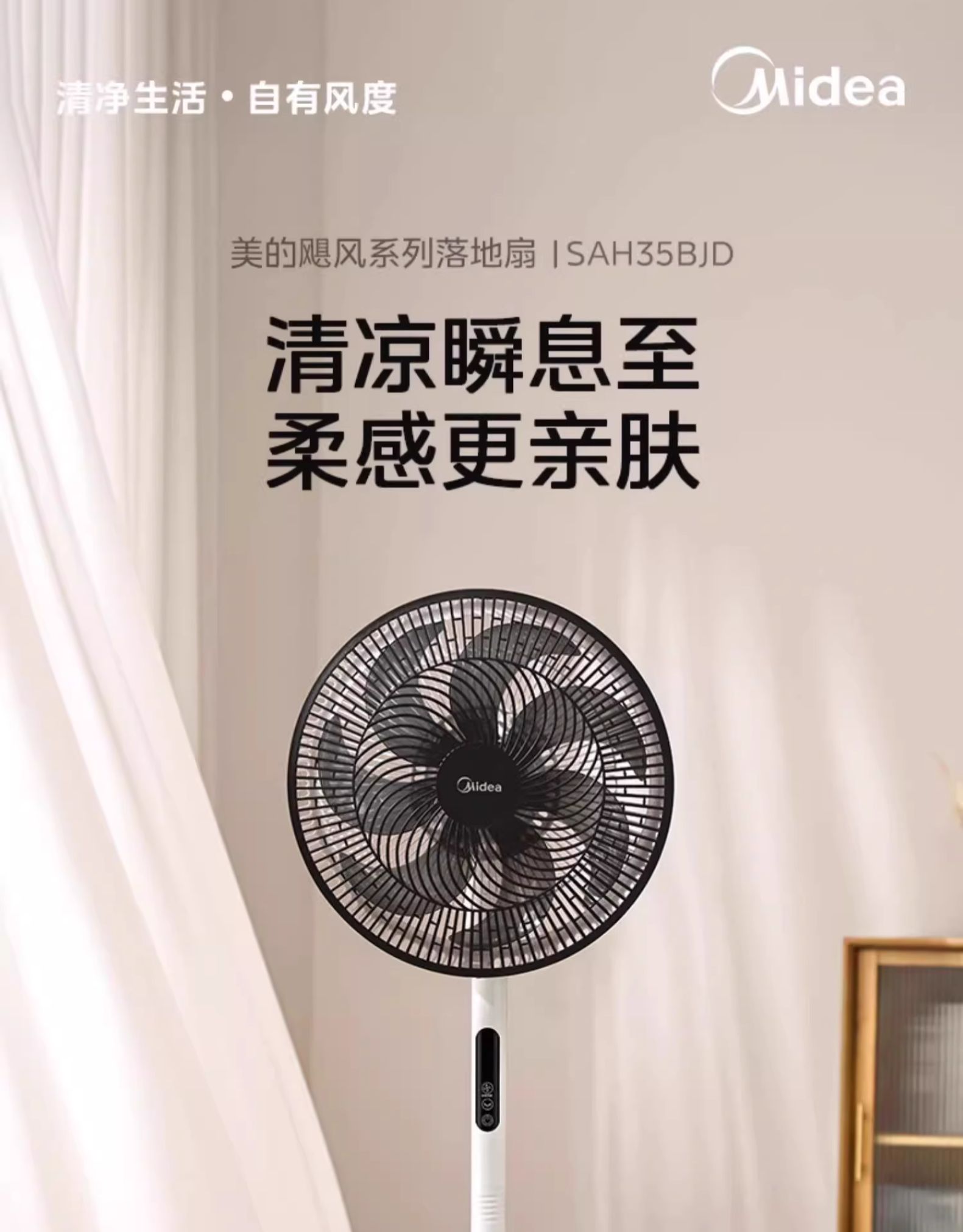 美的电风扇落地扇2025新款家用音静七叶遥控立式升降客厅卧室智能