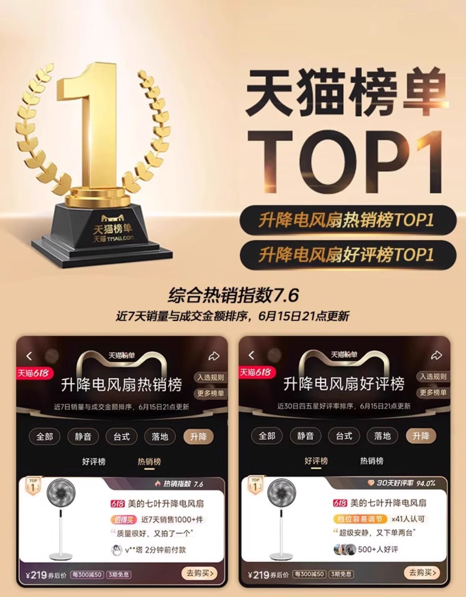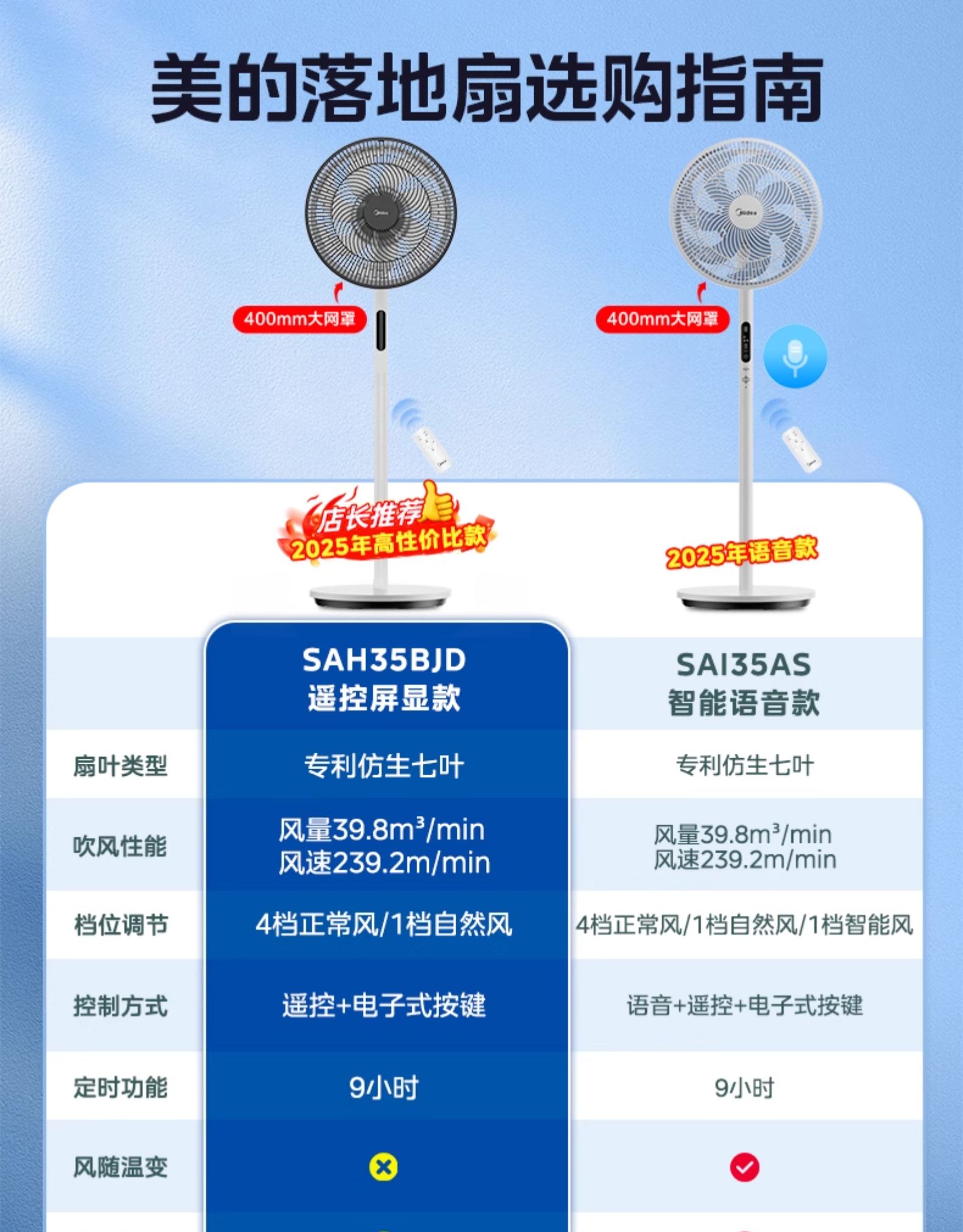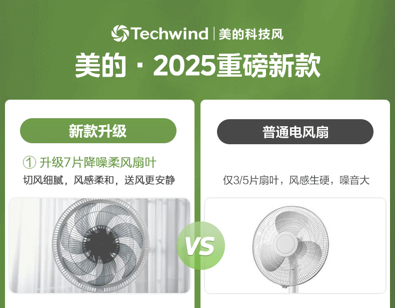 美的电风扇落地扇2025新款家用音静七叶遥控立式升降客厅卧室智能