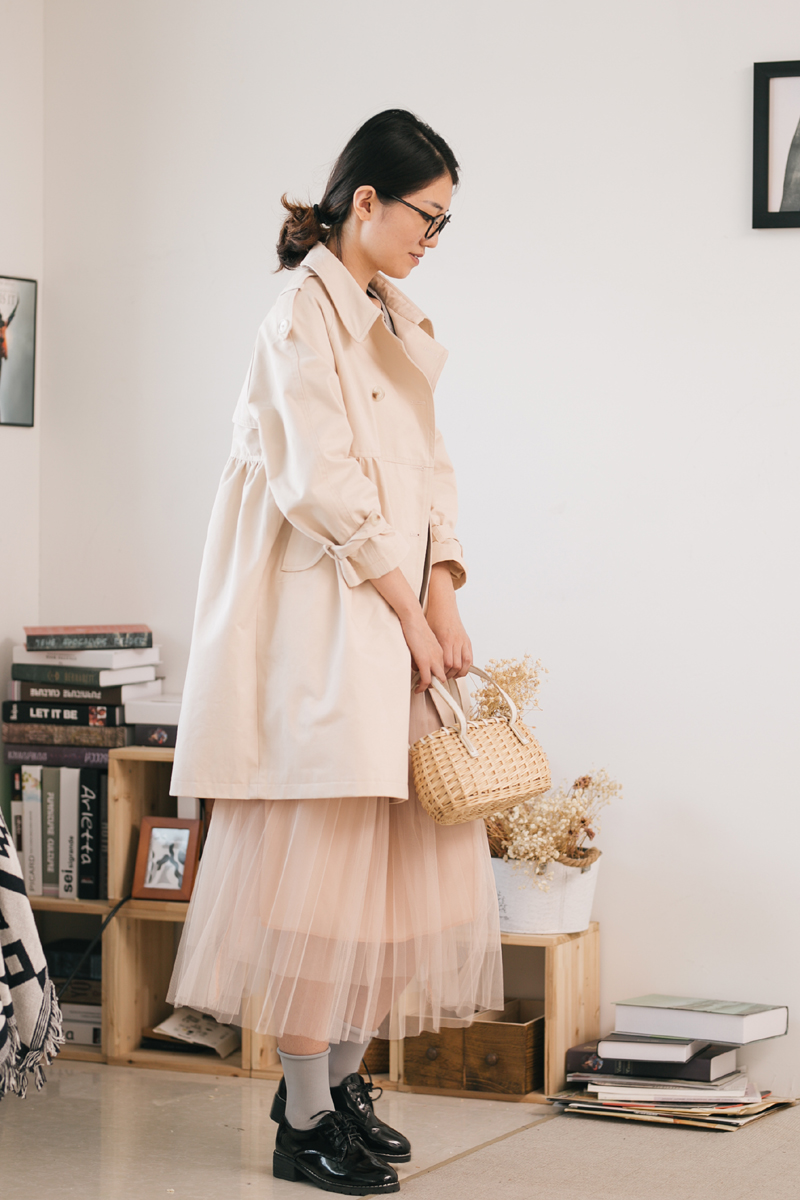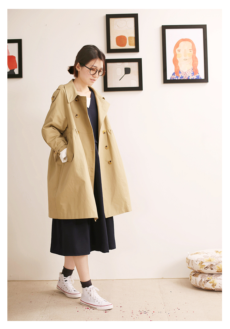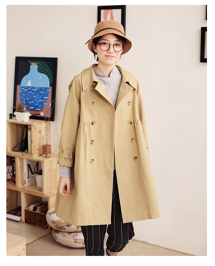 宽松全棉休闲气质风衣女中长款外套新款公主A字七分袖卡其色秋季