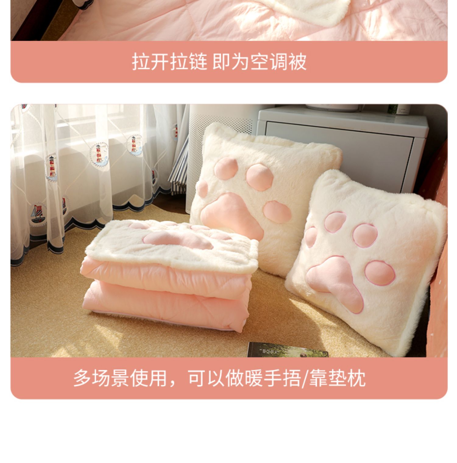 抱枕被子两用办公室折叠午睡枕头厚毯子二合一汽车用靠枕靠垫车载