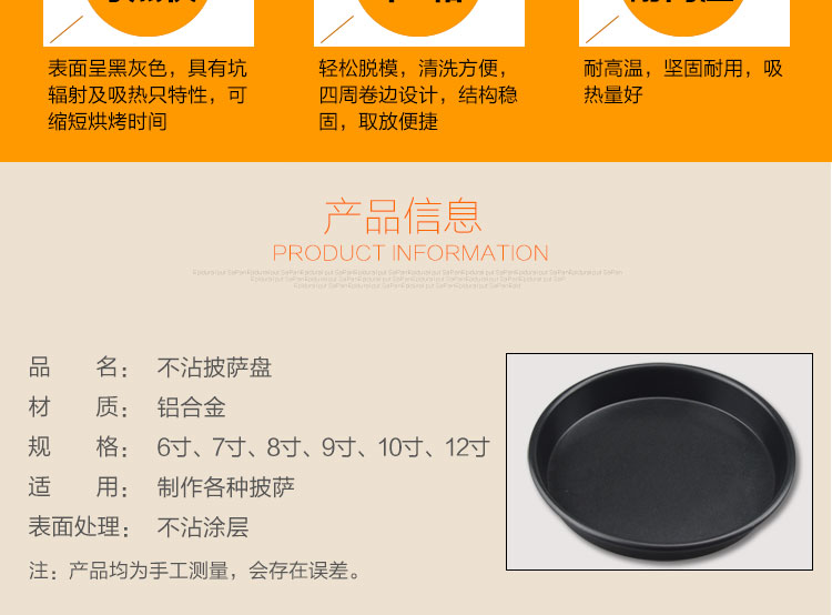 披萨盘饼底烤盘家用商用圆形烘焙烤箱6/7/8/9寸pizza披萨蛋糕模具