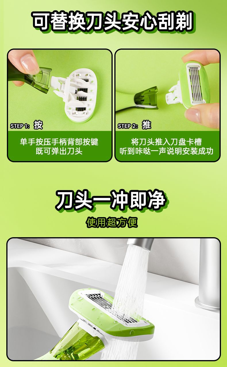 女士头脱毛器刮毛刀腋下脱毛刀小巧便携全身剃毛器除腿毛皂带皂头