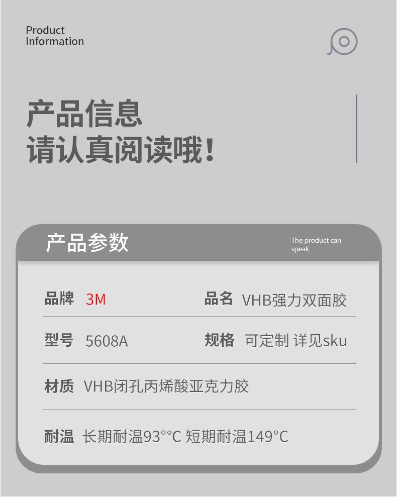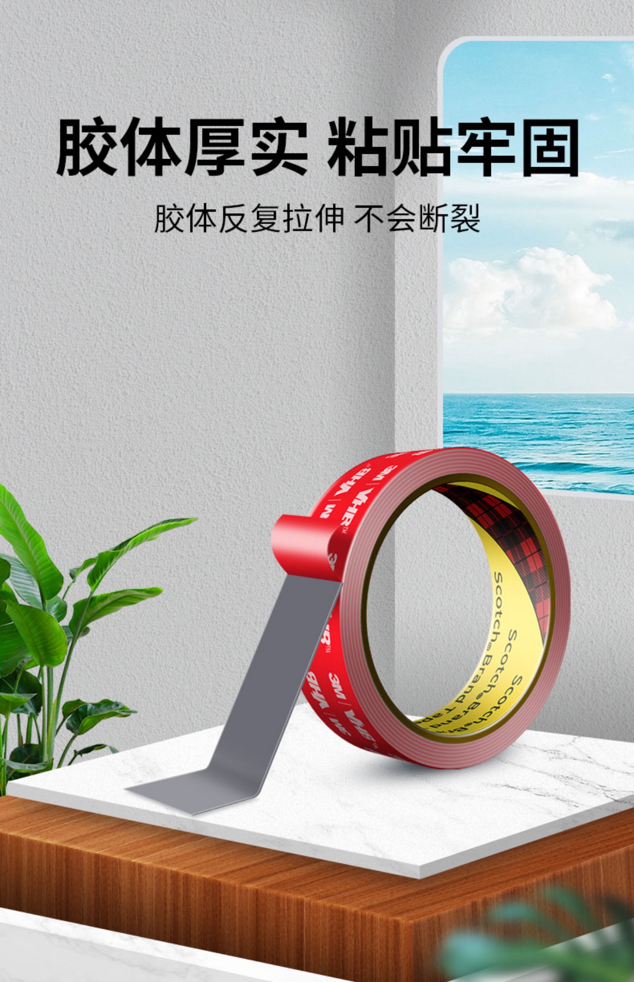3M5608强力高粘度双面胶亚克力板广告标识安装墙贴画牢固免钉胶带