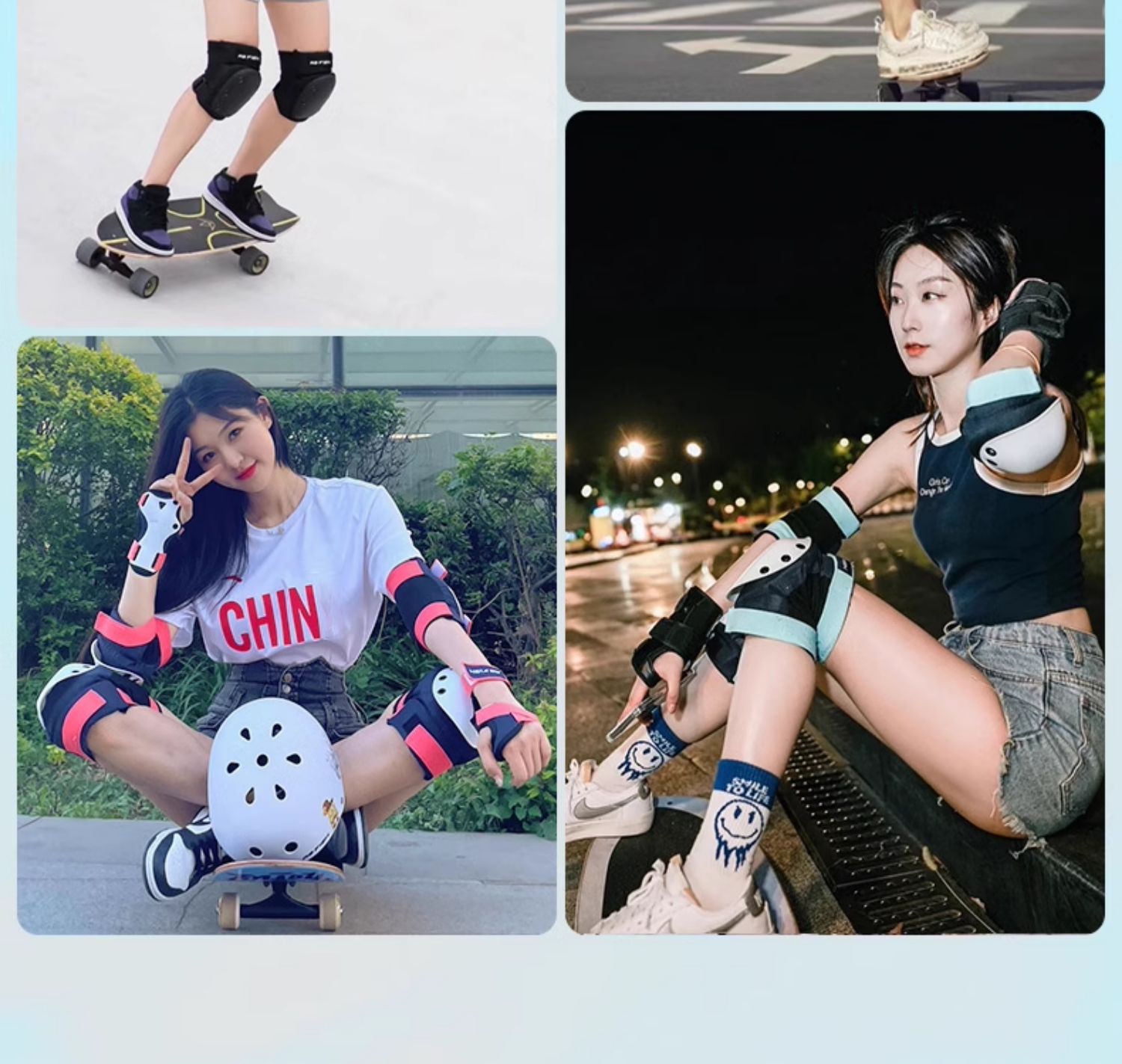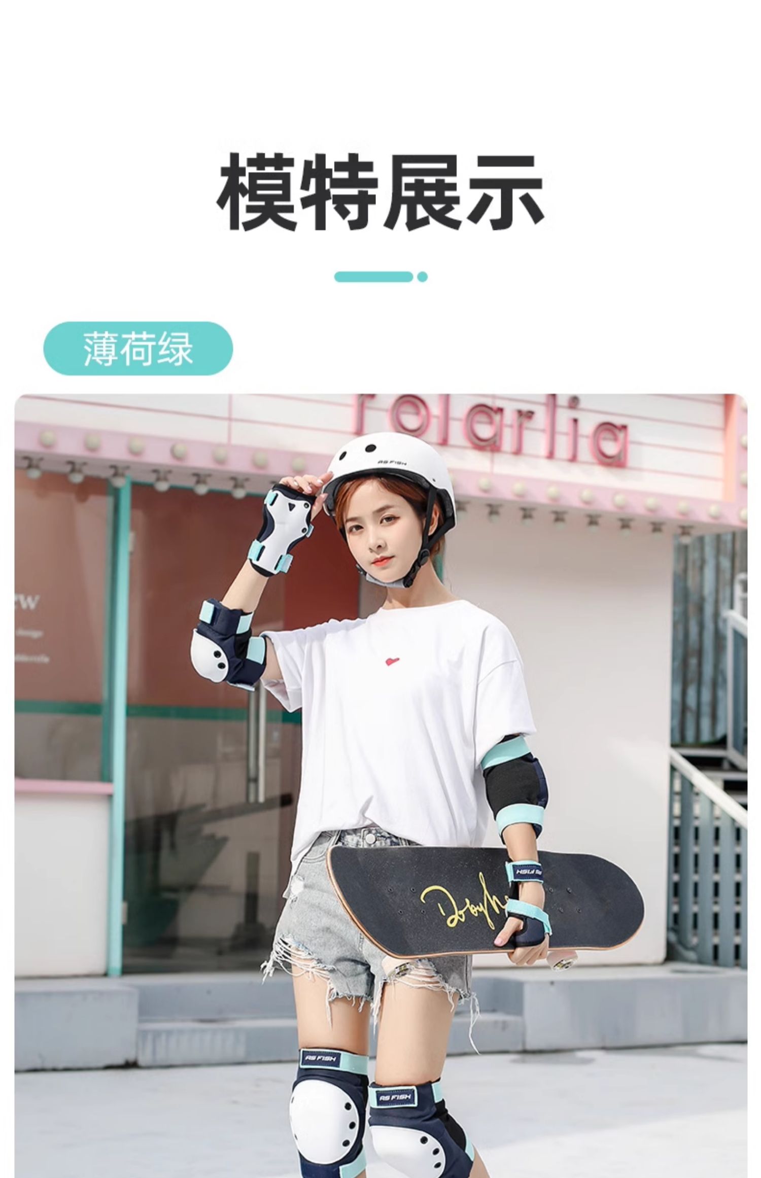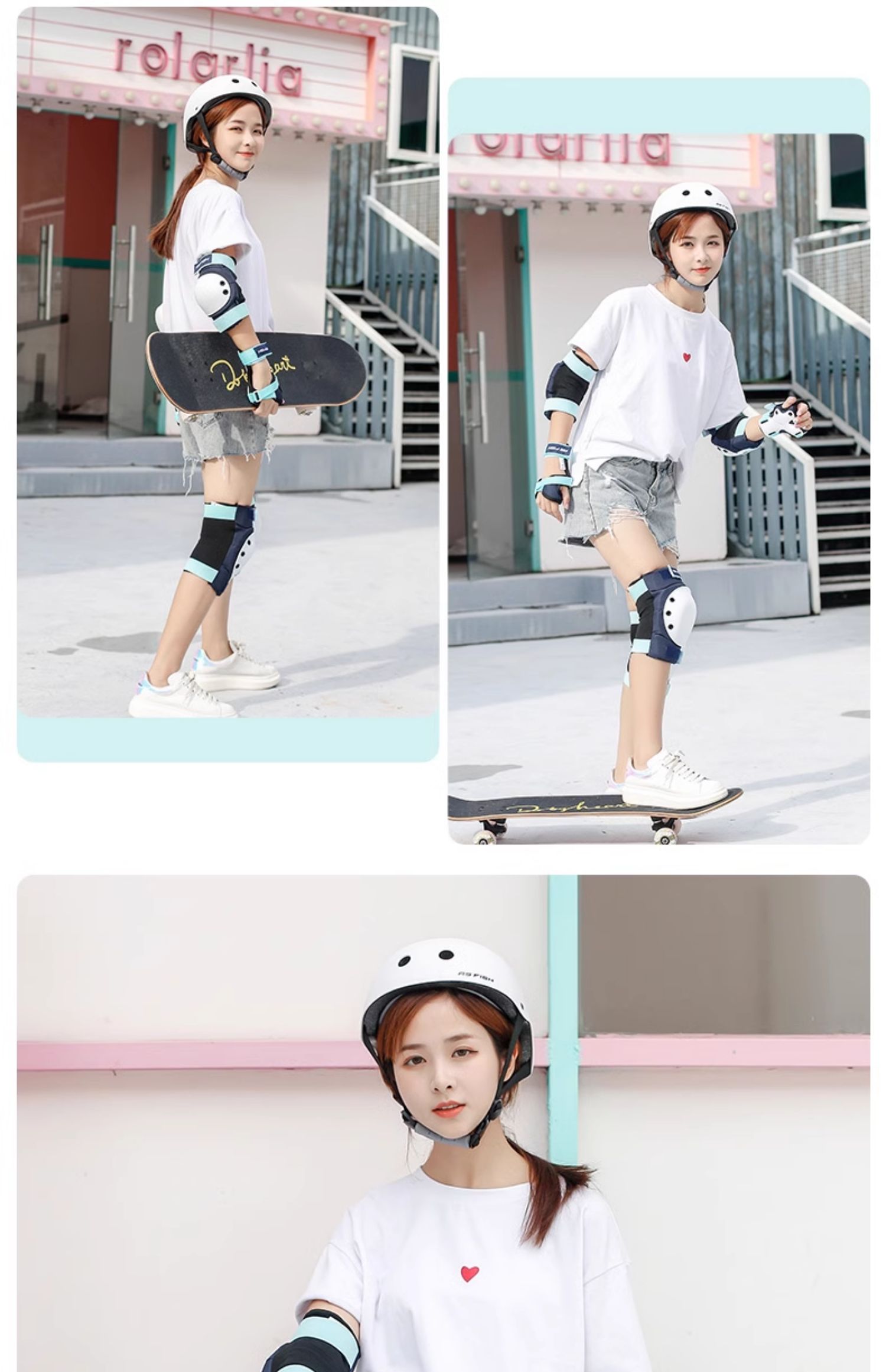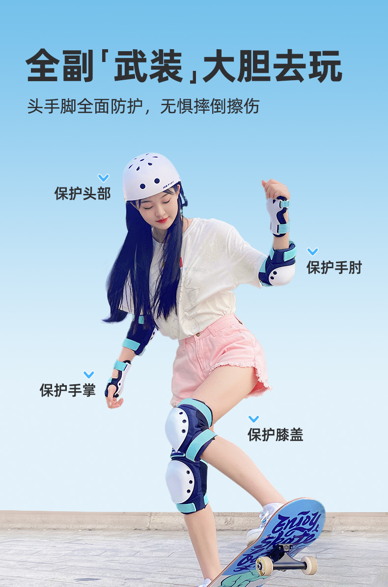 滑板护具成人女轮滑滑冰路冲自行车护膝头盔装备保护套装儿童防护