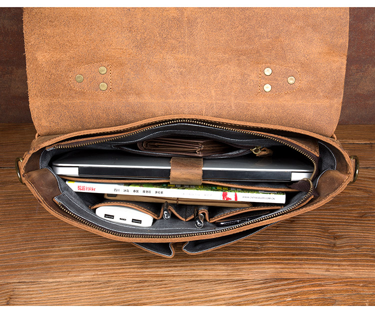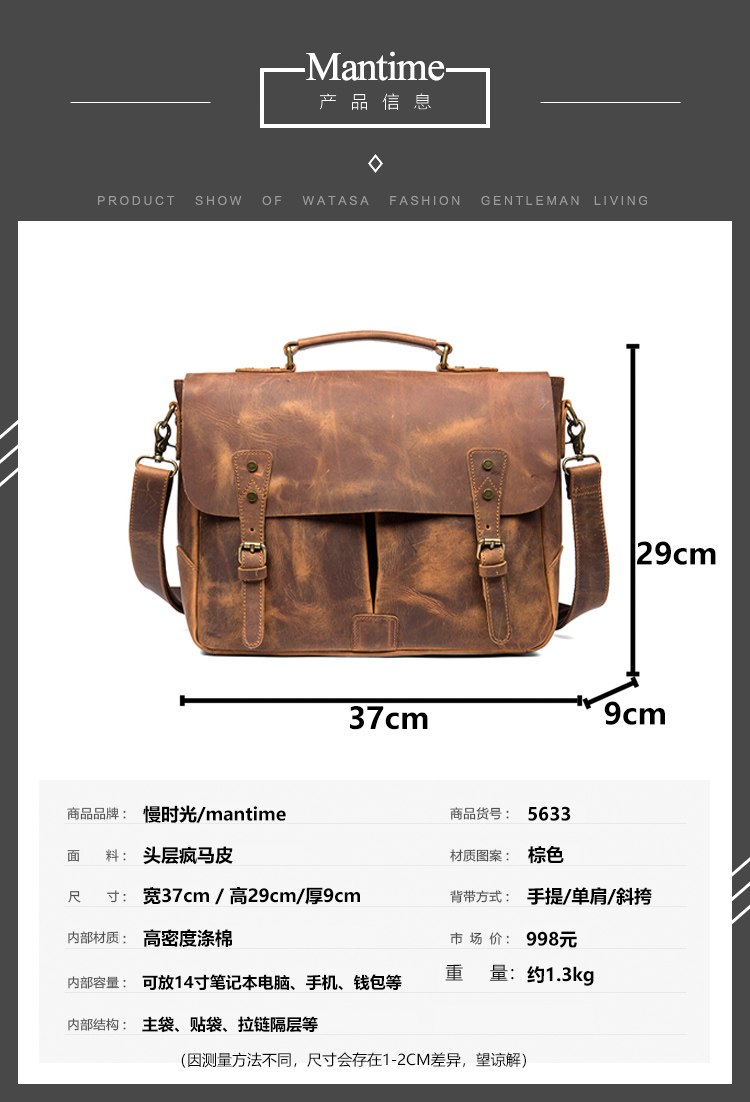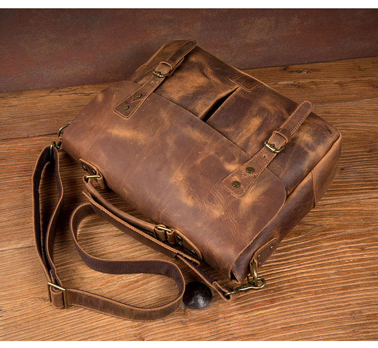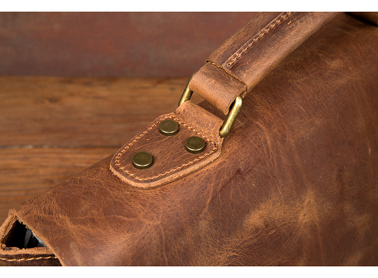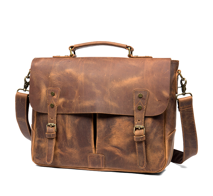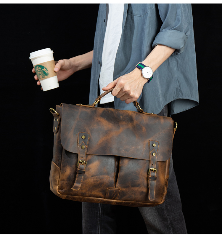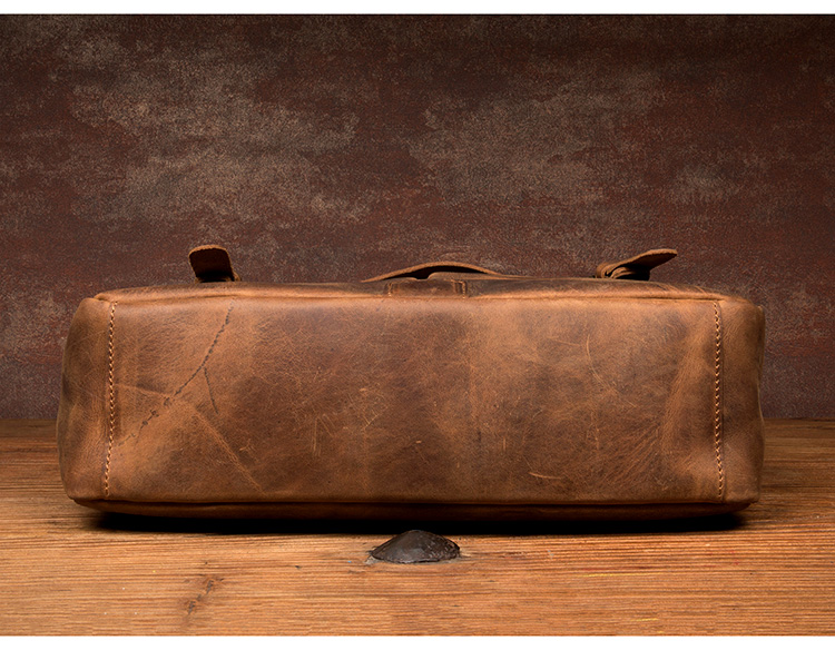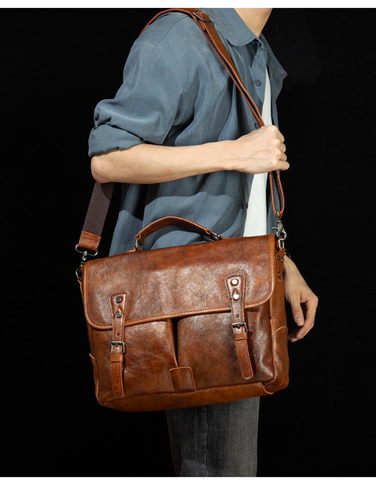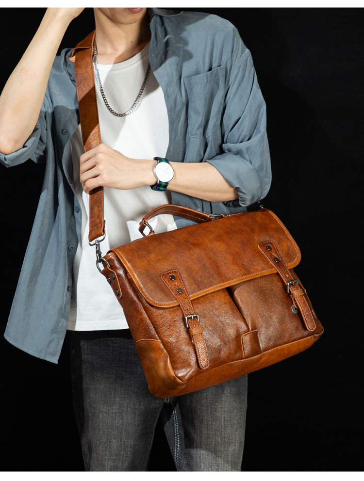 复古手提包牛皮公文包真皮单肩斜挎包男疯马皮通勤风邮差包剑桥包