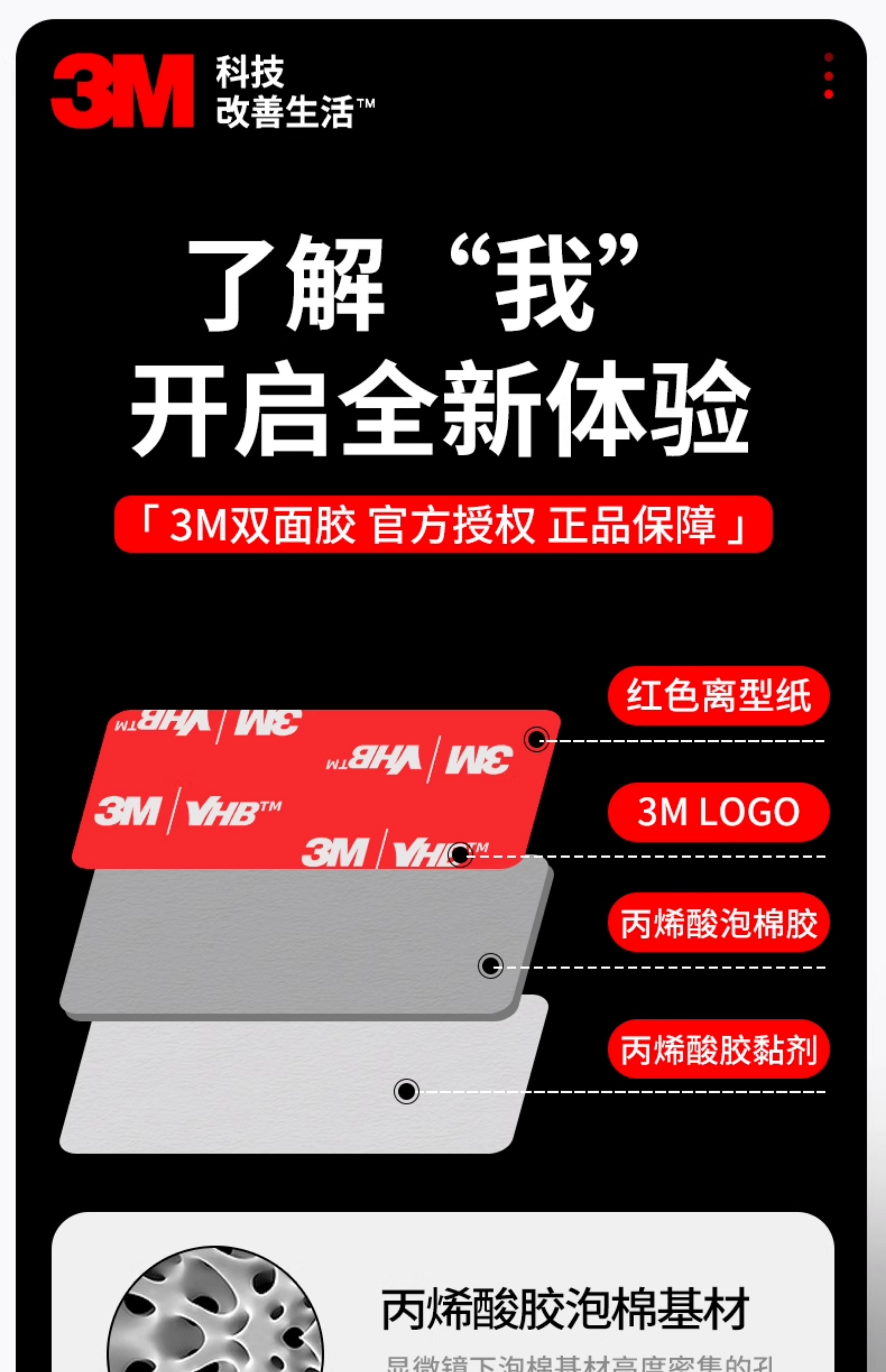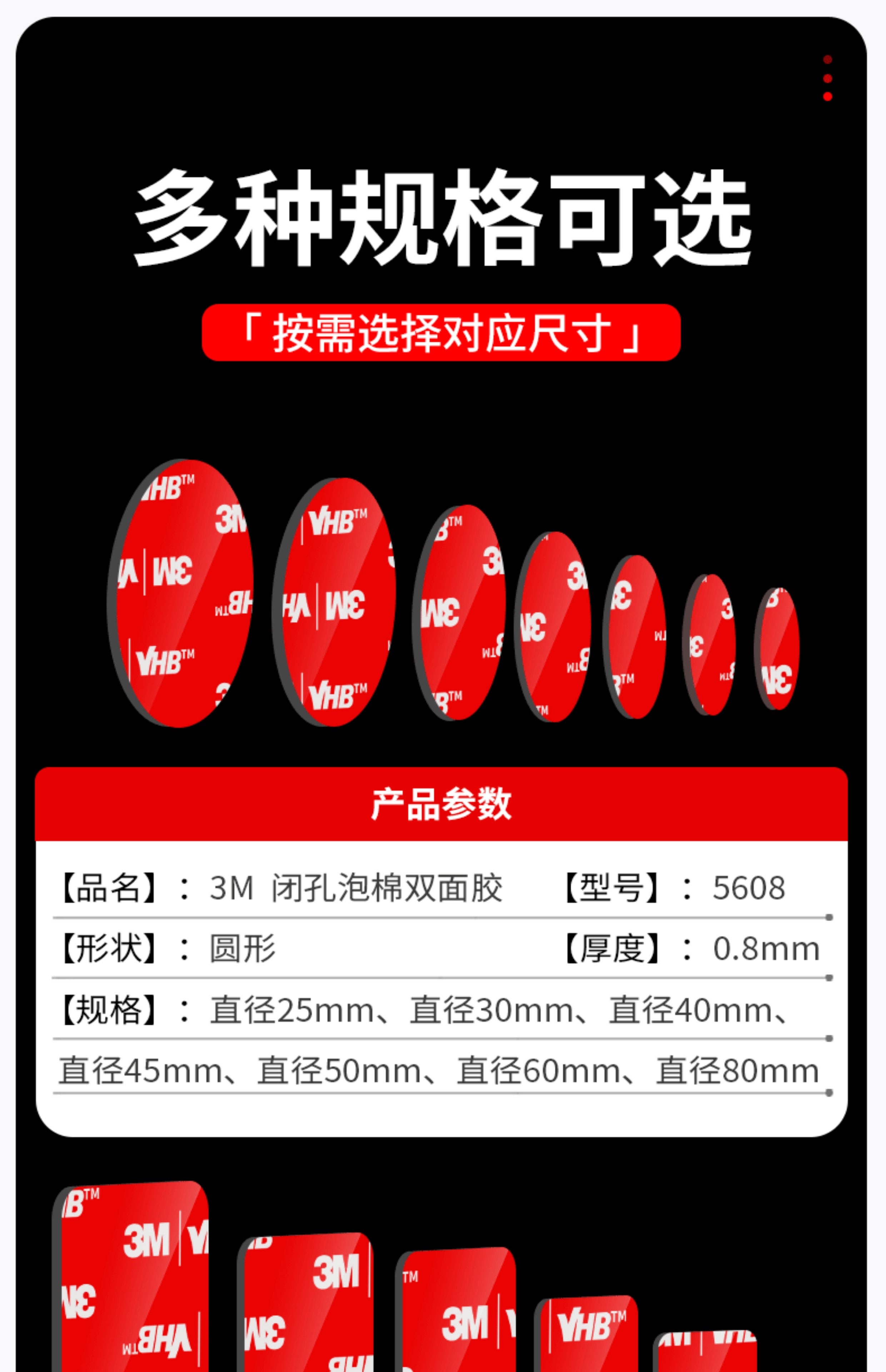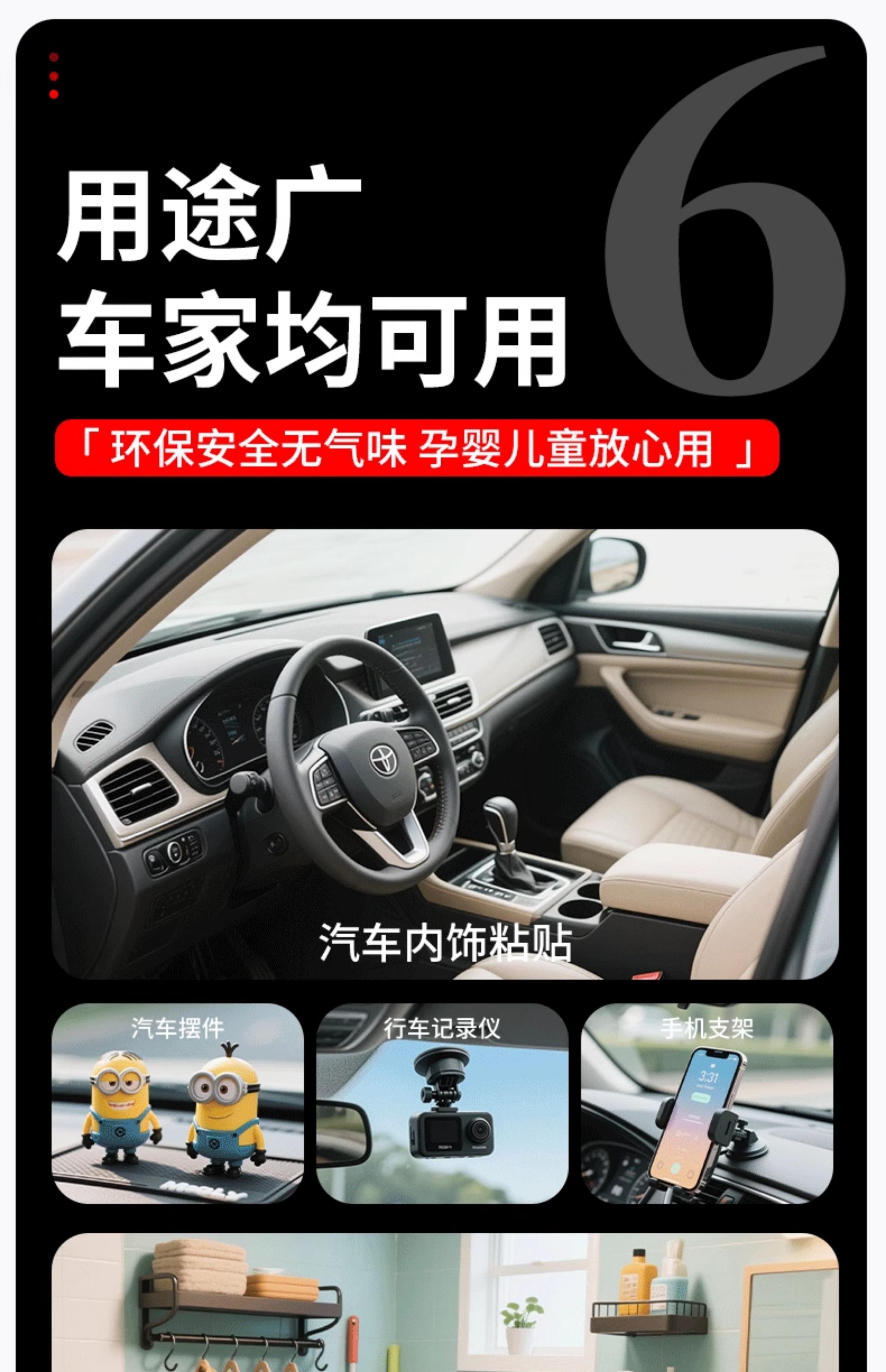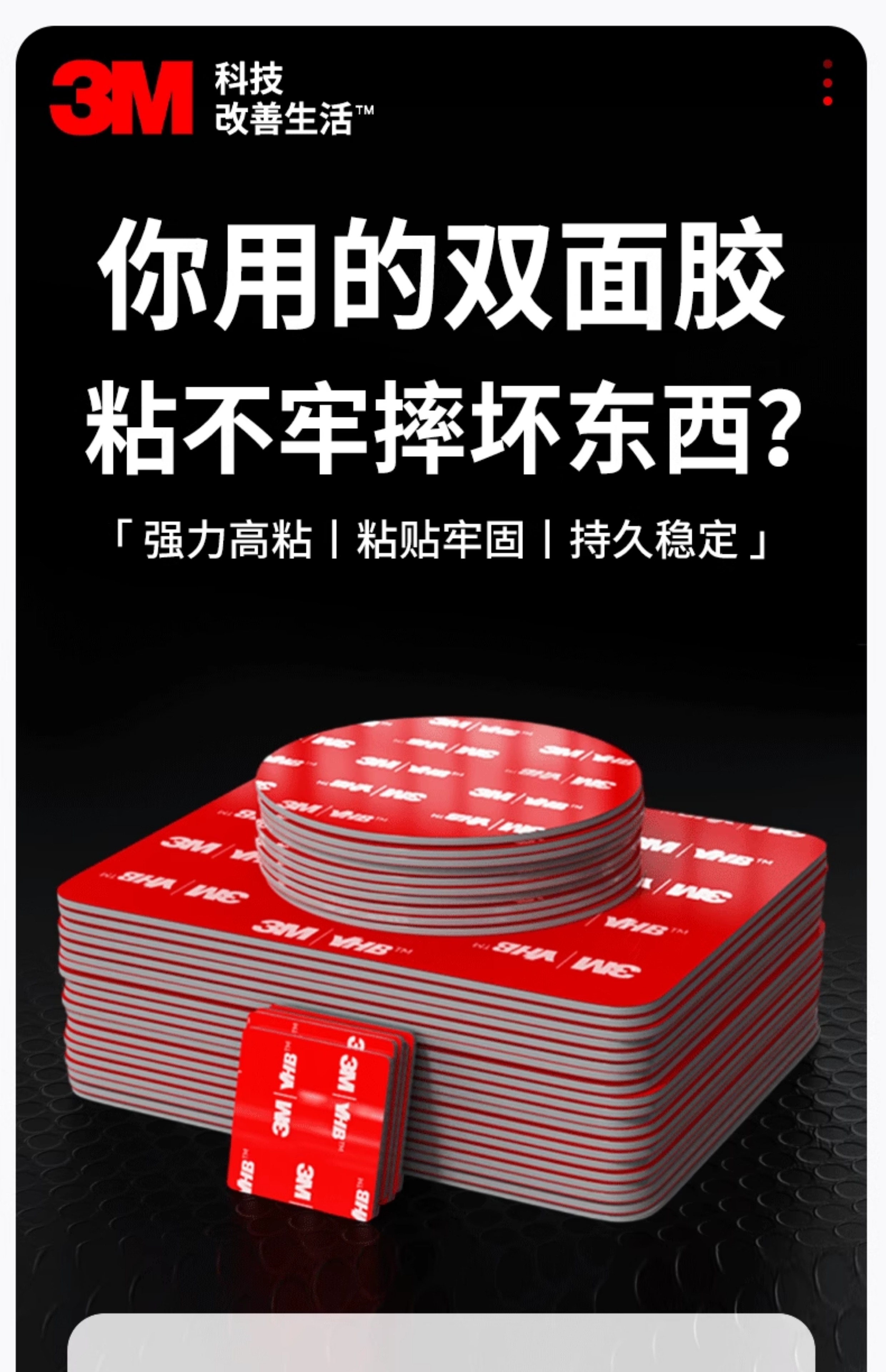 3m强力双面胶高粘度汽车用摆件粘贴片ETC行车记录仪固定贴耐高温