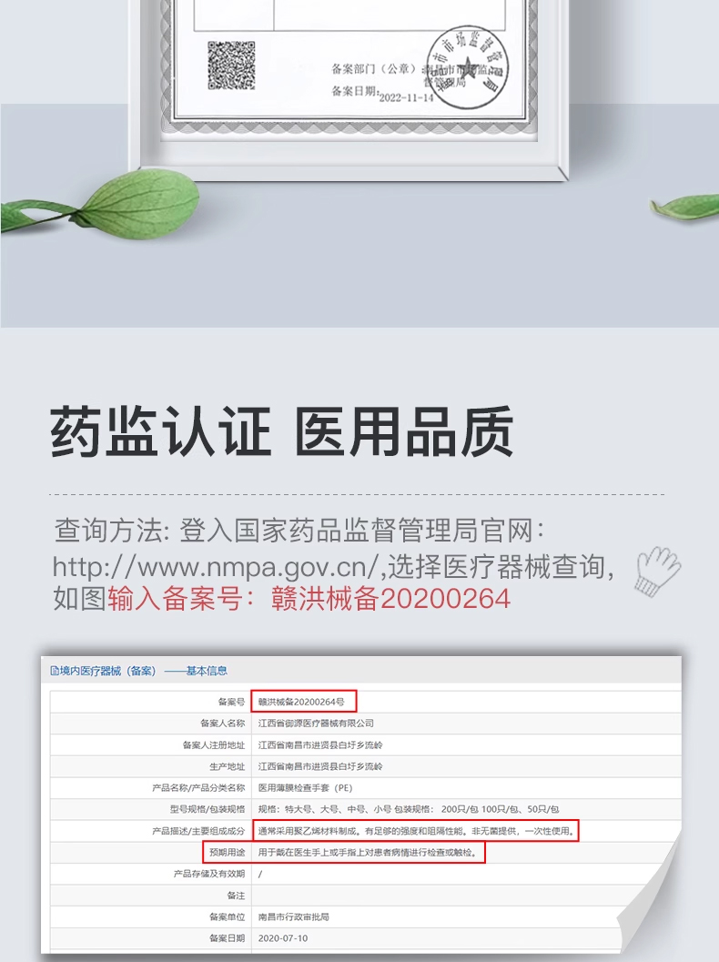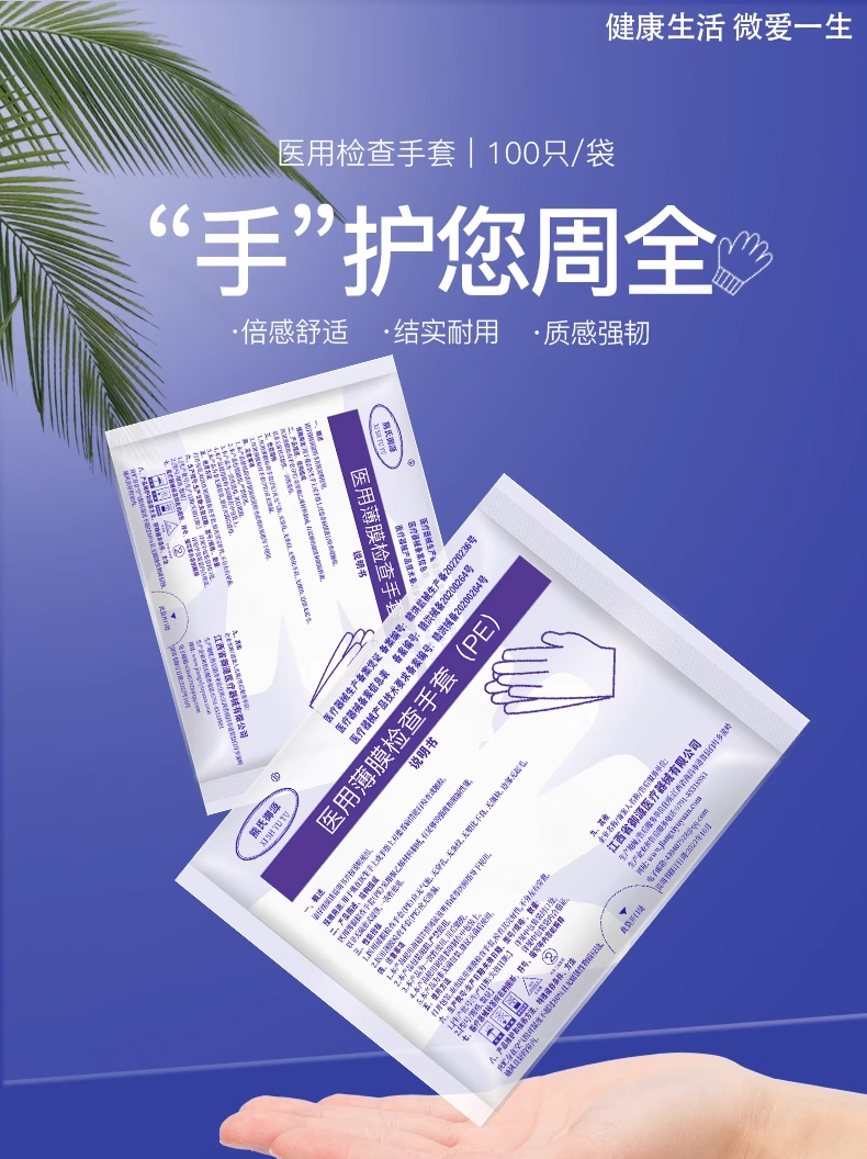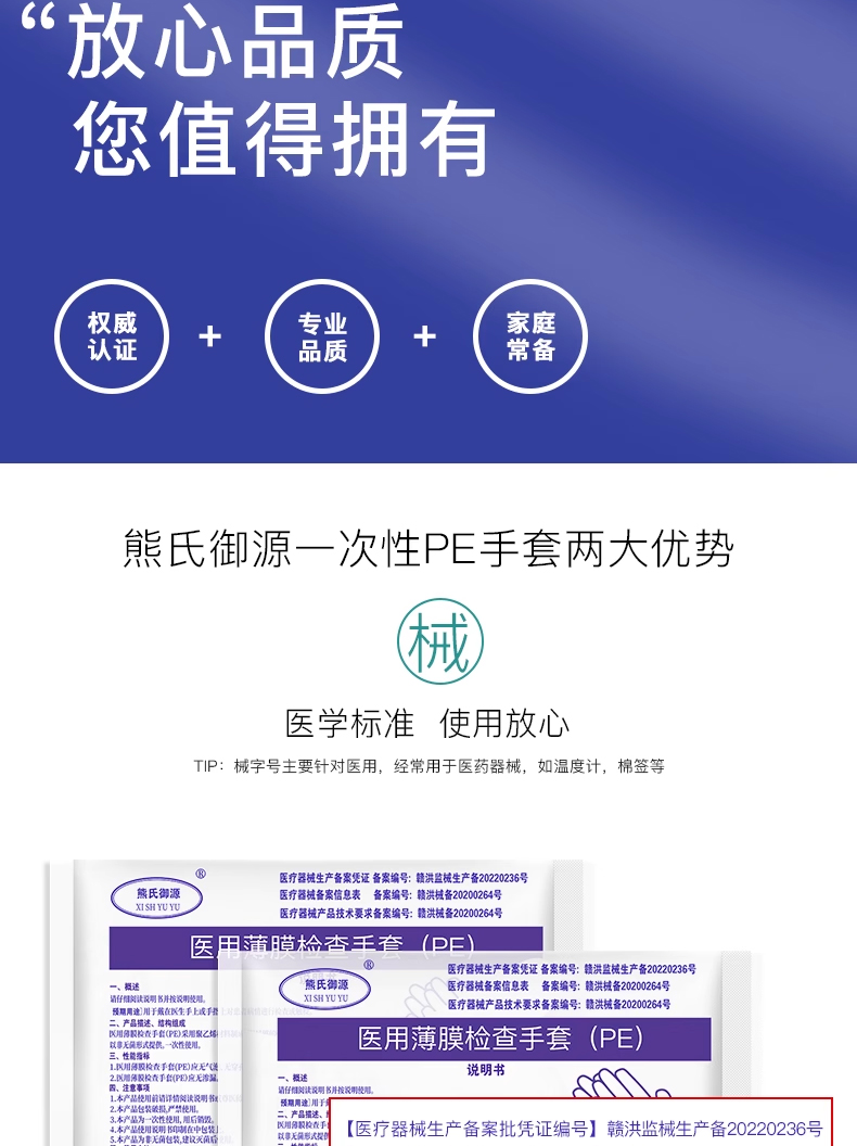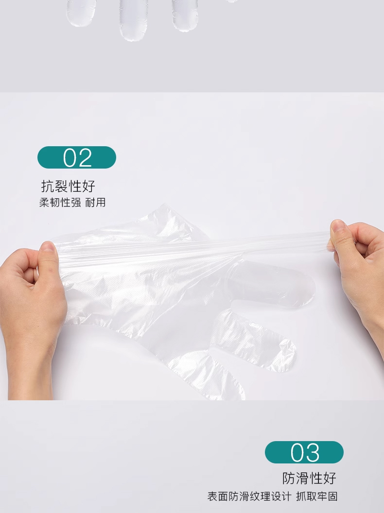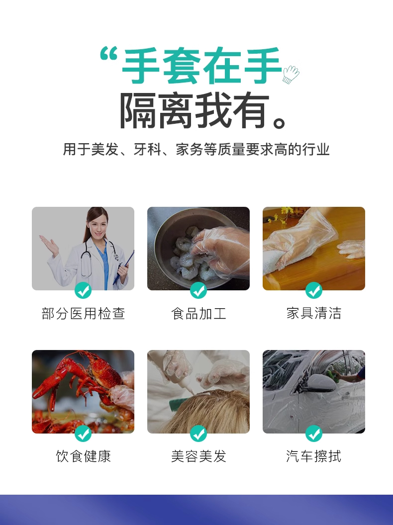 医用检查pe手套加厚透明塑料防滑美容家用一次性薄膜手套医疗
