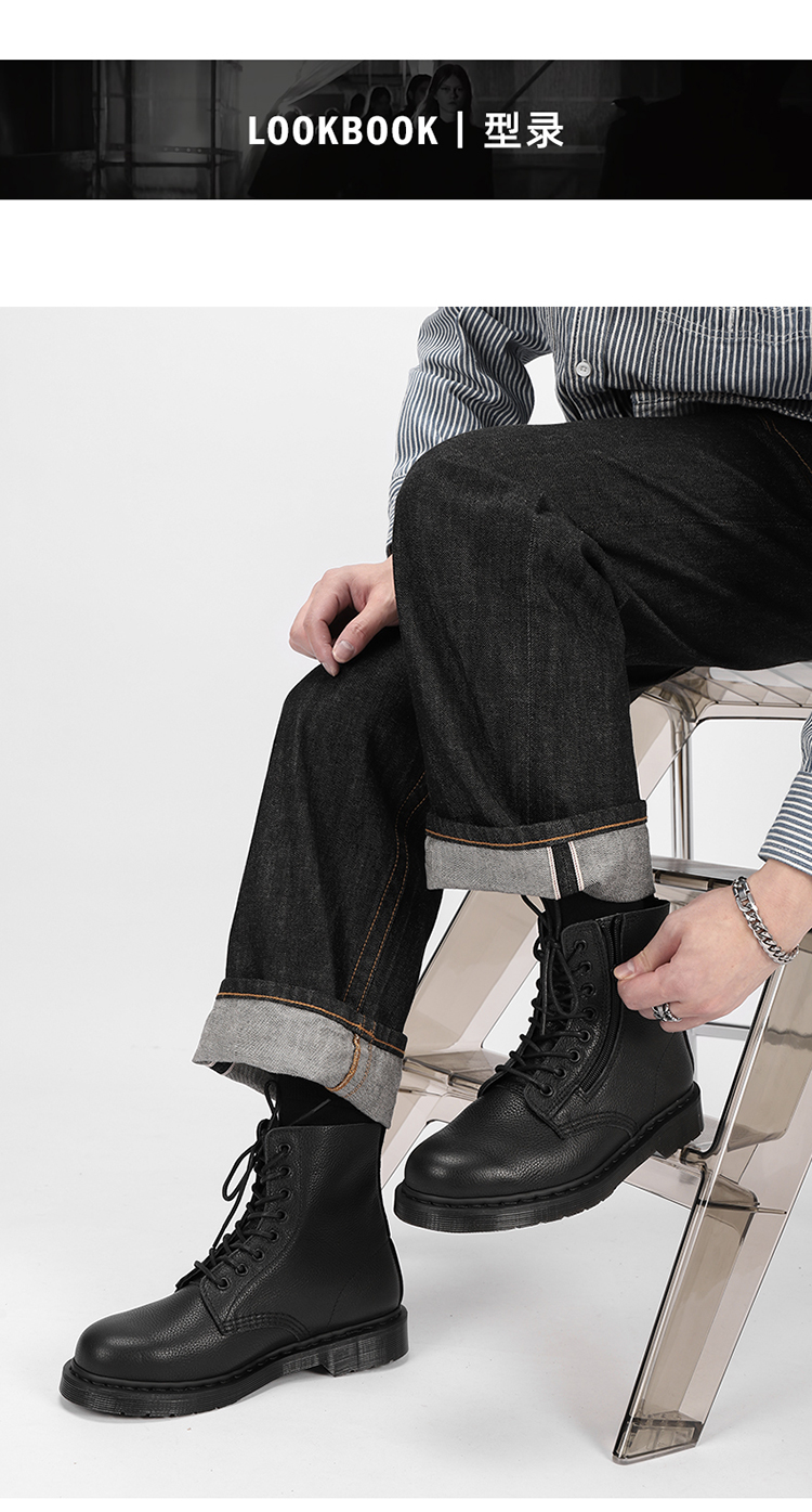 疯家定制 1460高帮马丁靴男女情侣鞋侧拉链工装短靴牛皮机车靴子