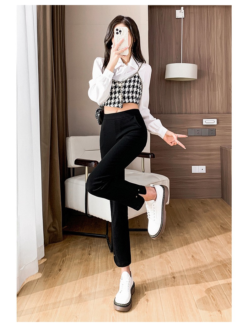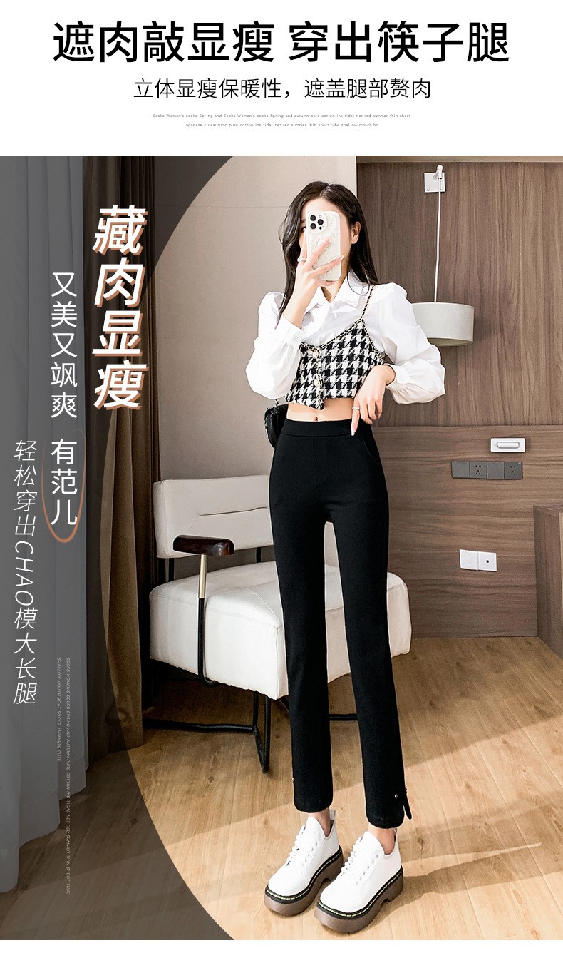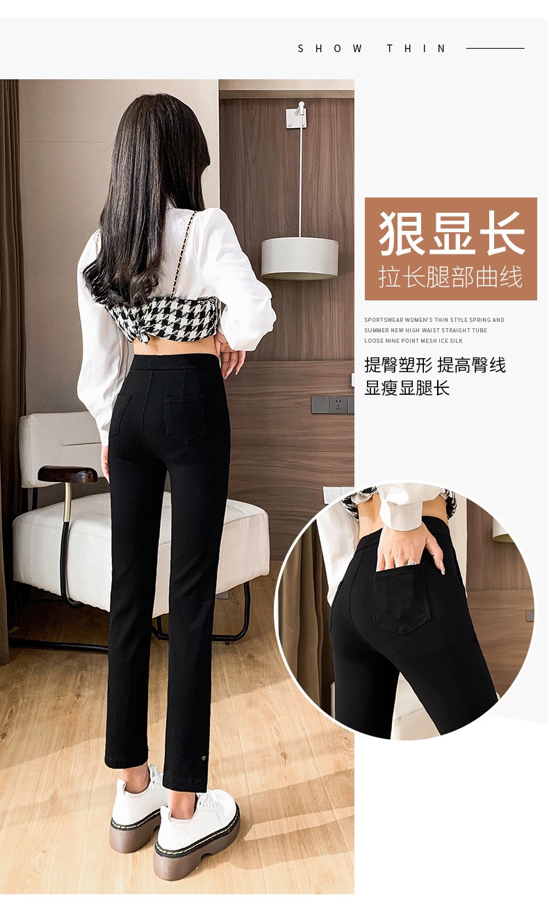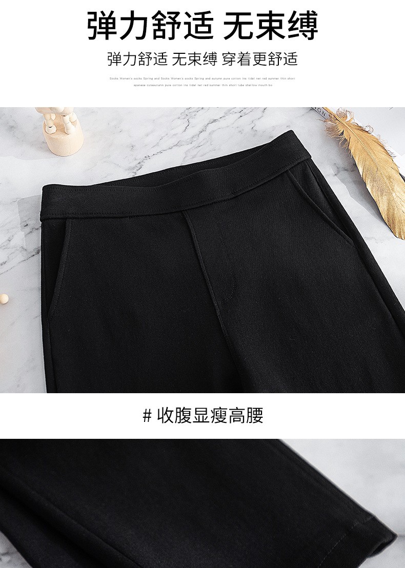 高腰直筒裤子女春秋新款大码显瘦高弹力黑色小个子九分开衩烟管裤