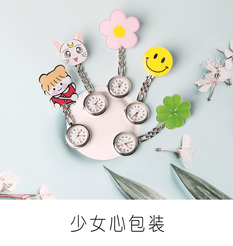 卡通护士表女款学生考试胸表怀表男夹子夜光简约可爱少女防水挂表