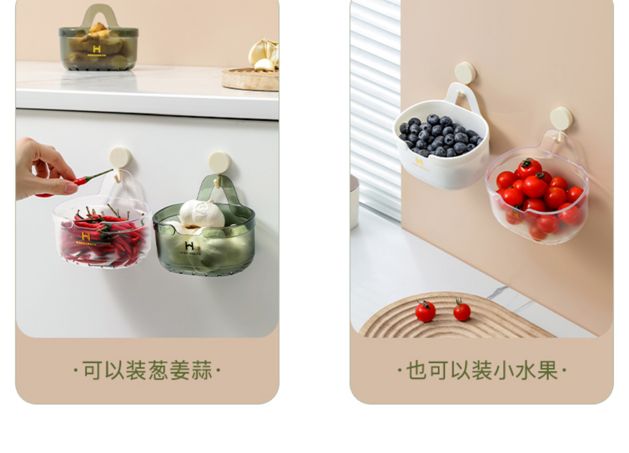 厨房葱姜蒜收纳筐免打孔浴室洗浴用品沥水置物架厨房调料储物挂篮