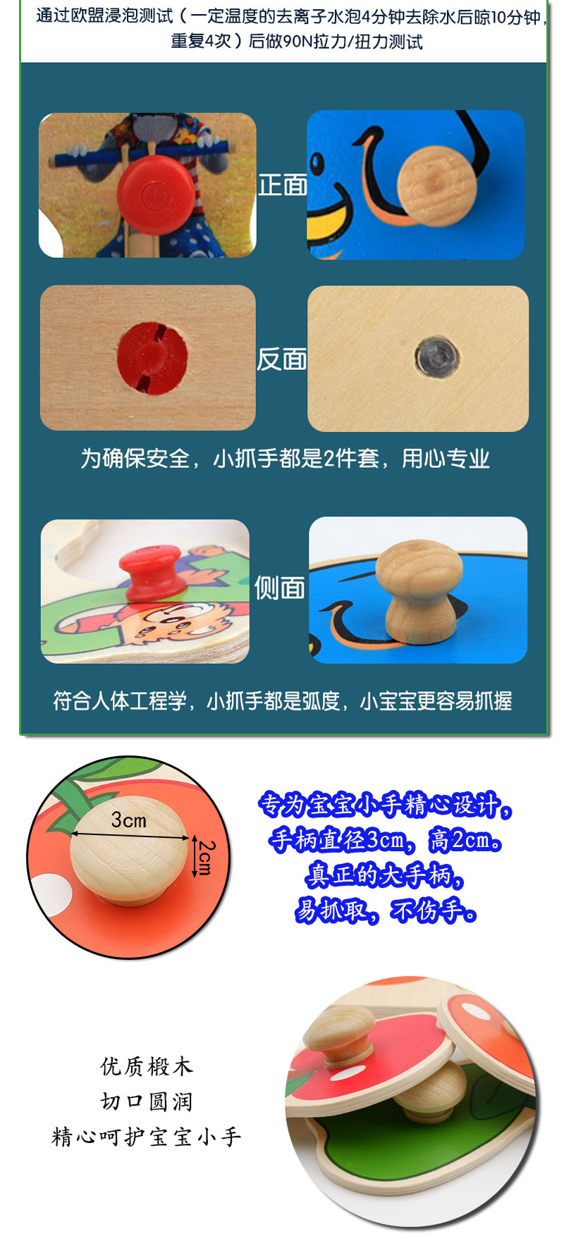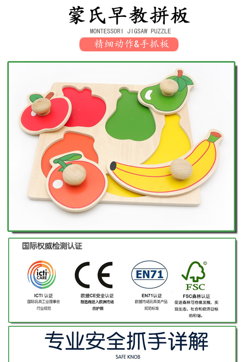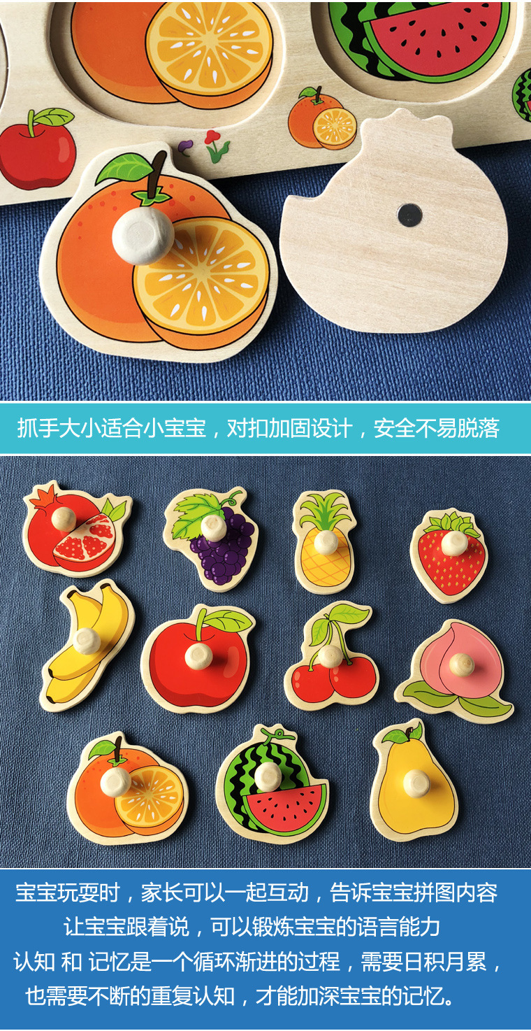 儿童手抓板玩具宝宝形状颜色认知教具1岁2岁益智木质早教拼图拼板