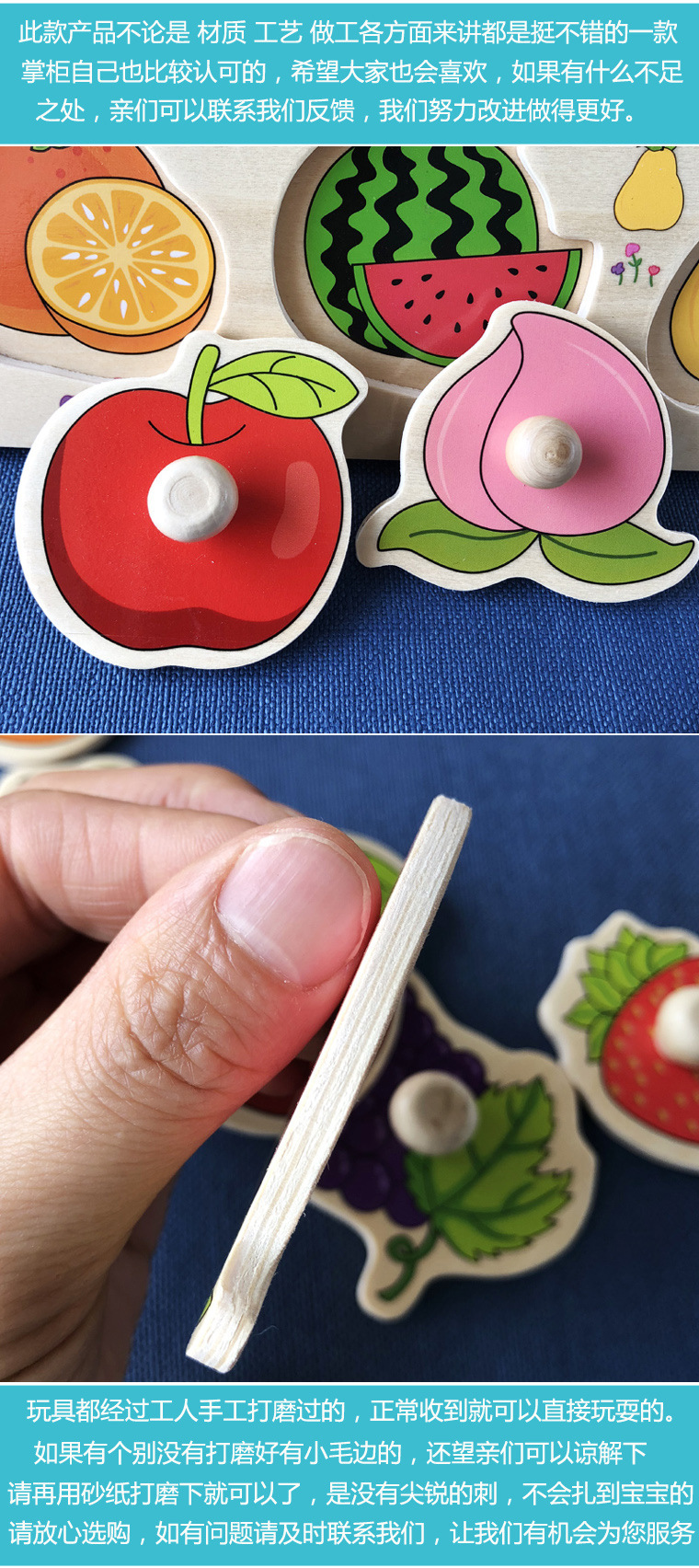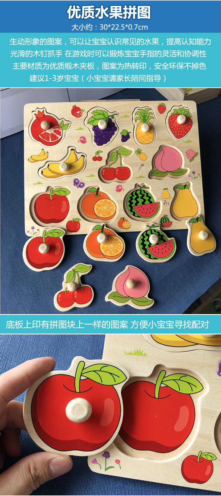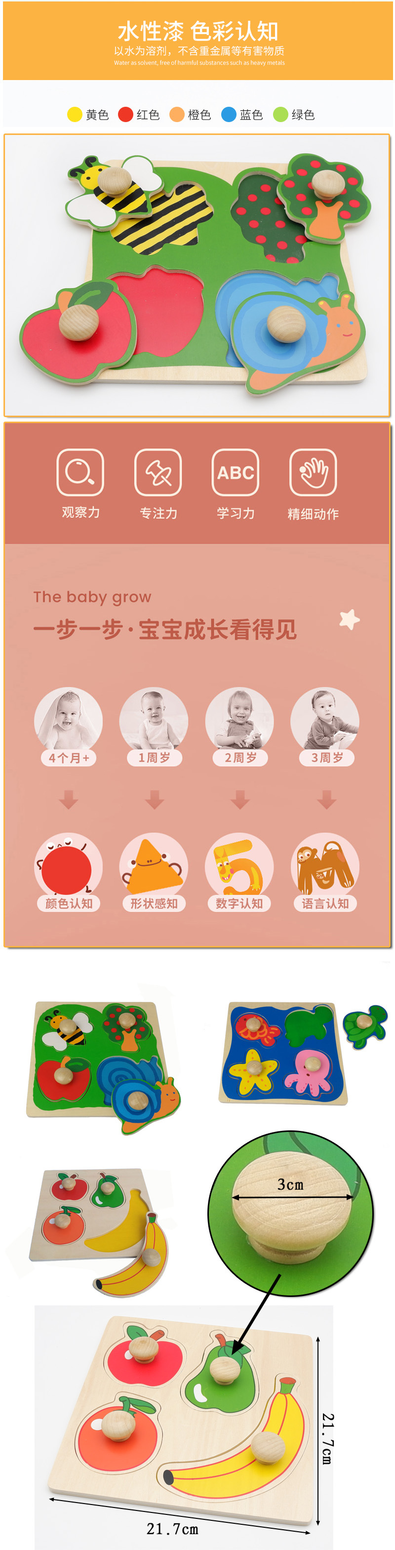 儿童手抓板玩具宝宝形状颜色认知教具1岁2岁益智木质早教拼图拼板